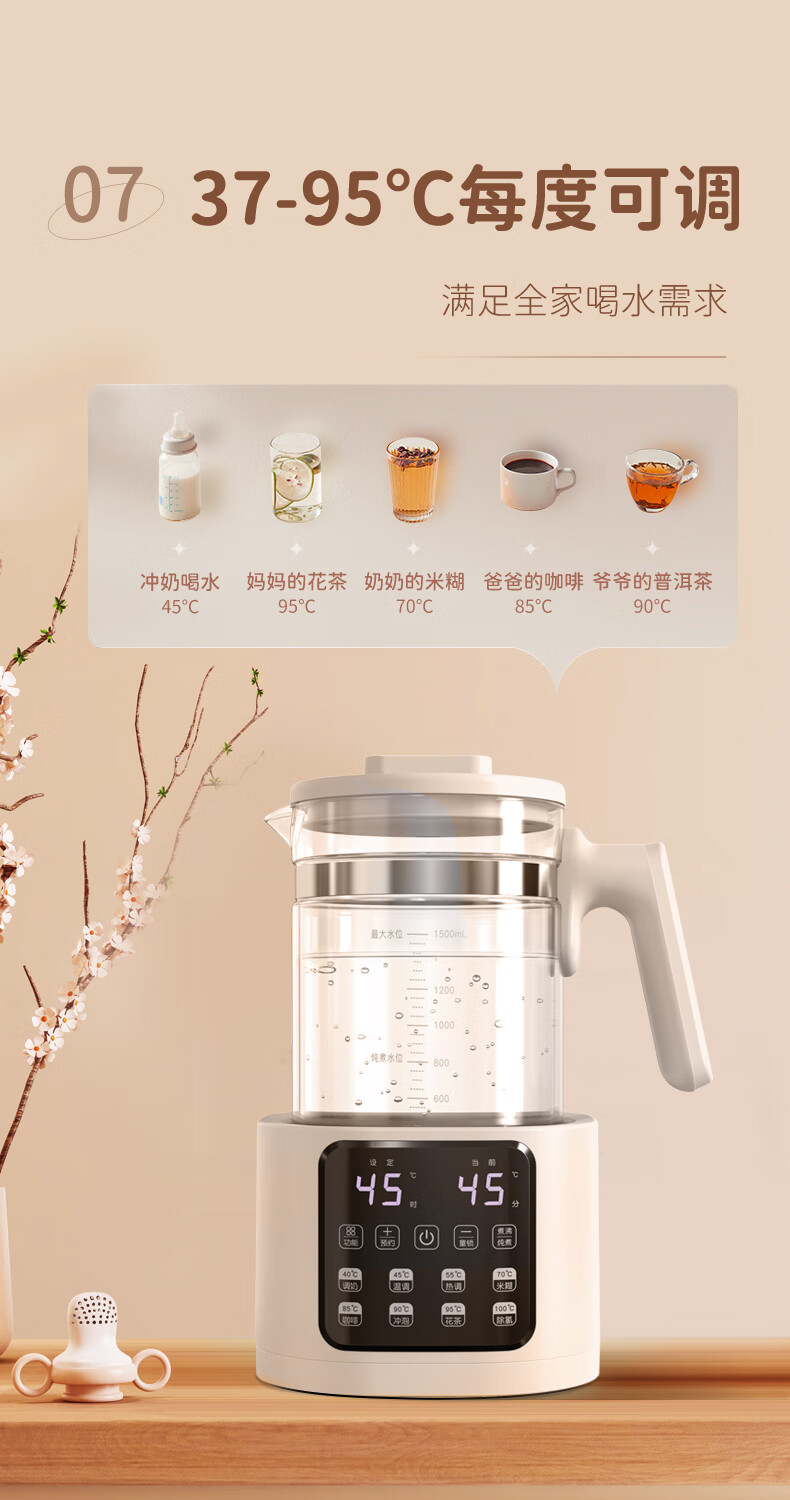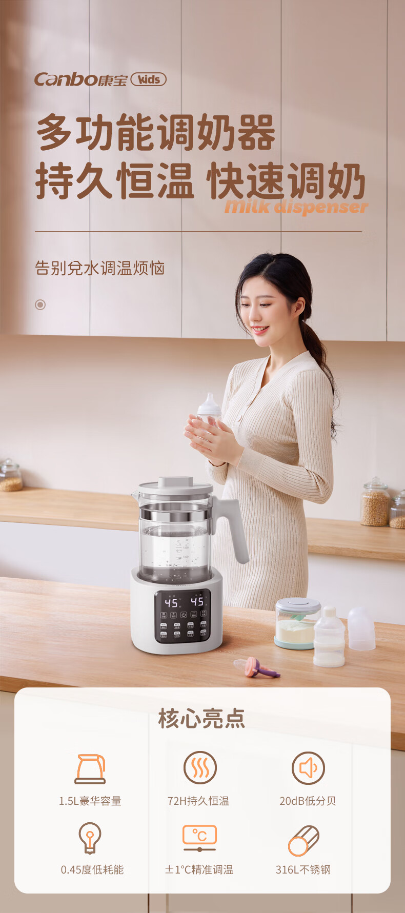康宝恒温壶婴儿 恒温调奶器电热水壶热奶暖奶消毒多功能 1.5升