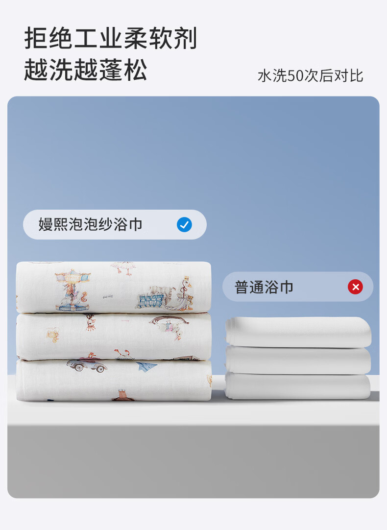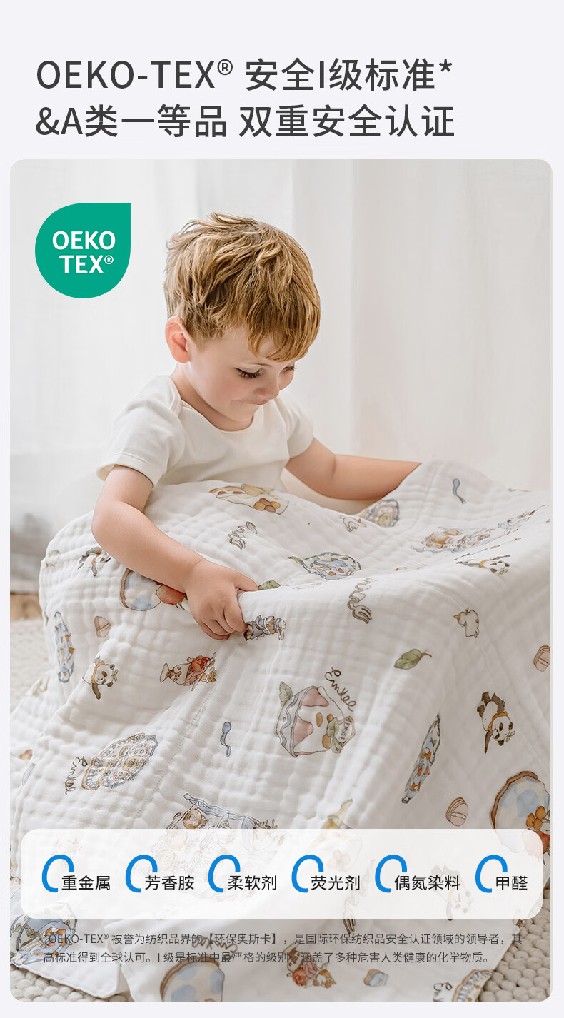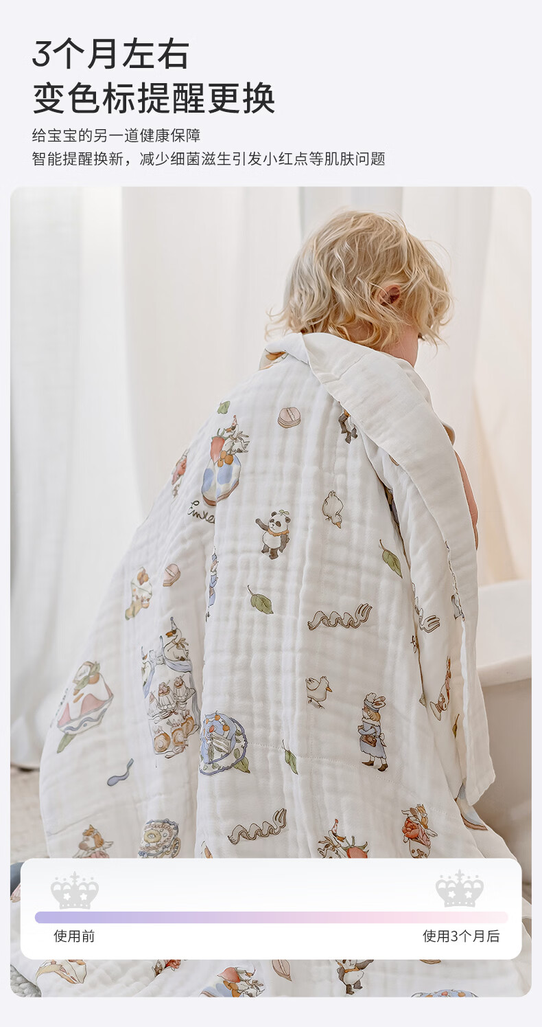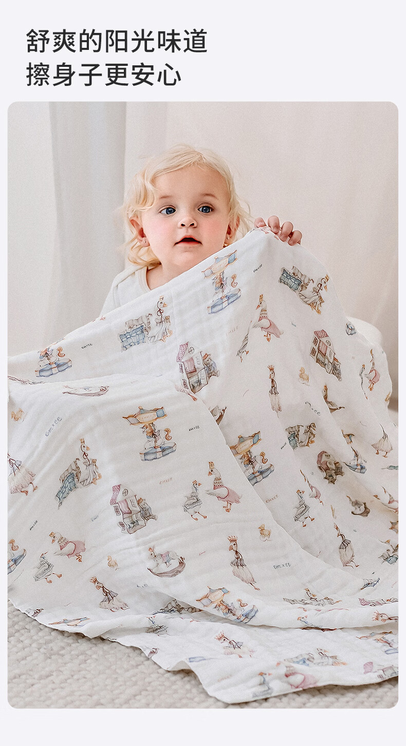 嫚熙(EMXEE)婴儿纱布浴巾纯棉宝宝洗澡巾新生儿童浴巾 甜蜜时光95cm