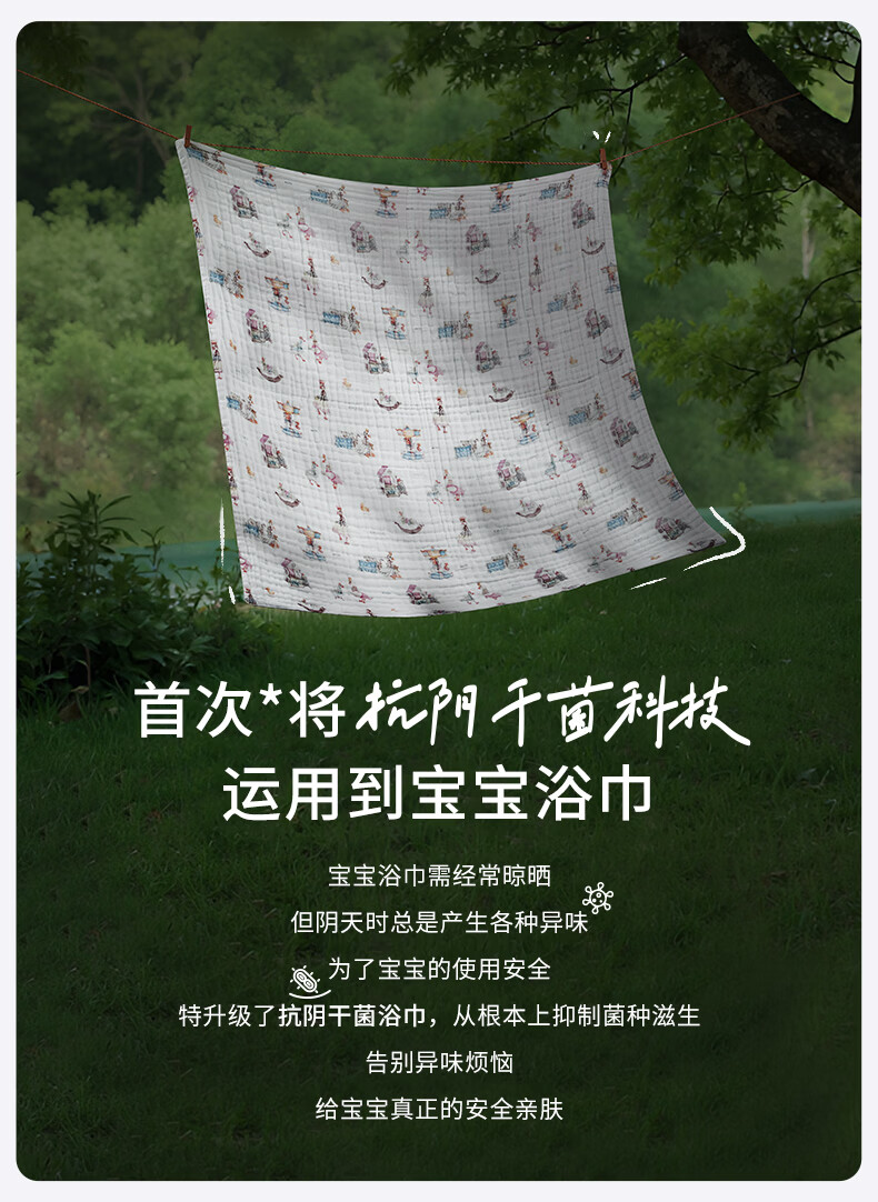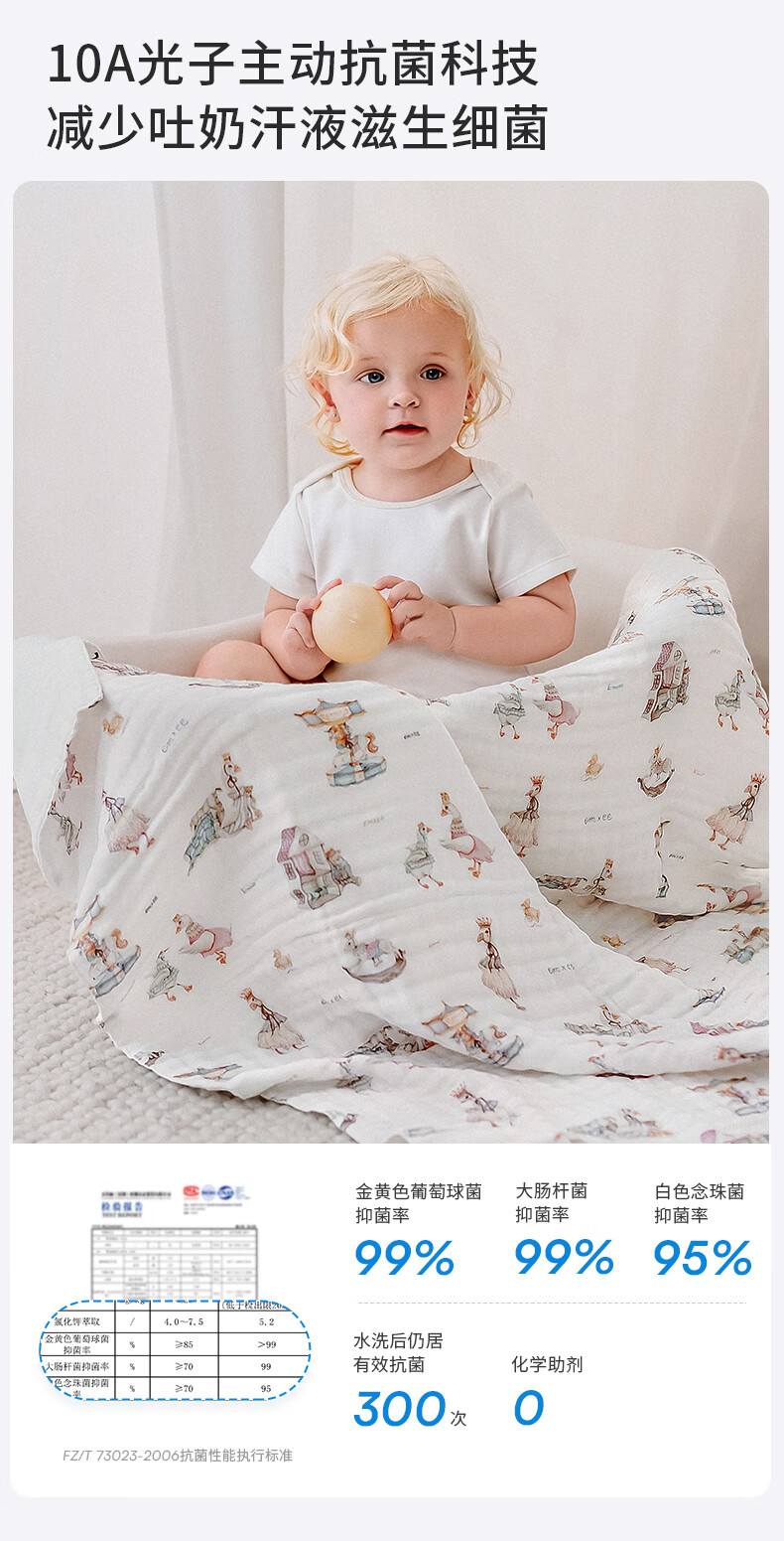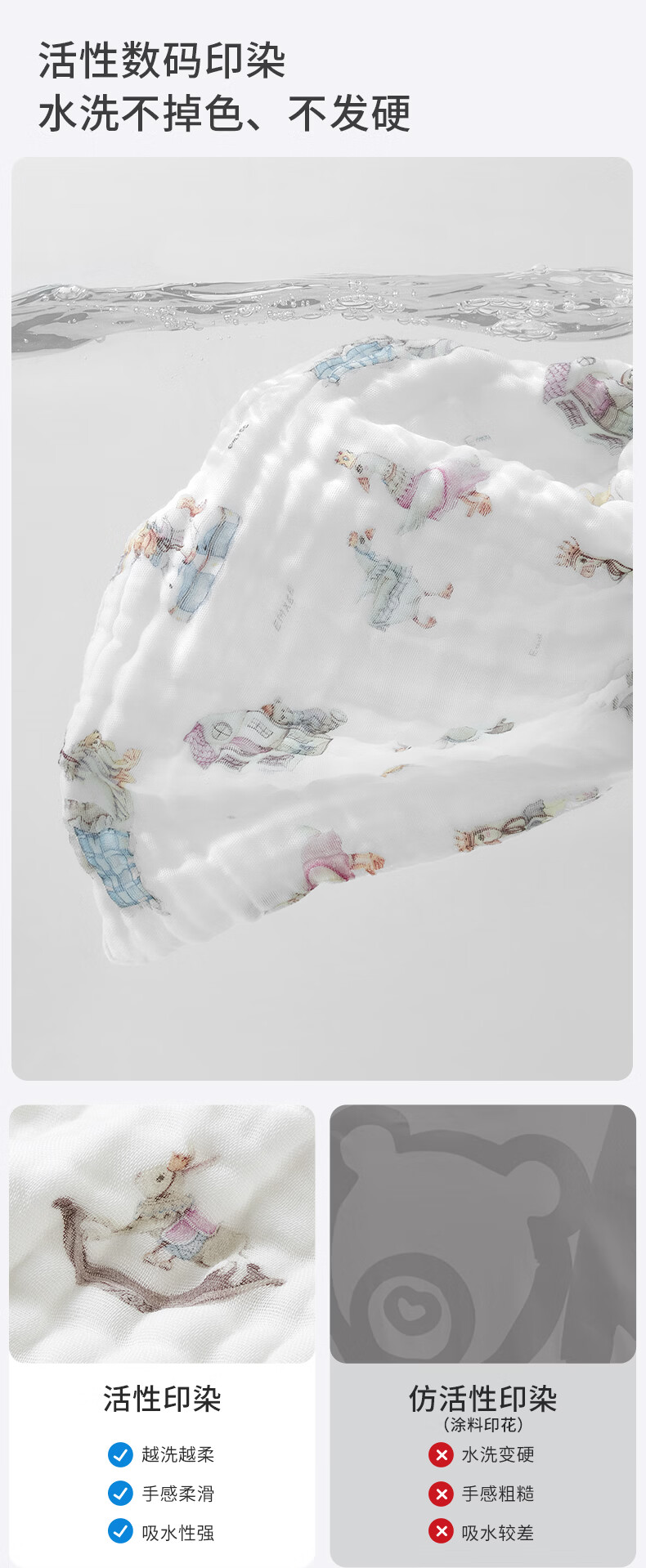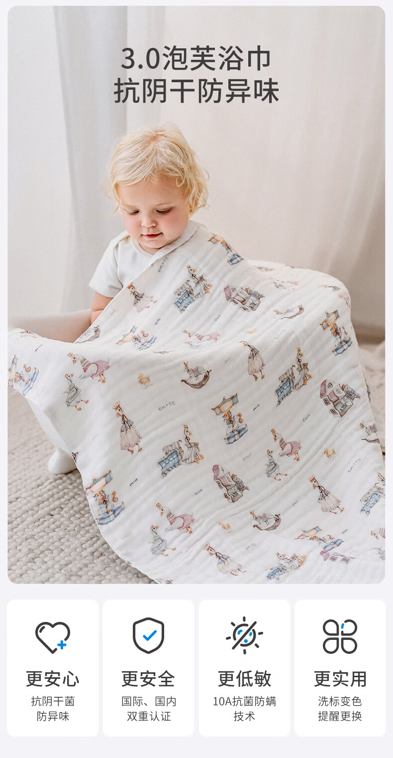 嫚熙(EMXEE)婴儿纱布浴巾纯棉宝宝洗澡巾新生儿童浴巾 甜蜜时光95cm