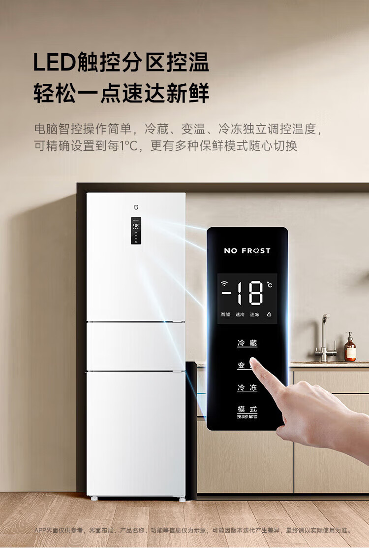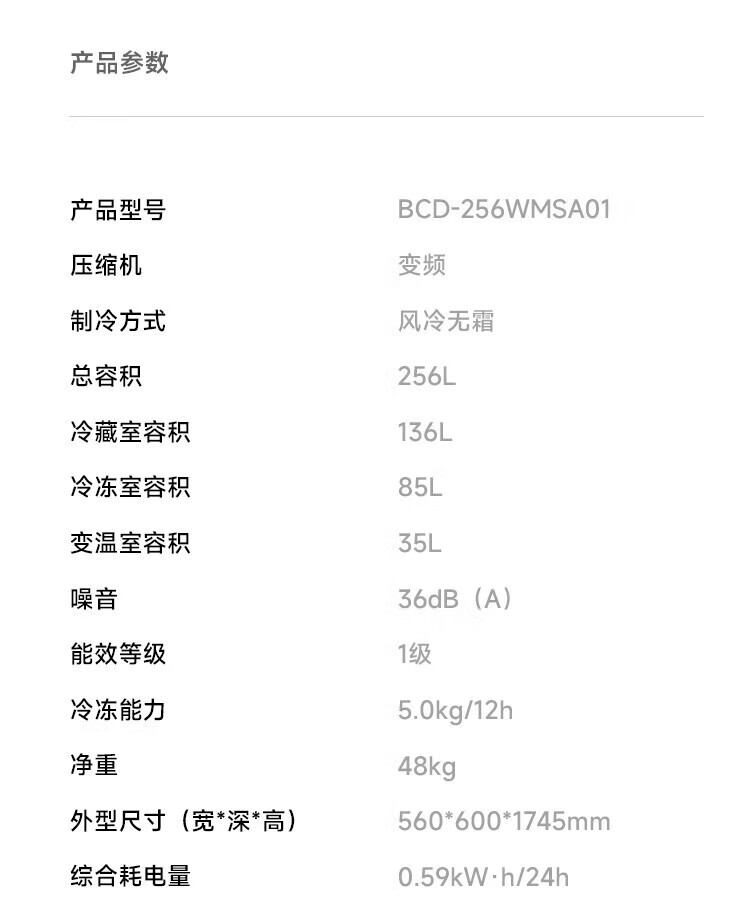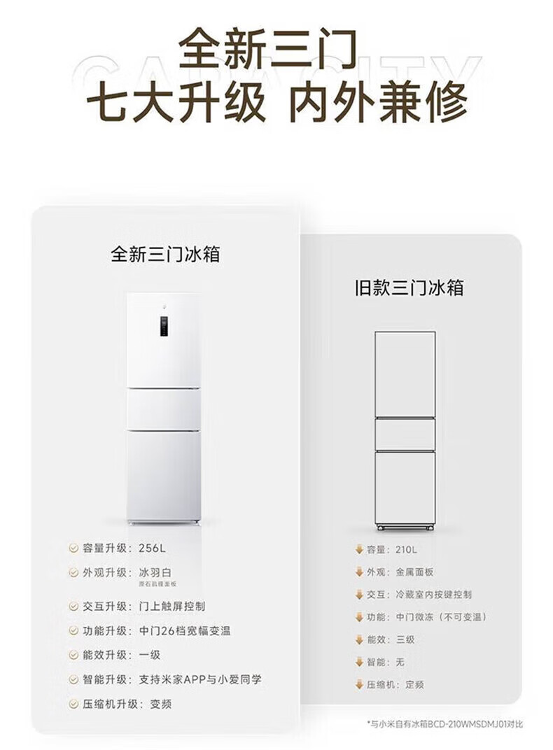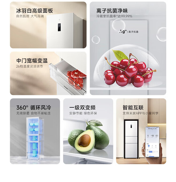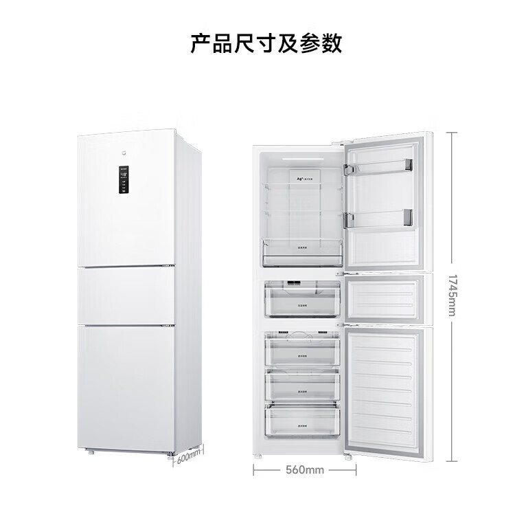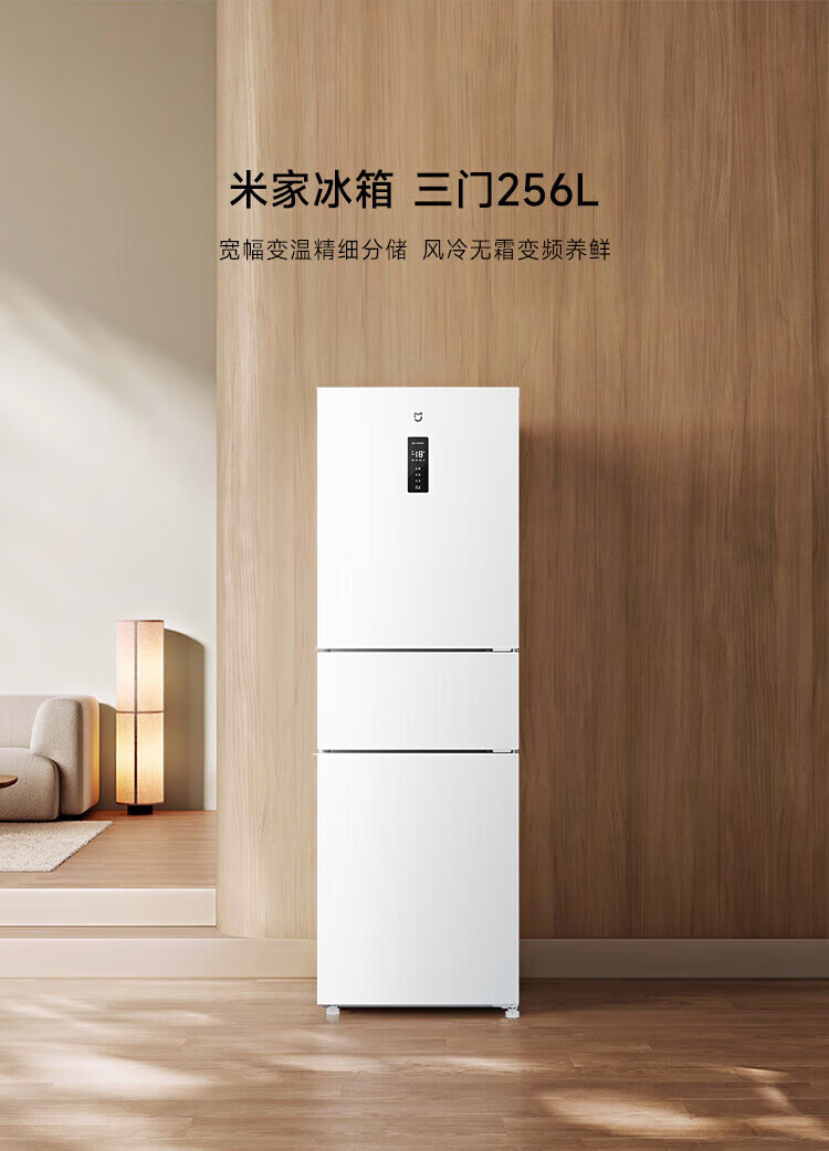 米家小米(MI)冰箱256升三门小型家用冰箱风冷无霜银离子除菌净味一级能效 米家256L变频冰箱