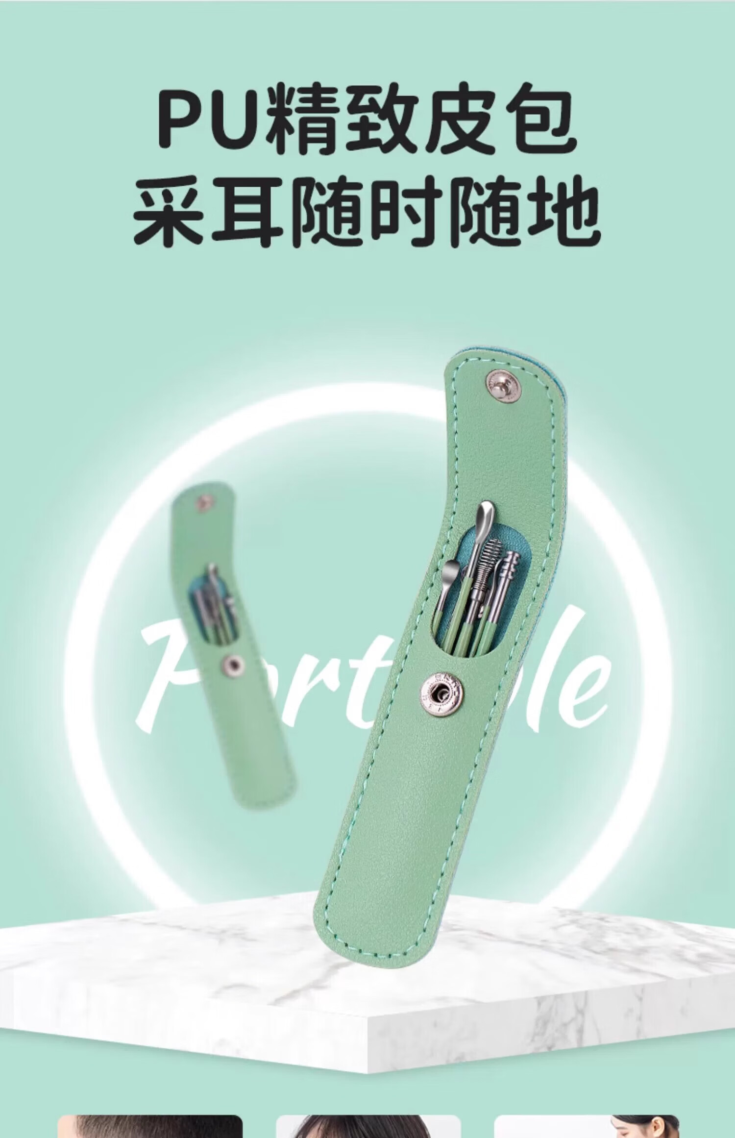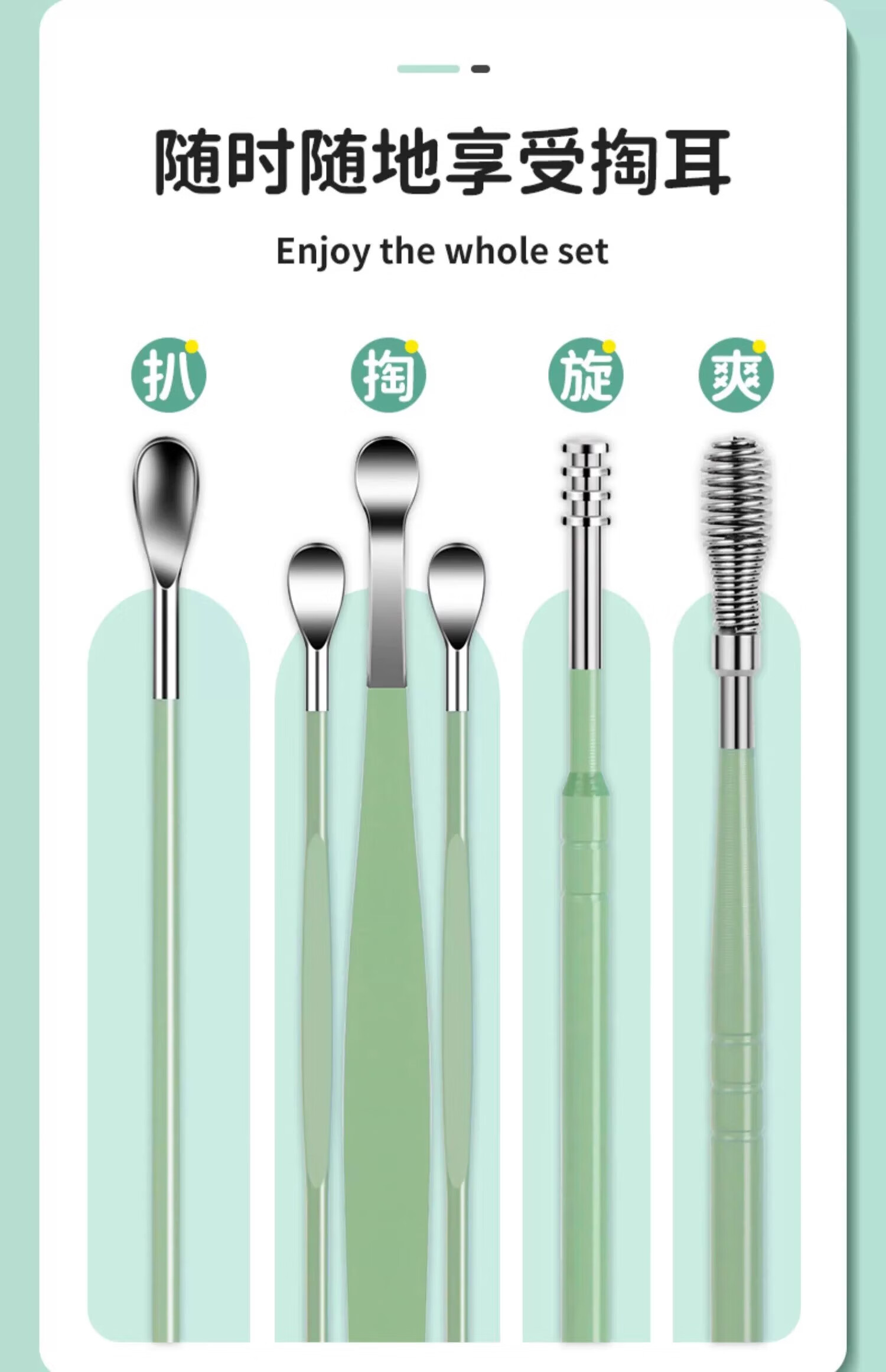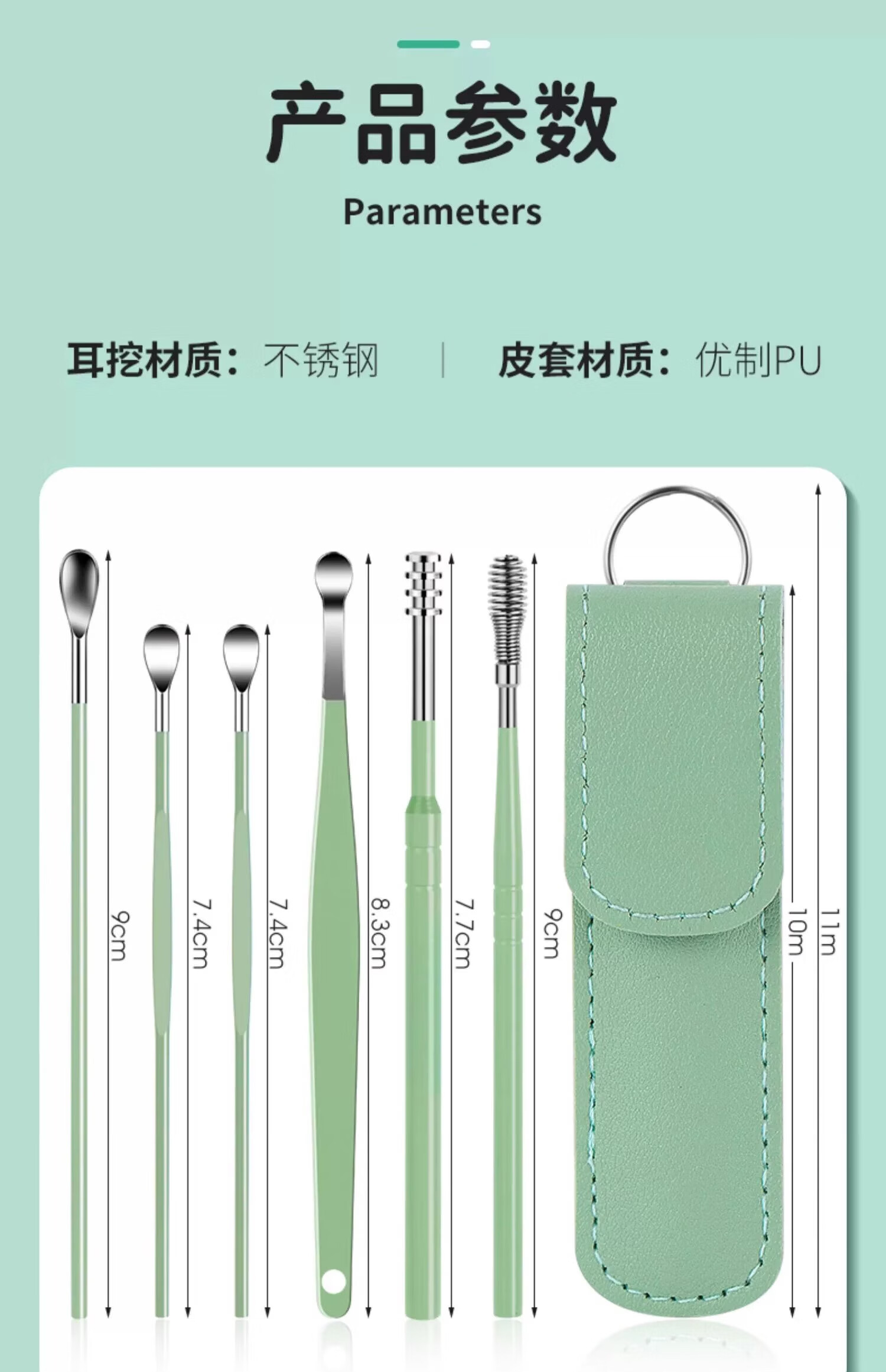 掏耳朵神器挖耳勺工具套装便携挖耳朵螺旋耳扒勺扣不锈钢6件套 便携耳勺6件套