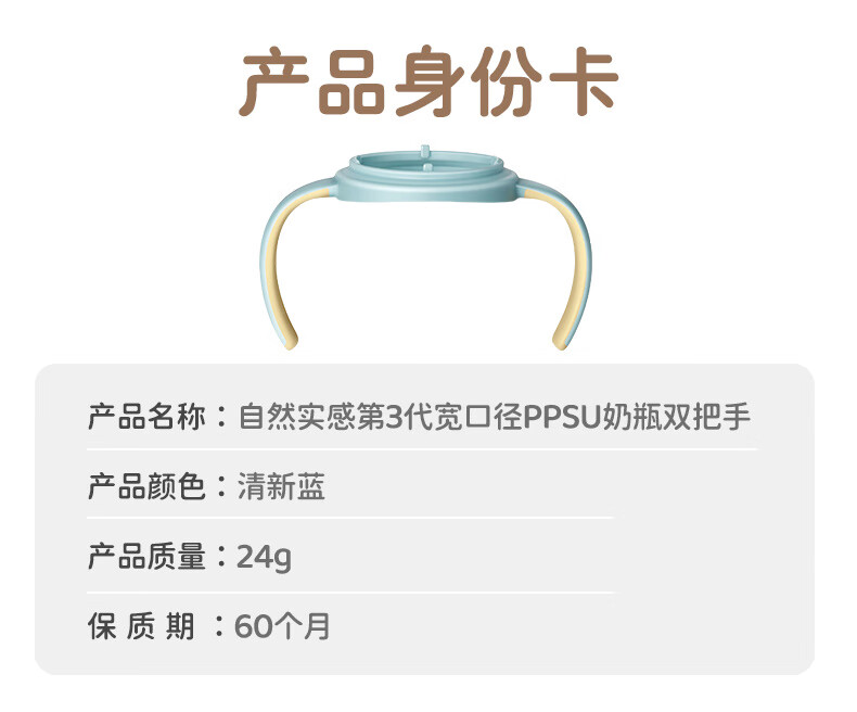 贝亲(Pigeon)自然实感第三代宽口径奶瓶双把手(清新蓝) 原装配件BA150