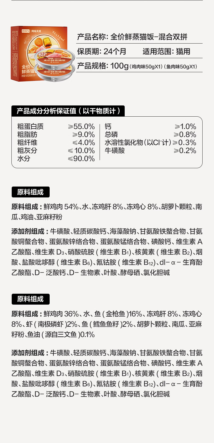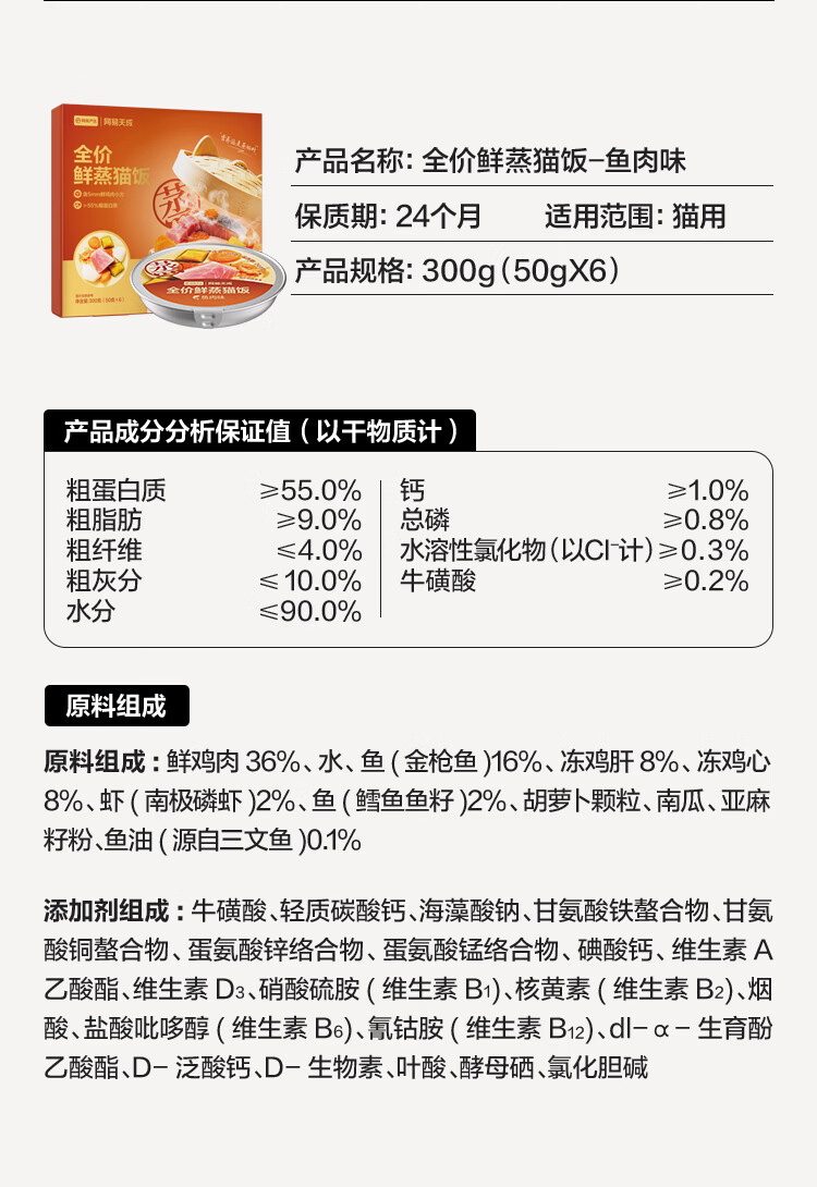 网易严选鲜蒸猫饭猫湿粮罐头主食级餐盒成猫幼猫通用鸡肉口味50g*6罐