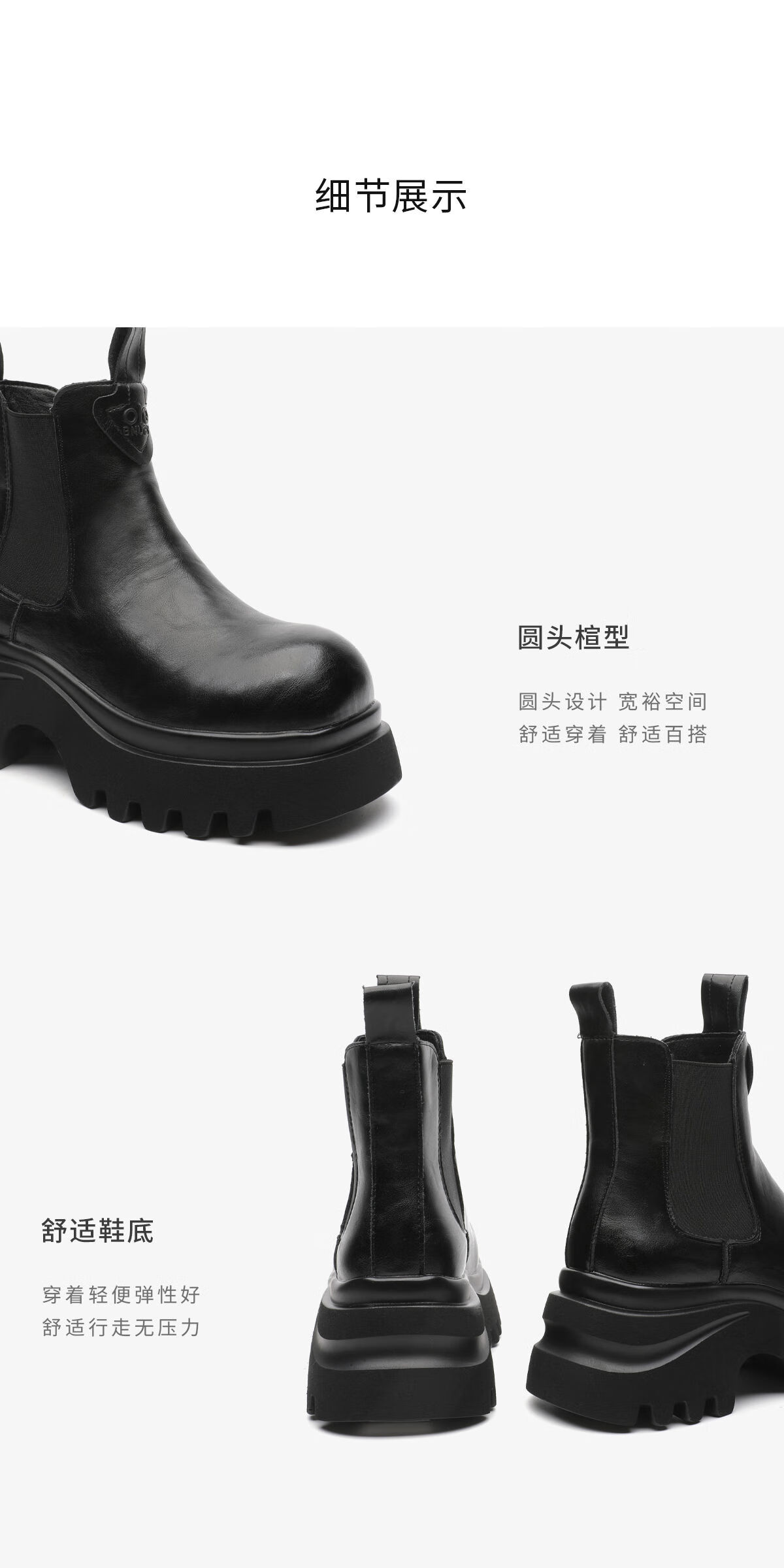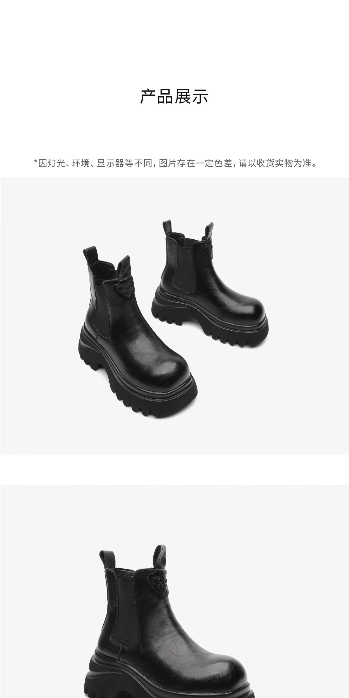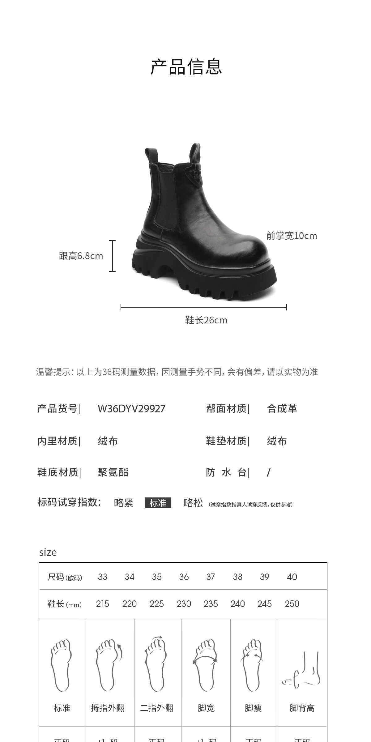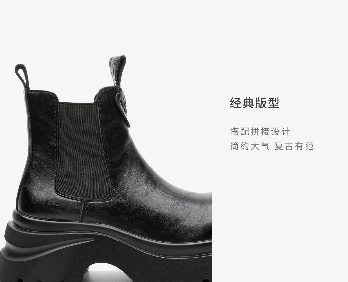 月芽儿切尔西靴女2025年秋季季新款短筒烟筒靴时尚百搭增高瘦瘦靴 绒里黑色01T 34