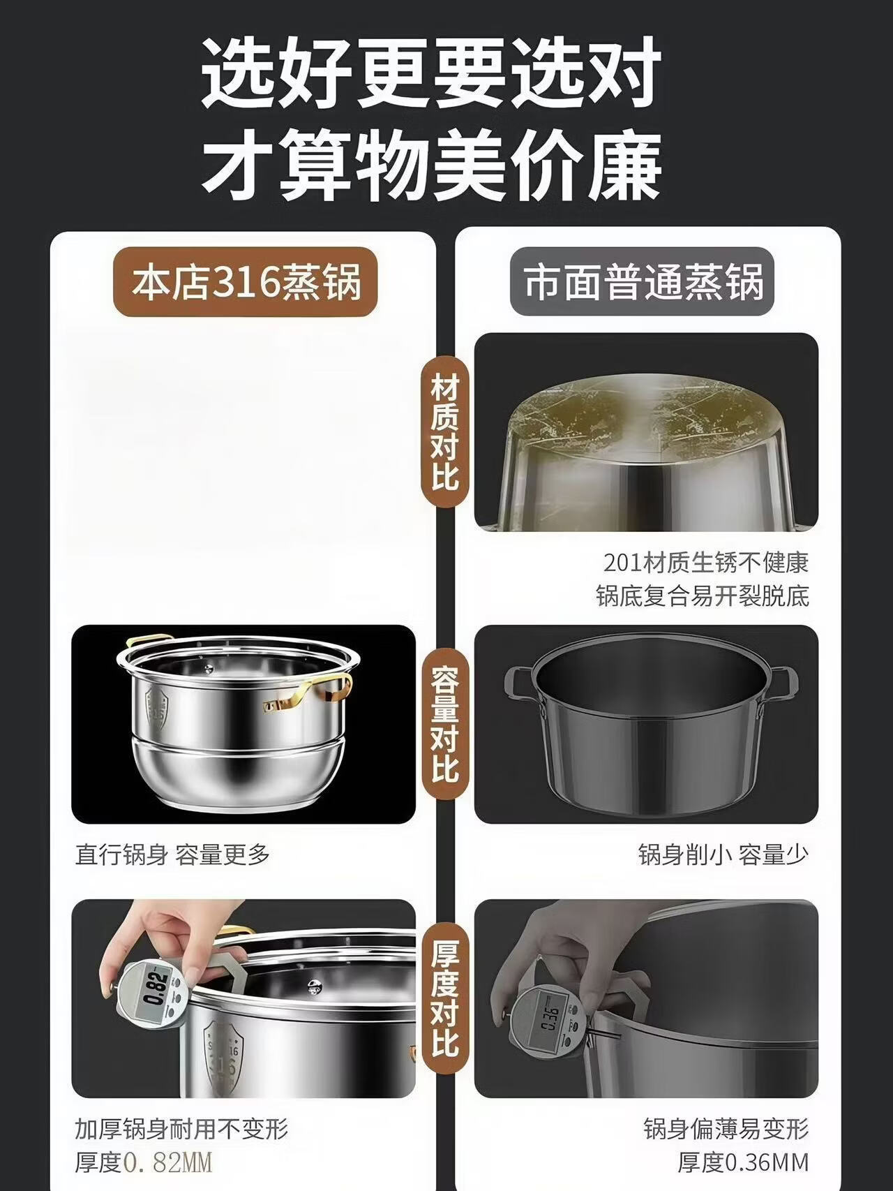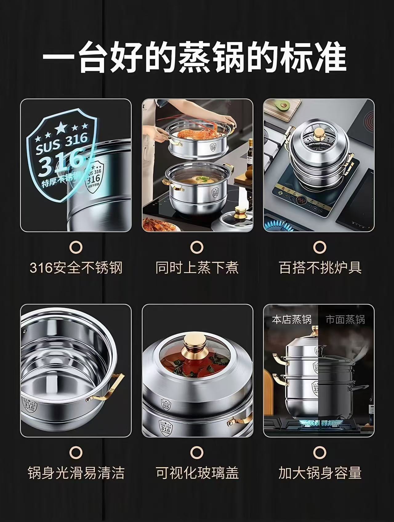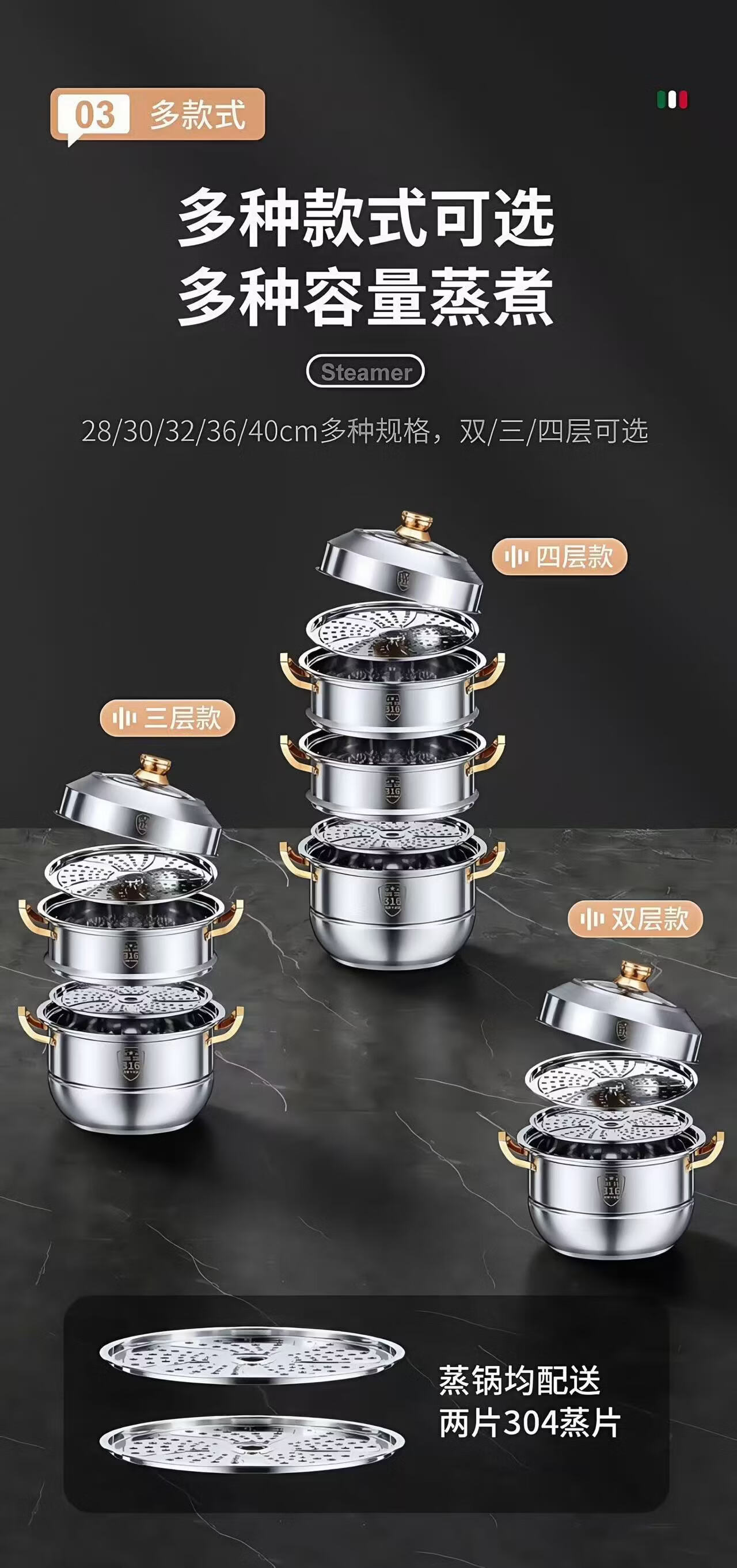 蒸锅316不锈钢家用三层大容量加厚食品级汤锅蒸馒头电磁燃气通用 德国品质【旗舰款】四层 40cm