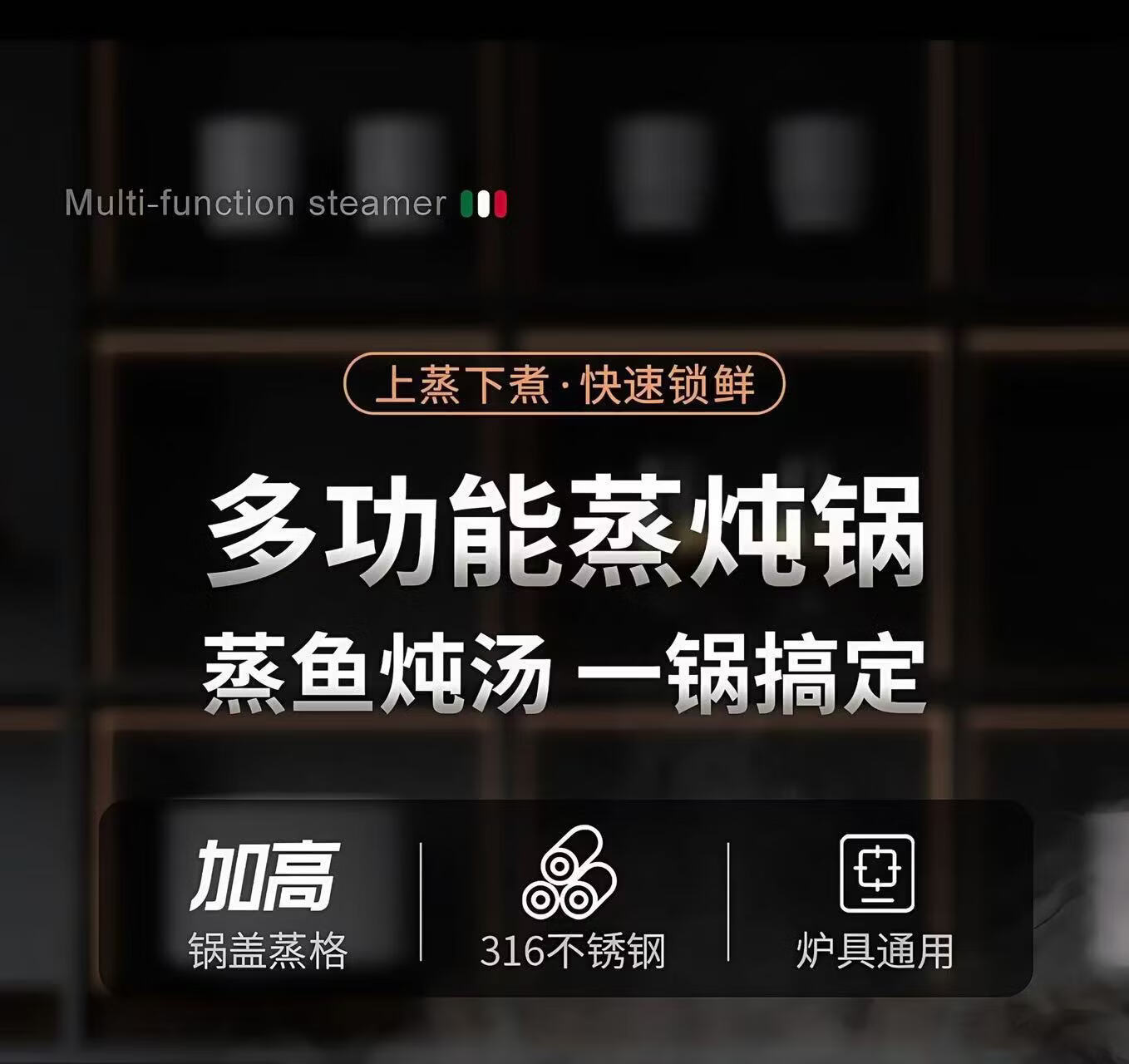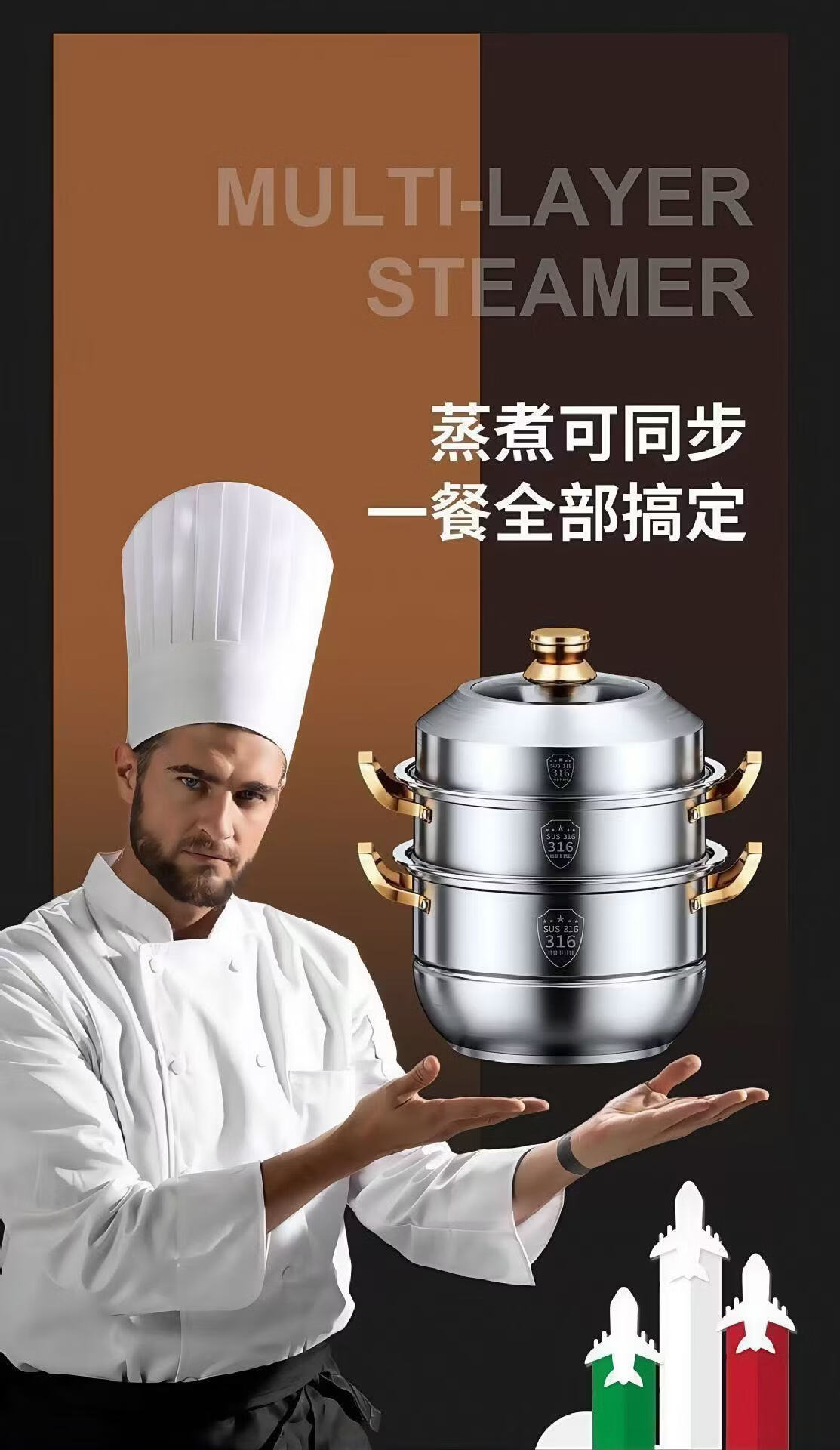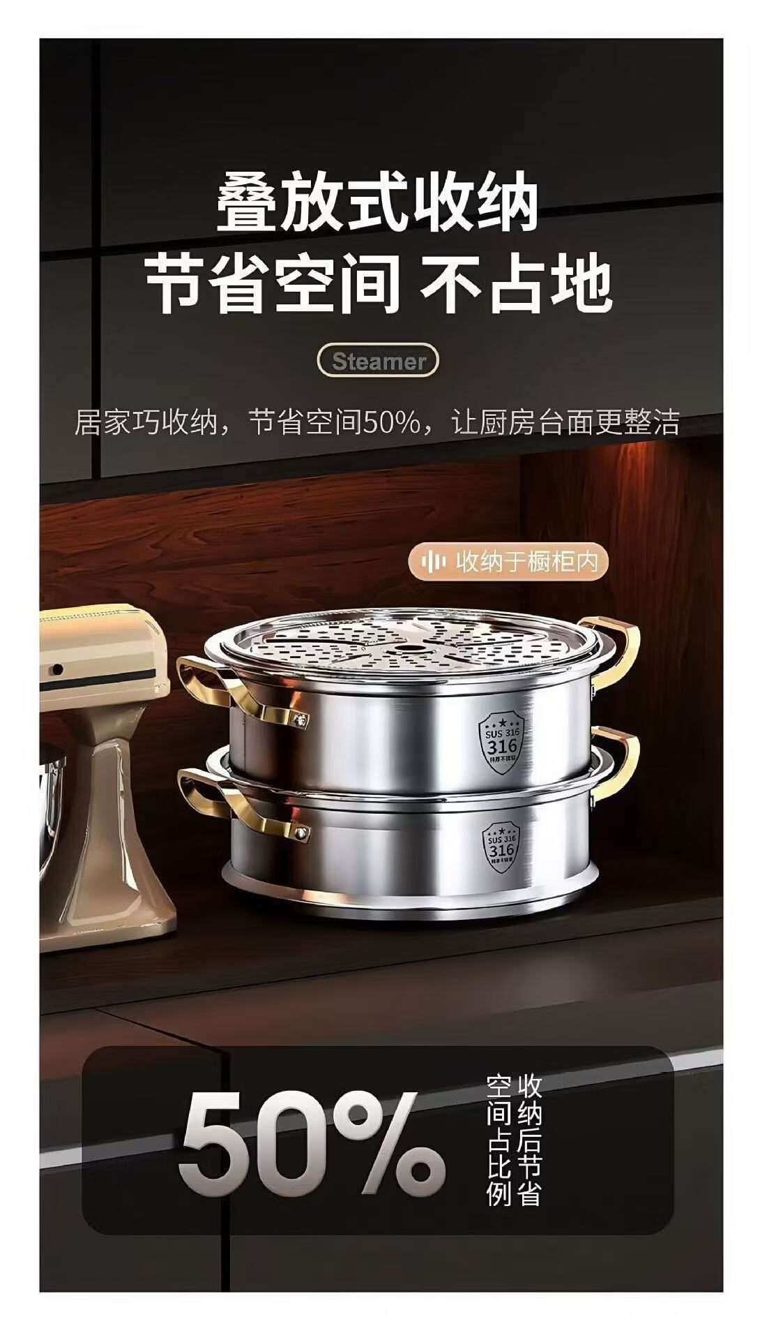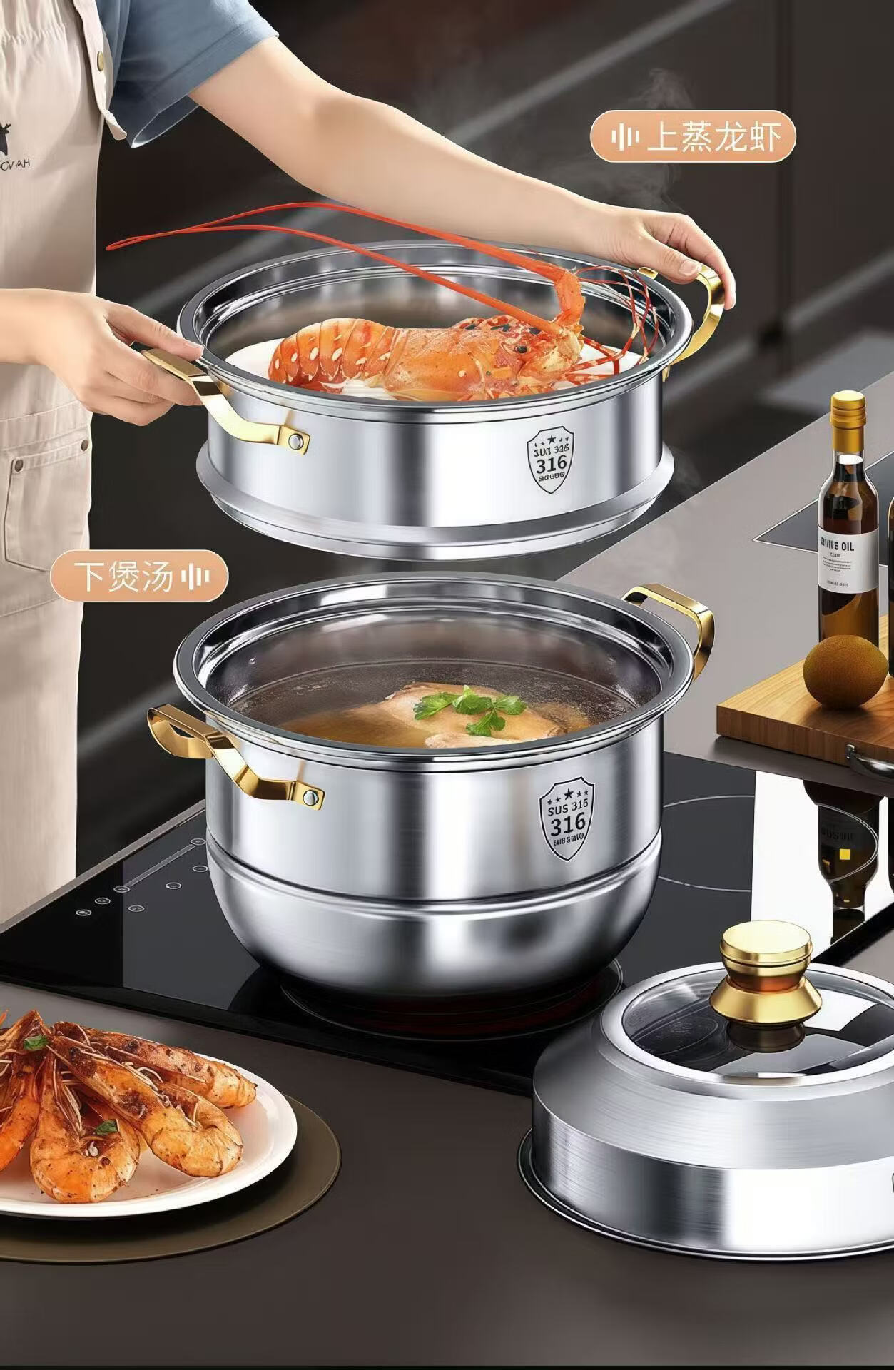 蒸锅316不锈钢家用三层大容量加厚食品级汤锅蒸馒头电磁燃气通用 德国品质【旗舰款】四层 40cm