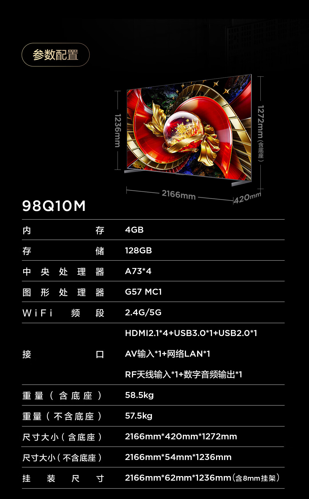 TCL电视 98Q10M 包安装版【伸缩挂架送装一体】98英寸 SQD-Mini LED 100%全局高色域 护眼