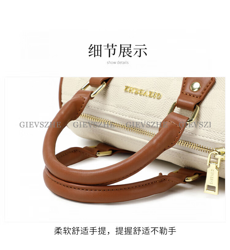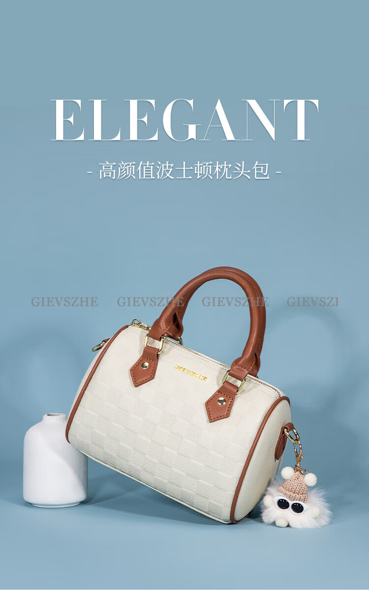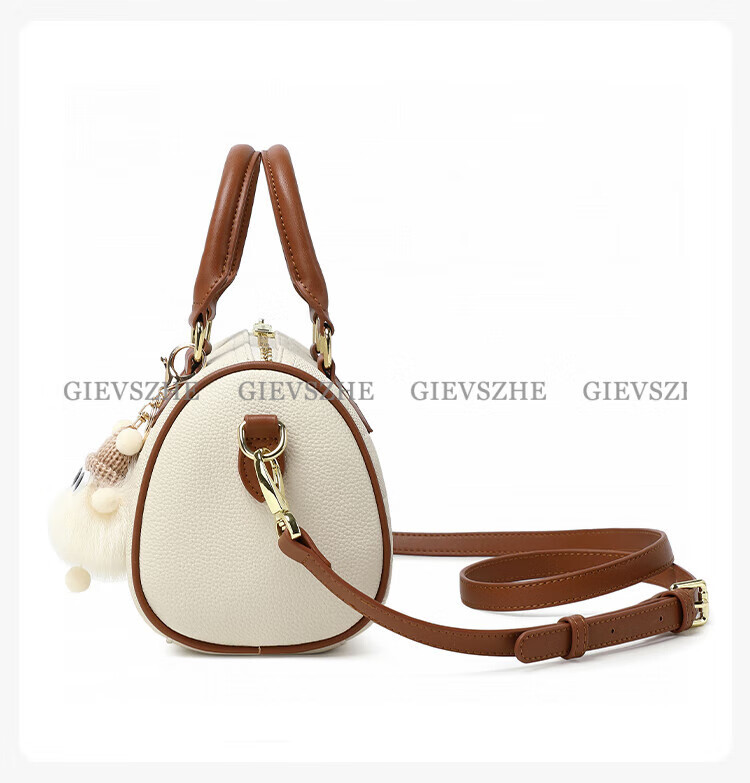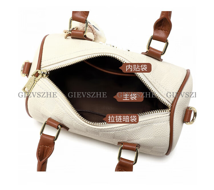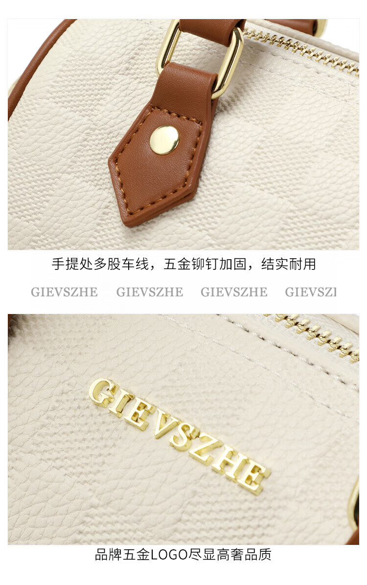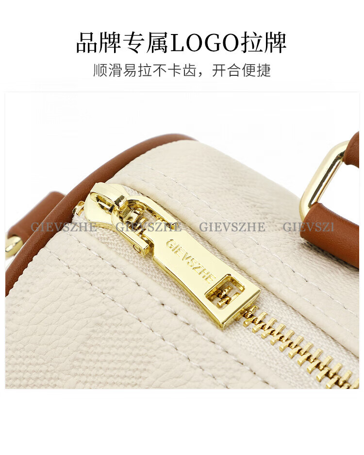纪诗哲女包包2026年新款轻奢侈牛皮女士波士顿包情人节生日礼物送老婆 米白拼棕【次日达】热销