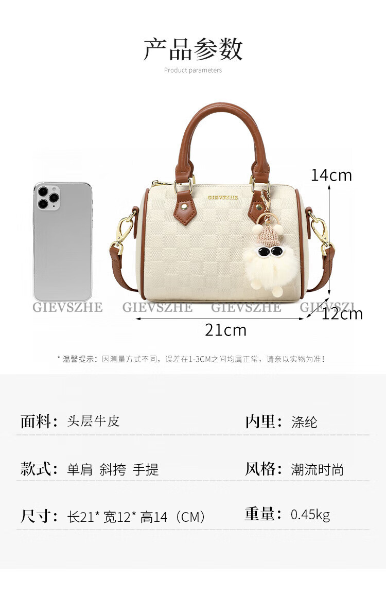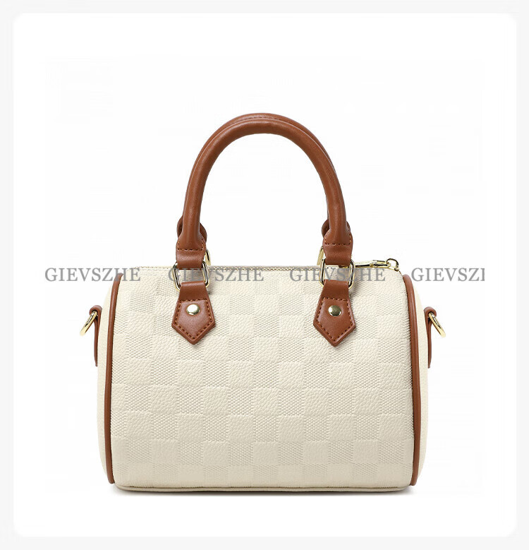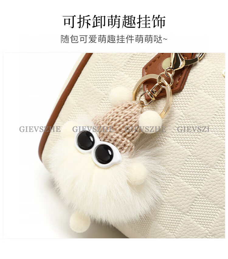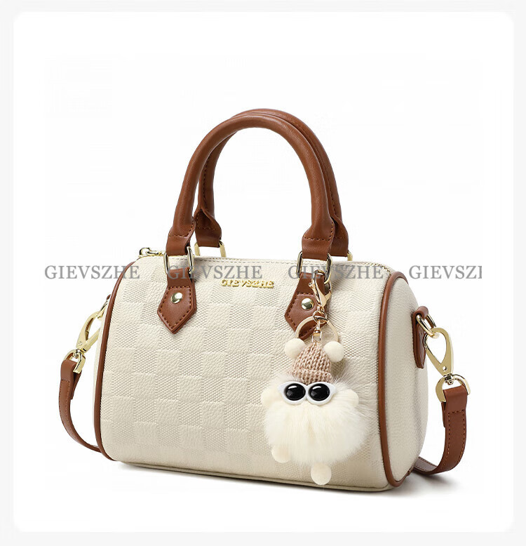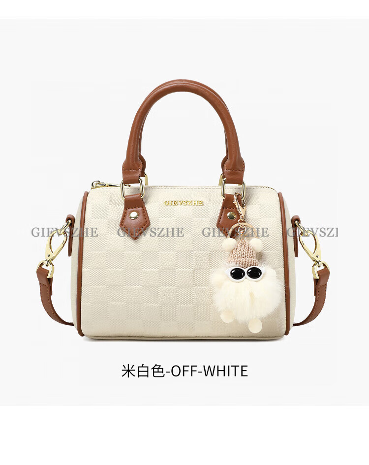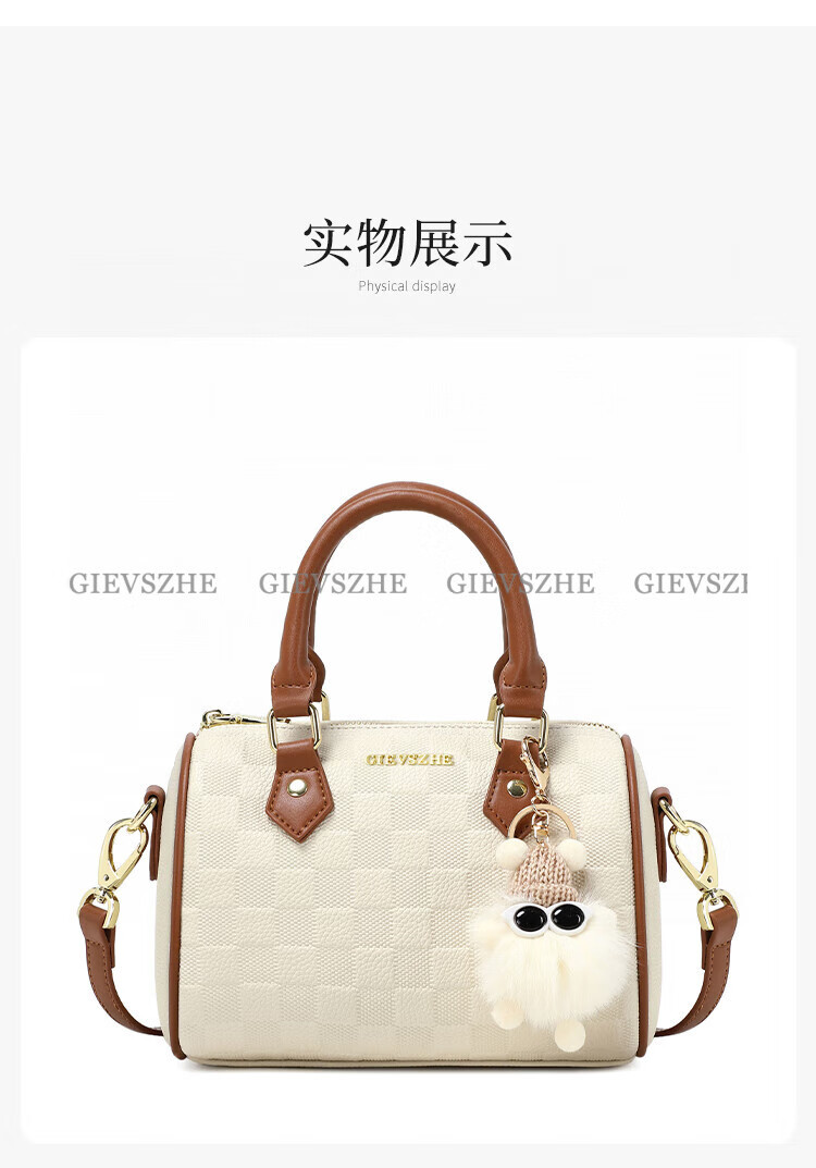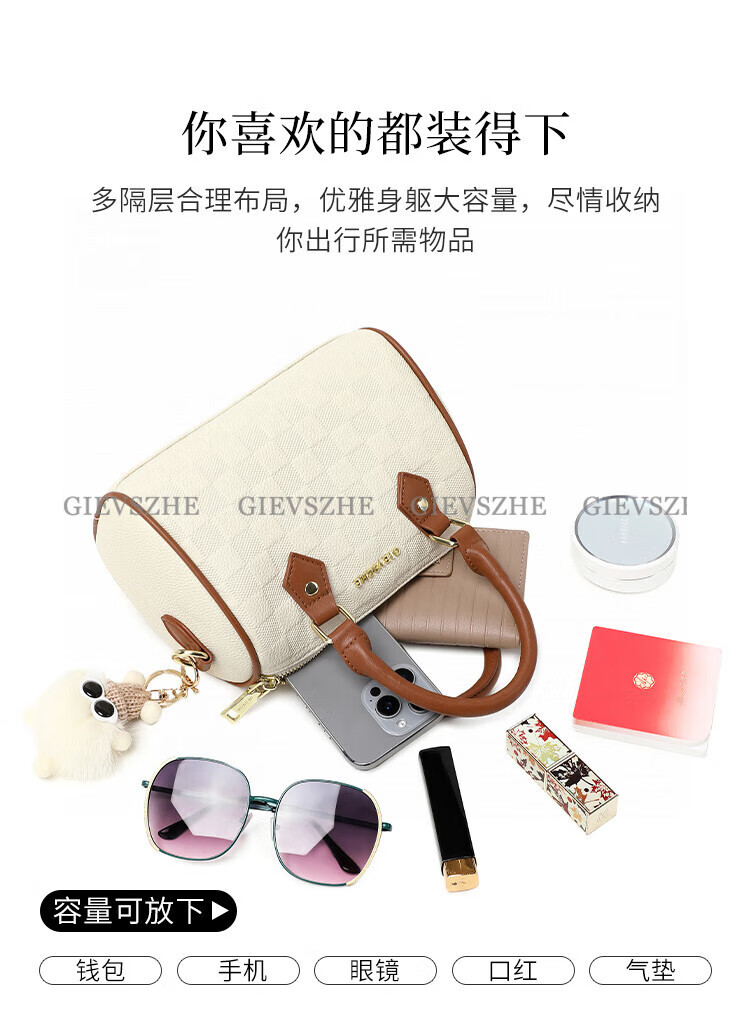 纪诗哲女包包2026年新款轻奢侈牛皮女士波士顿包情人节生日礼物送老婆 米白拼棕【次日达】热销