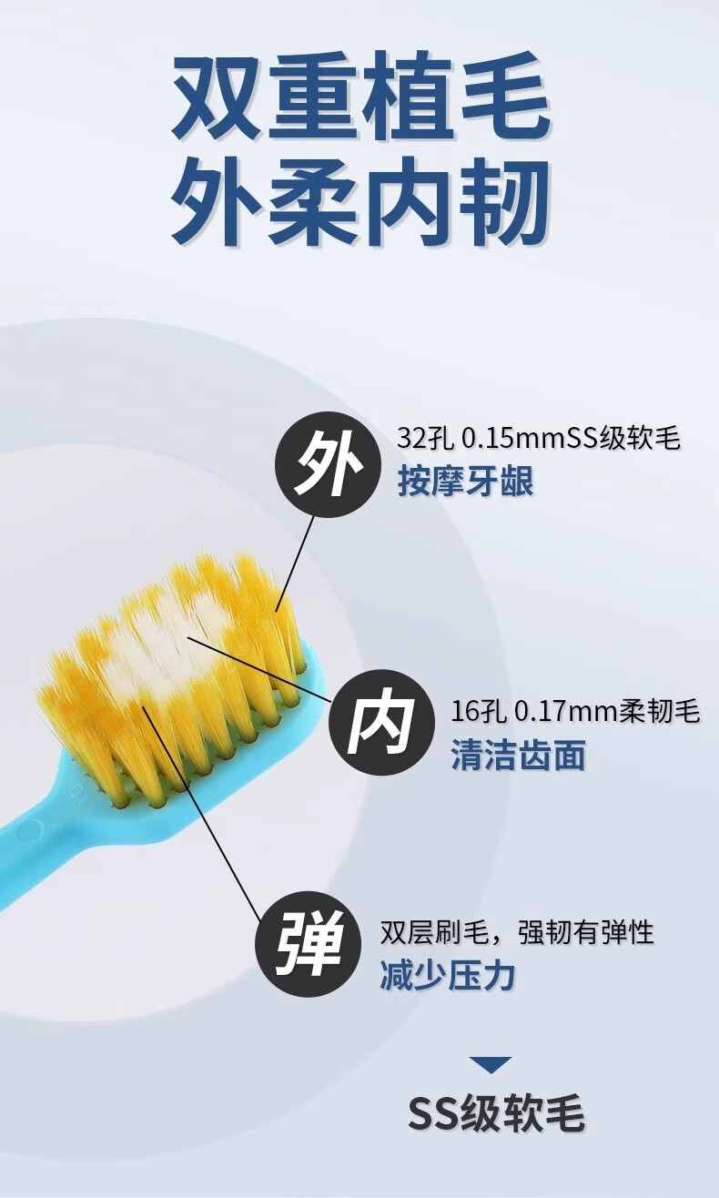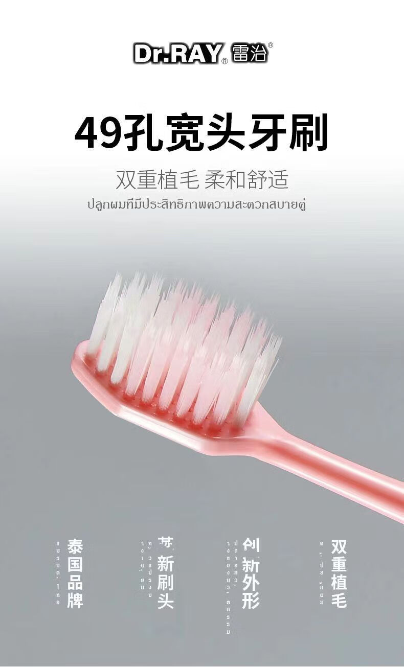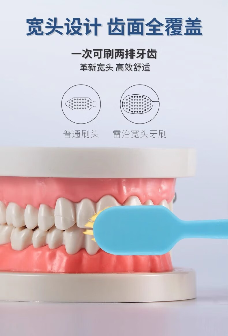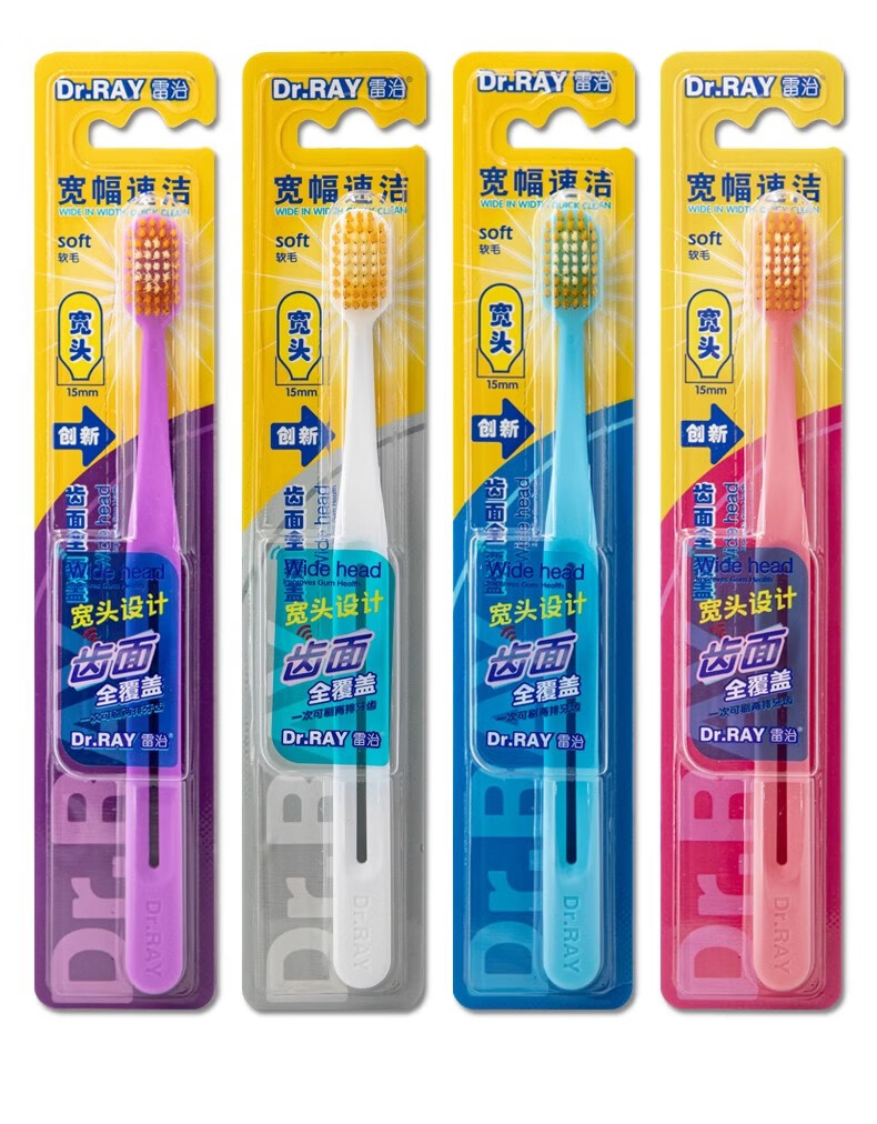 雷治牙刷宽头软毛超细成人家用情侣牙刷家庭装2支装成人女士男士学生 软毛 6支 D29(3盒)颜色随机