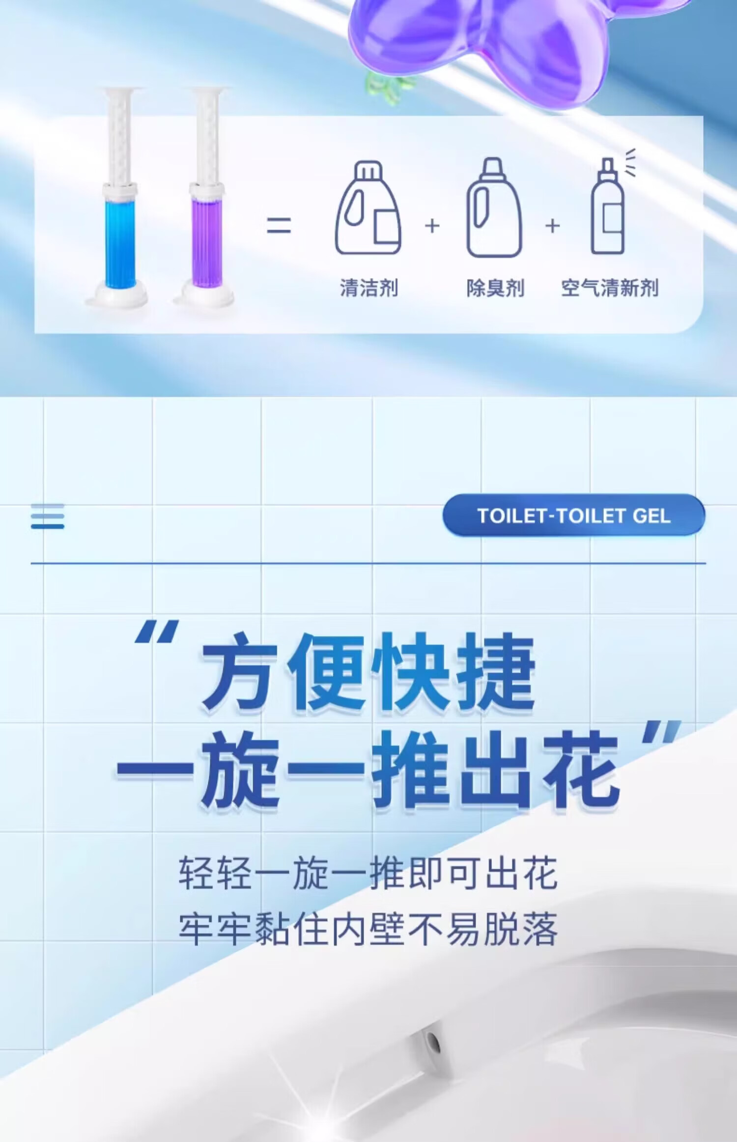 Kaooseen浴室用品马桶洁厕小花凝胶厕所清洁剂香氛消臭除菌去异味 马桶小花洁厕凝胶【4支】