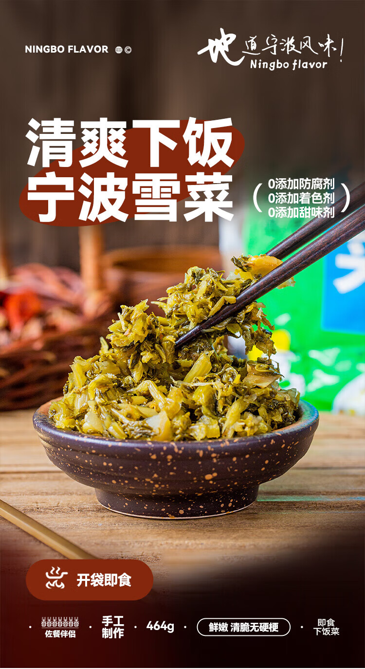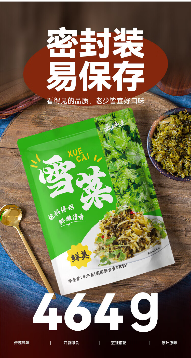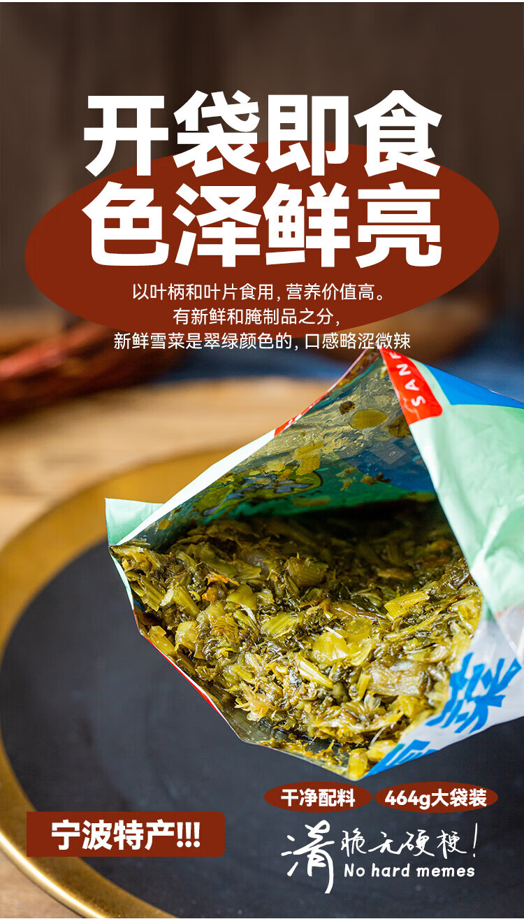 云山半宁波风味雪菜464g*2袋 宁波雪里红蕻咸菜即食下饭菜拌粥腌渍菜