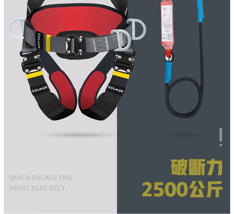 哥尔姆五点式安全带国标高空安全绳全身GD3698双大钩缓冲包1.8米
