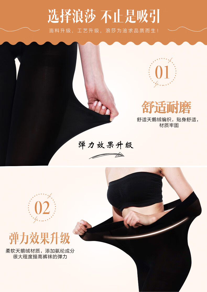 浪莎打底裤女秋冬光腿连裤袜美腿丝袜女薄款抗菌打底裤袜 肤色2条