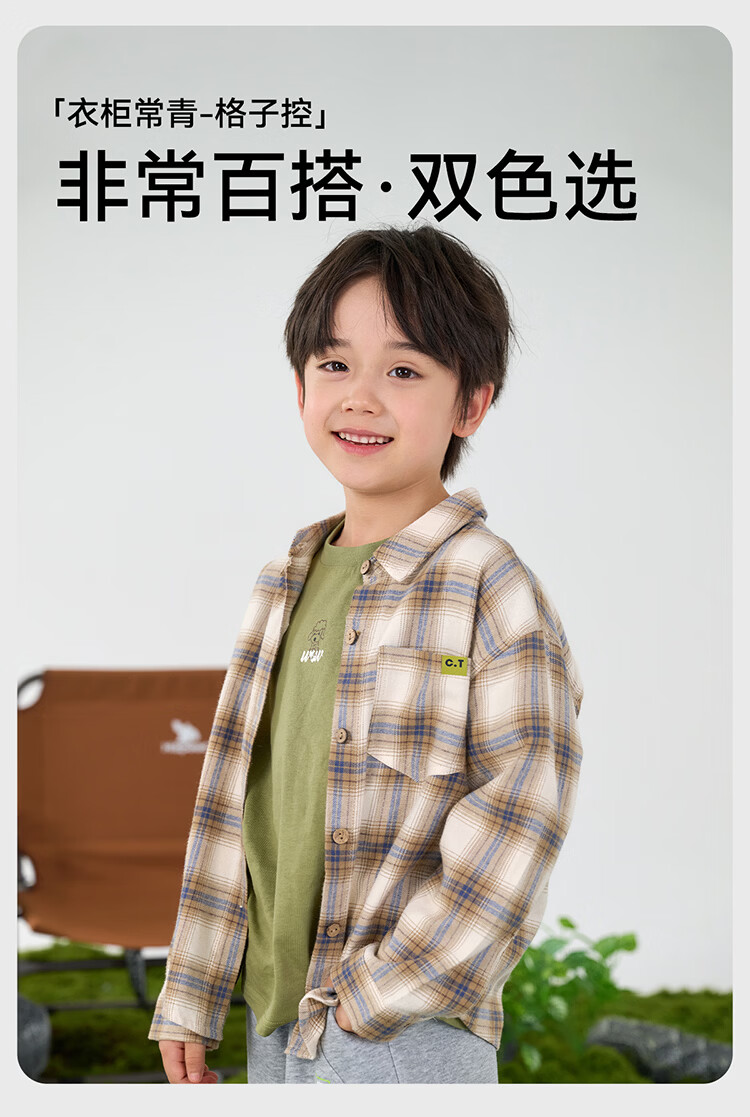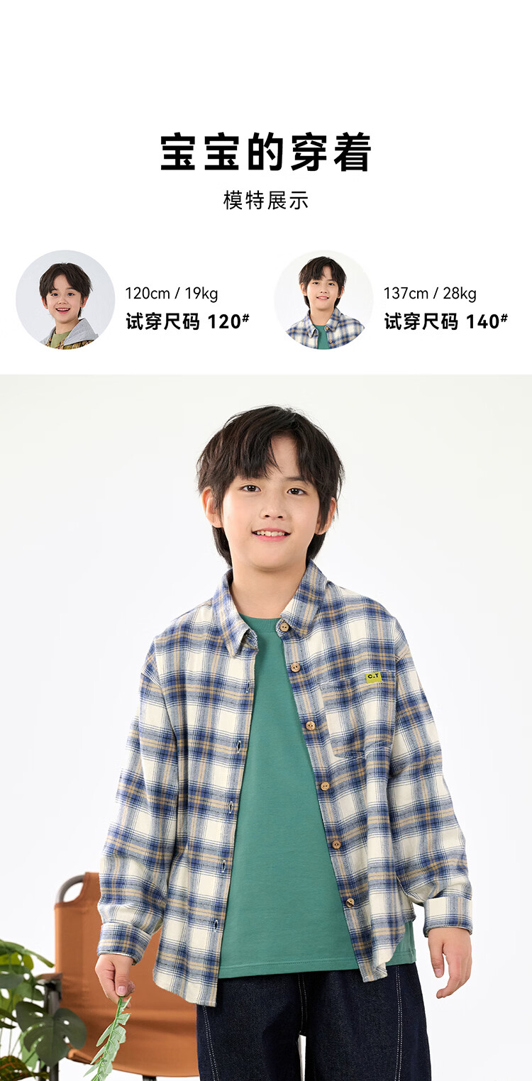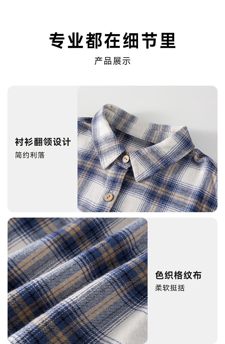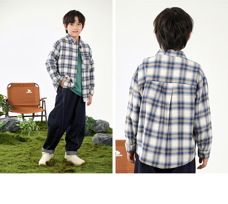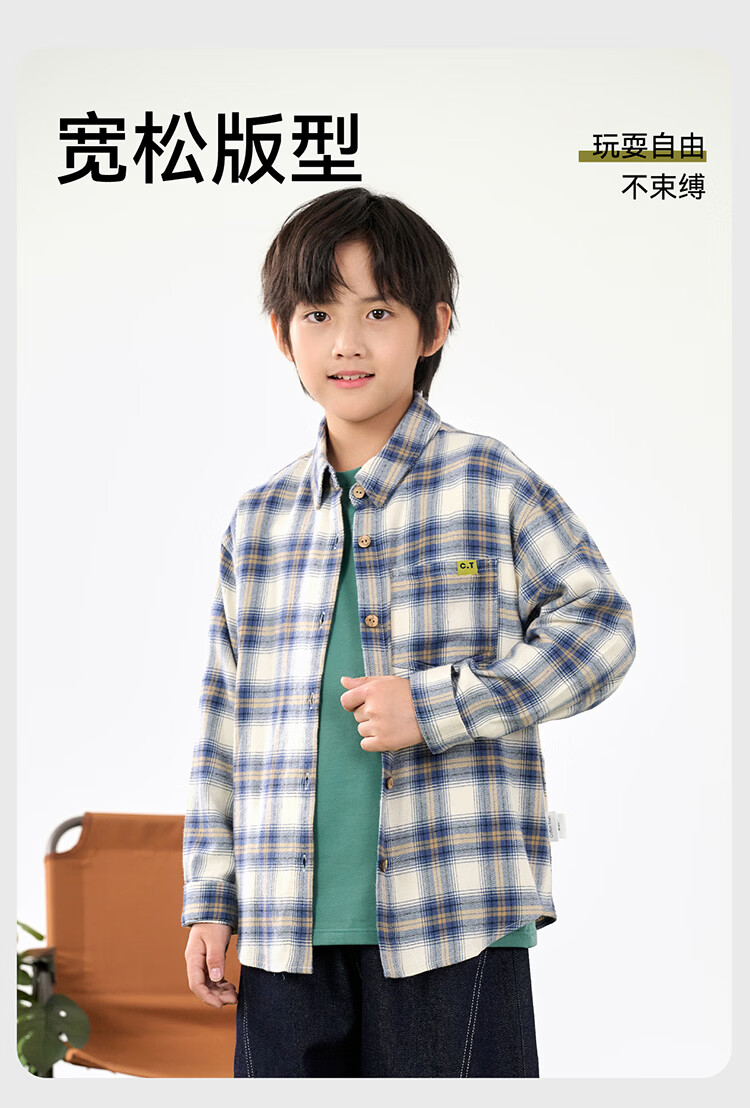 棉花堂(cottontown)棉花堂男童格子衬衫上衣外套儿童衬衣休闲春秋季新款童装中大童 蓝白格 90 90/52