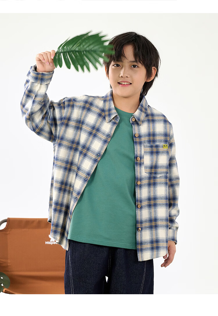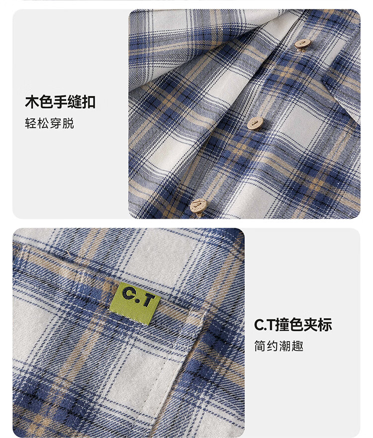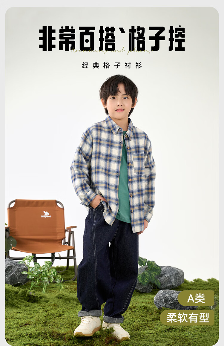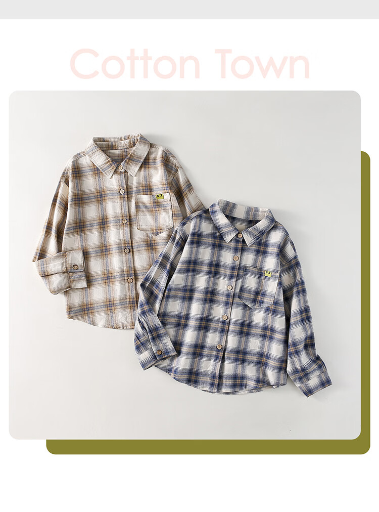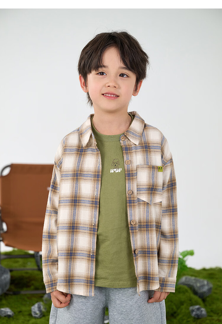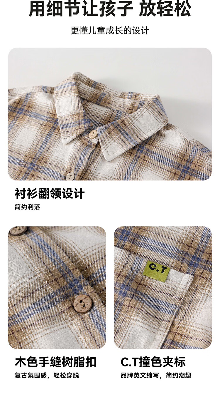 棉花堂(cottontown)棉花堂男童格子衬衫上衣外套儿童衬衣休闲春秋季新款童装中大童 蓝白格 90 90/52
