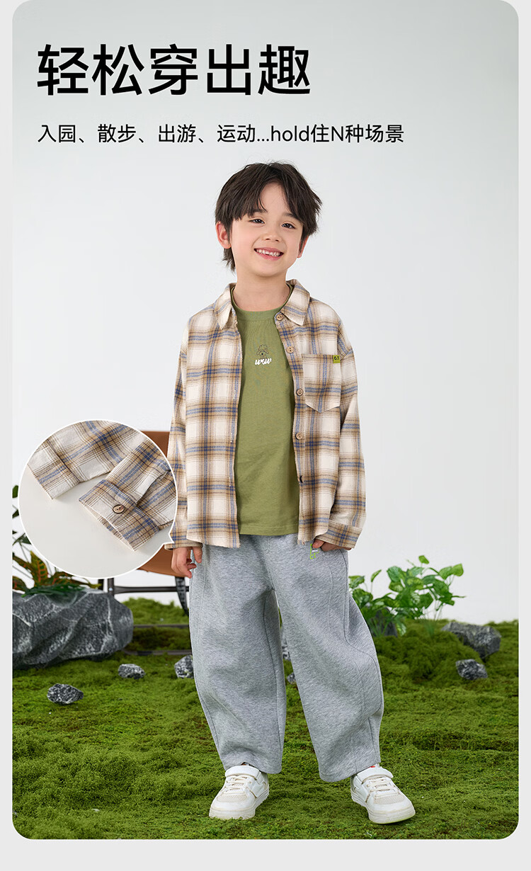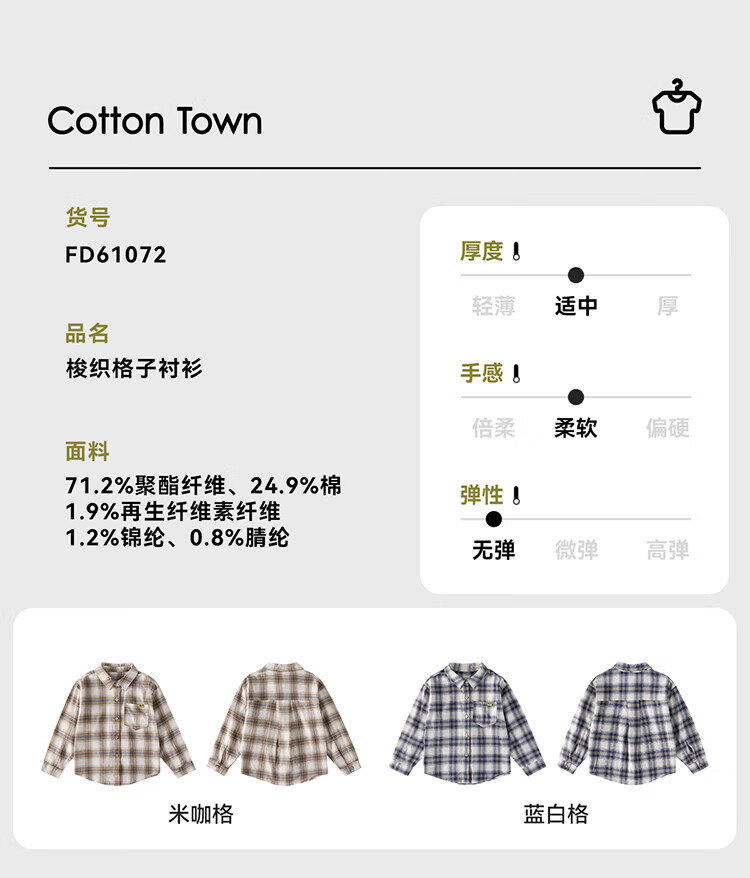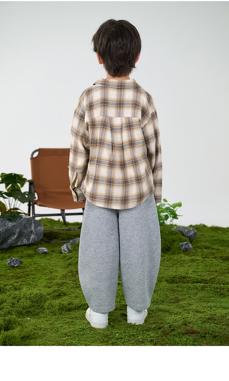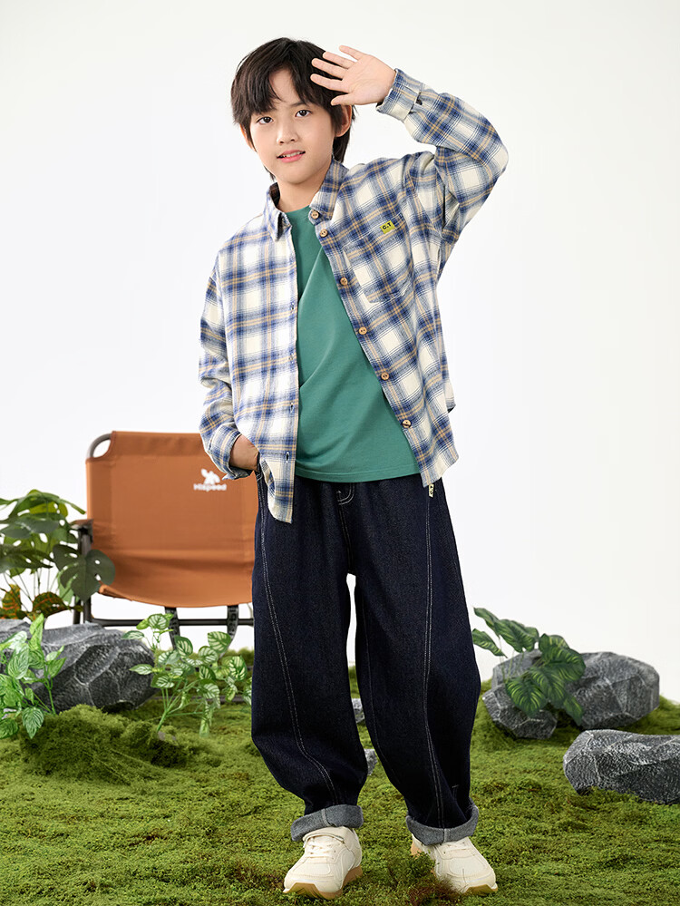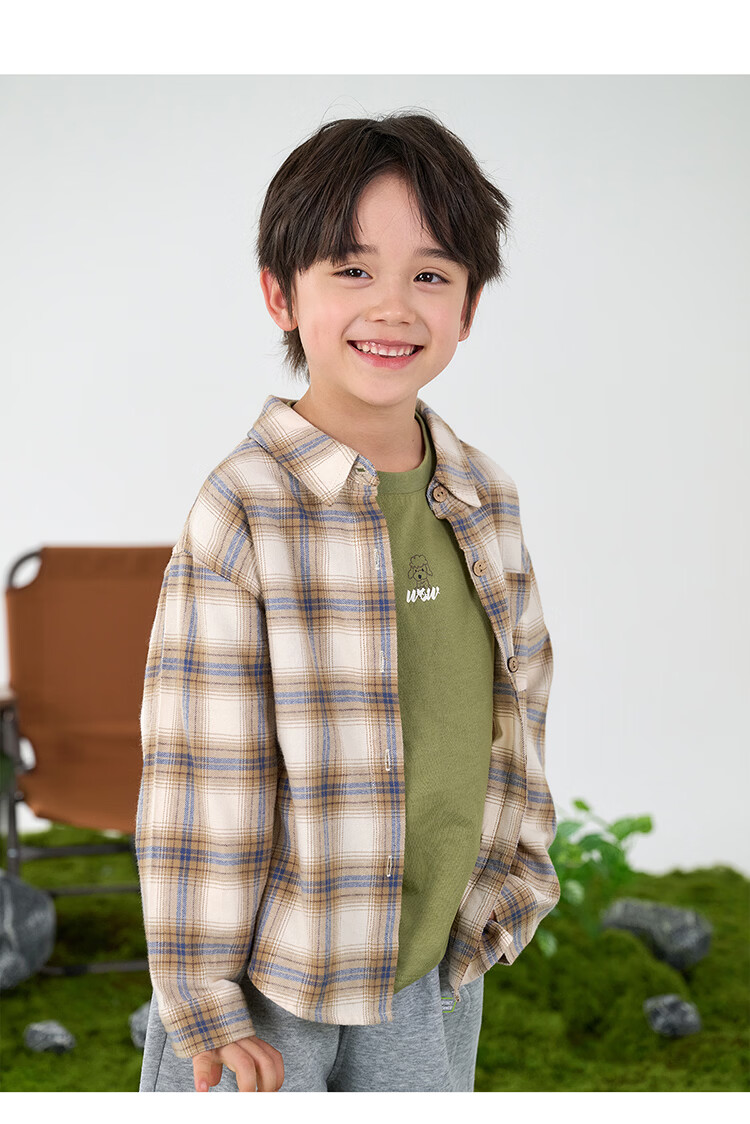 棉花堂(cottontown)棉花堂男童格子衬衫上衣外套儿童衬衣休闲春秋季新款童装中大童 蓝白格 90 90/52