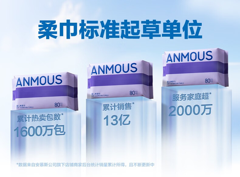 安慕斯婴儿绵柔巾宝宝儿童新生儿手口专用干湿两用加大加厚一次性洗脸巾 【店长推荐】婴儿柔巾80抽*6包