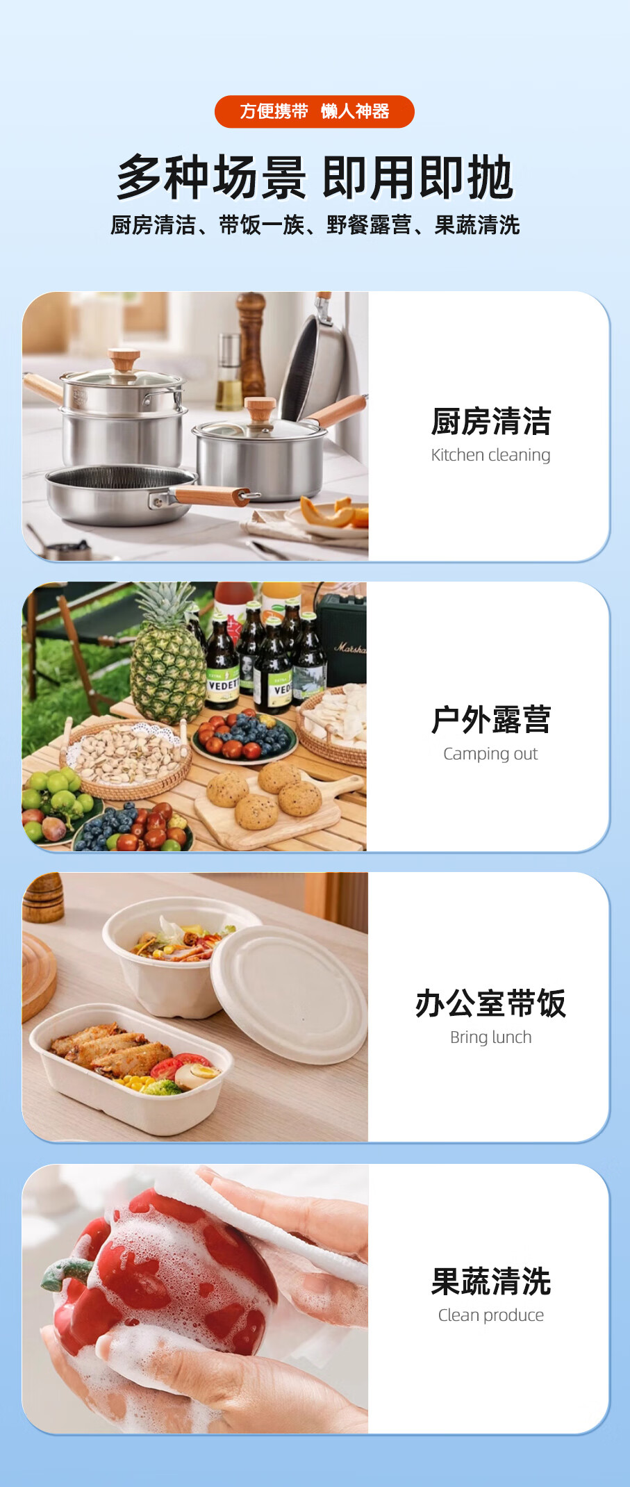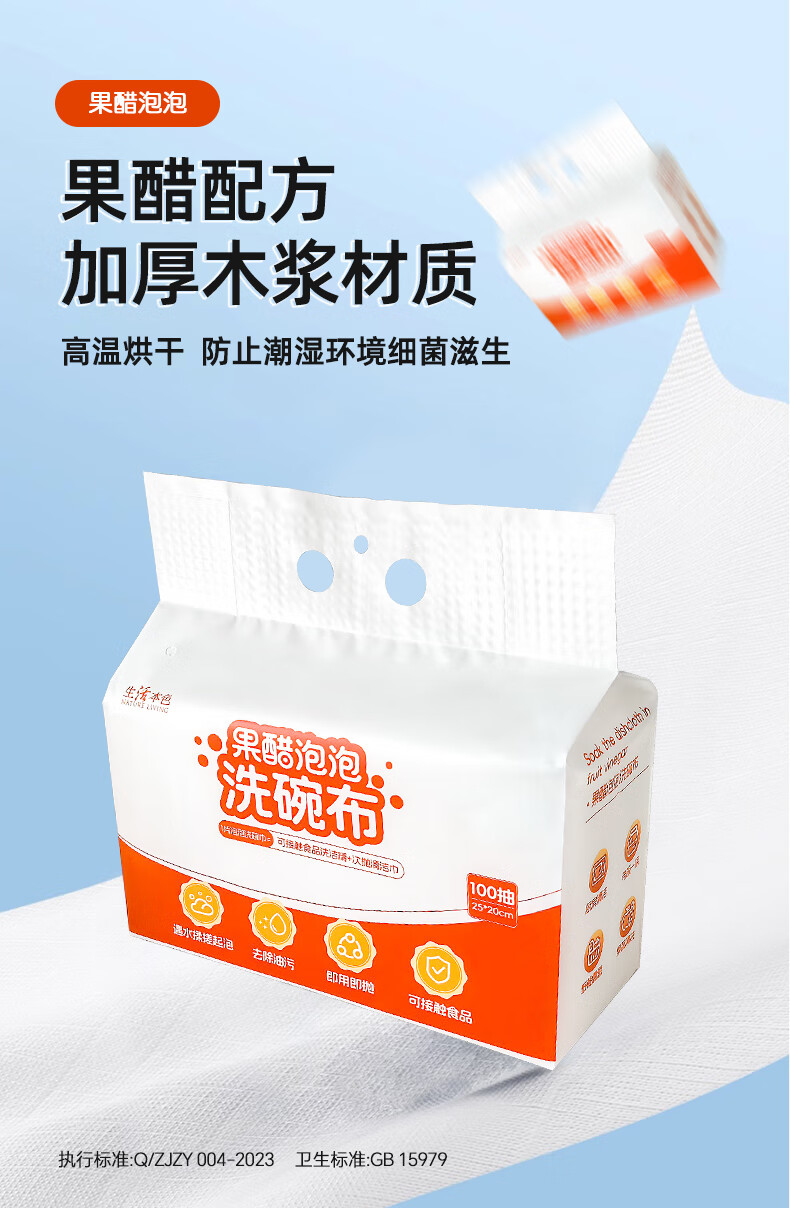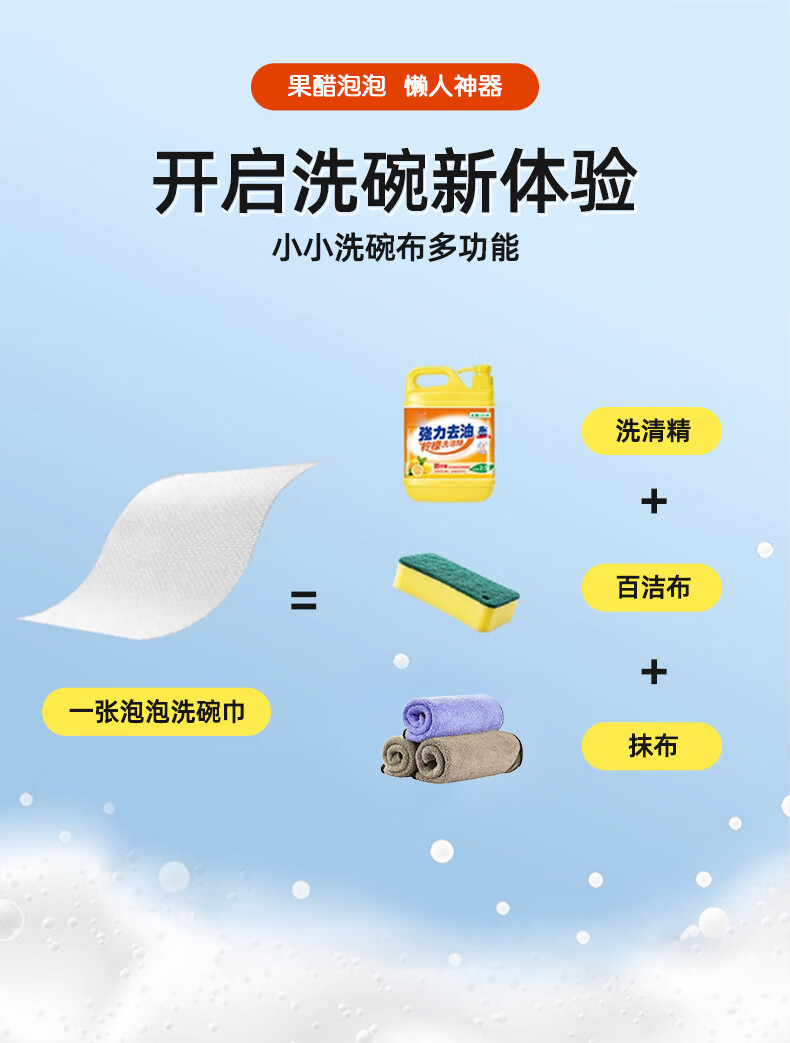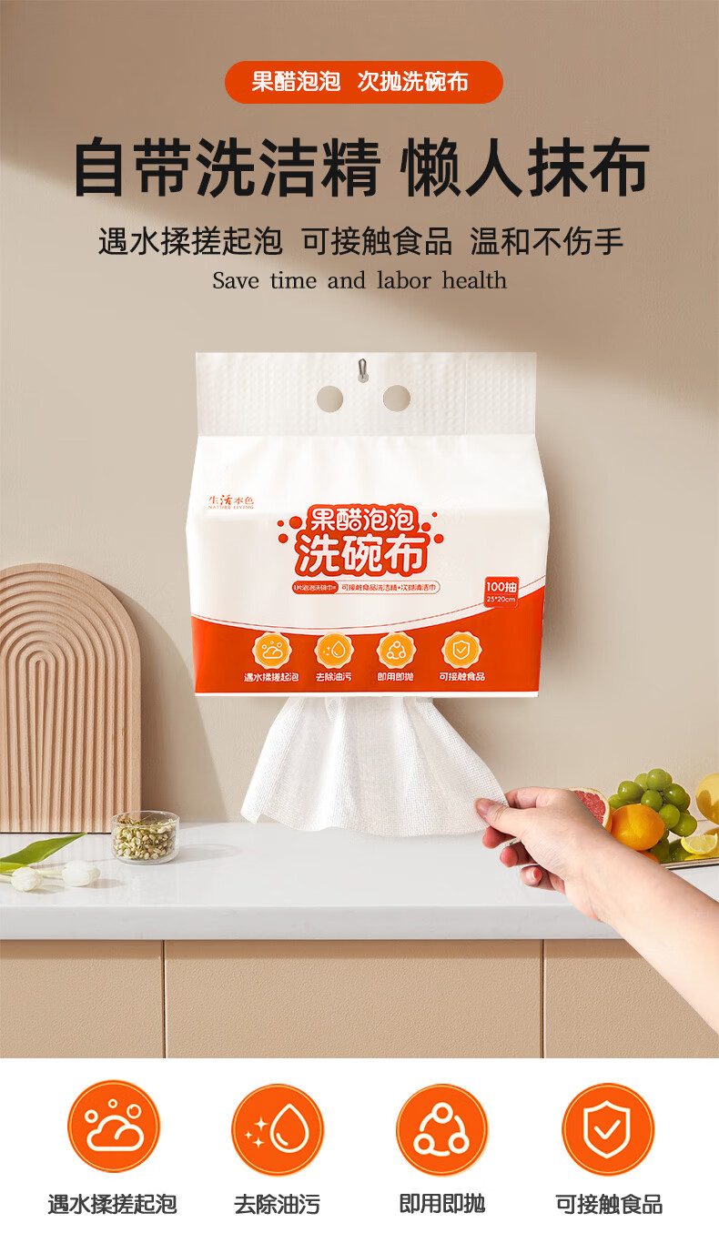 设乡味懒人抹布一次性洗碗巾100抽自带洗洁精即用即抛清洁厨具用纸 1层100张*1包