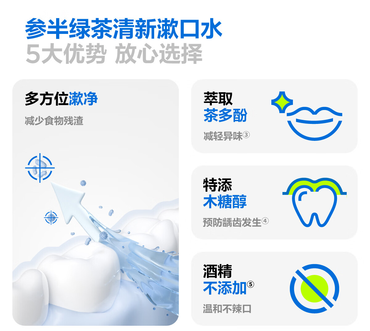 参半绿茶清新漱口水茶多酚持久留香清新口气400ml瓶装大容量囤货装 【清新口气】绿茶清新漱口水400ml*3瓶