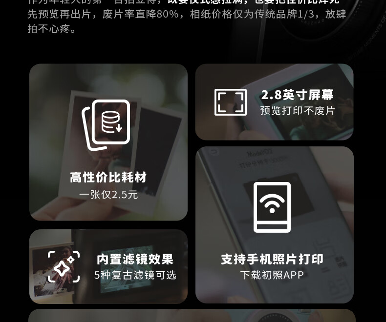 紫雨(PURAIN)拍立得相机mini便携手机高清照片打印机家用学生儿童女士数码照相机礼物 钛夜黑 套餐3【含肩带+16G内存卡+70张相纸】
