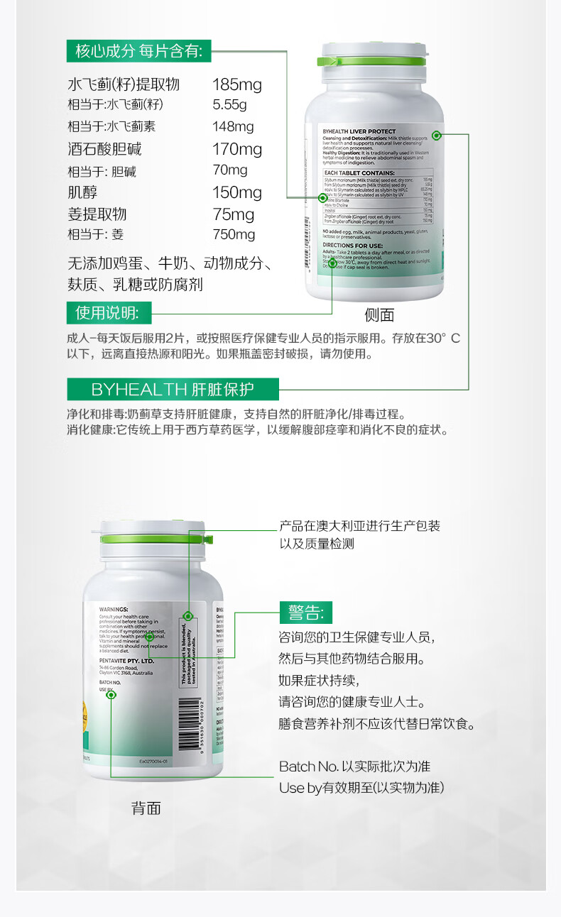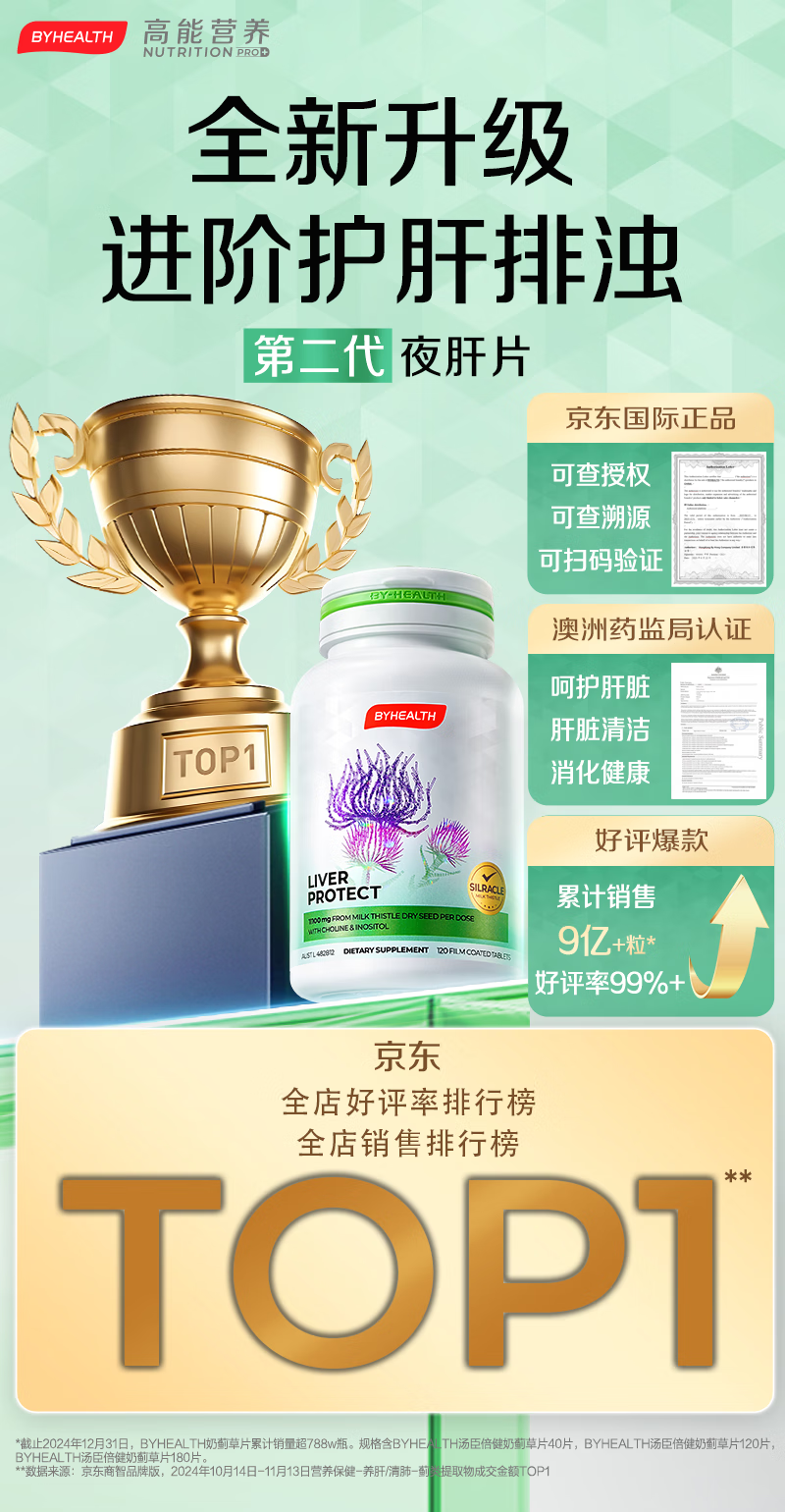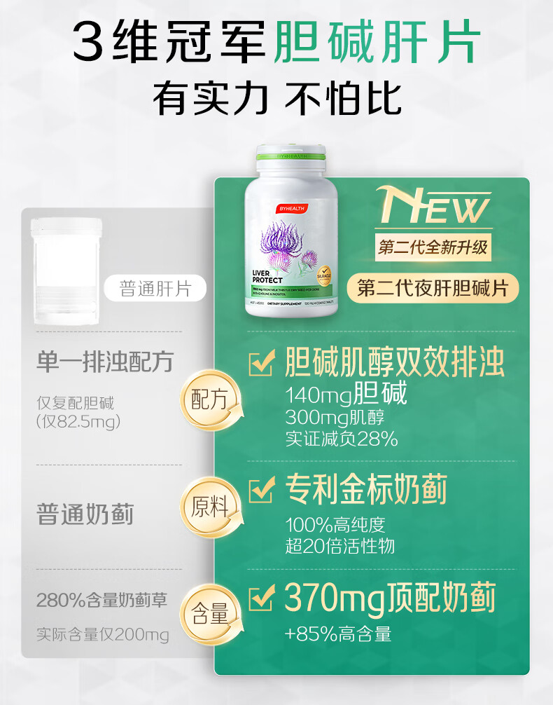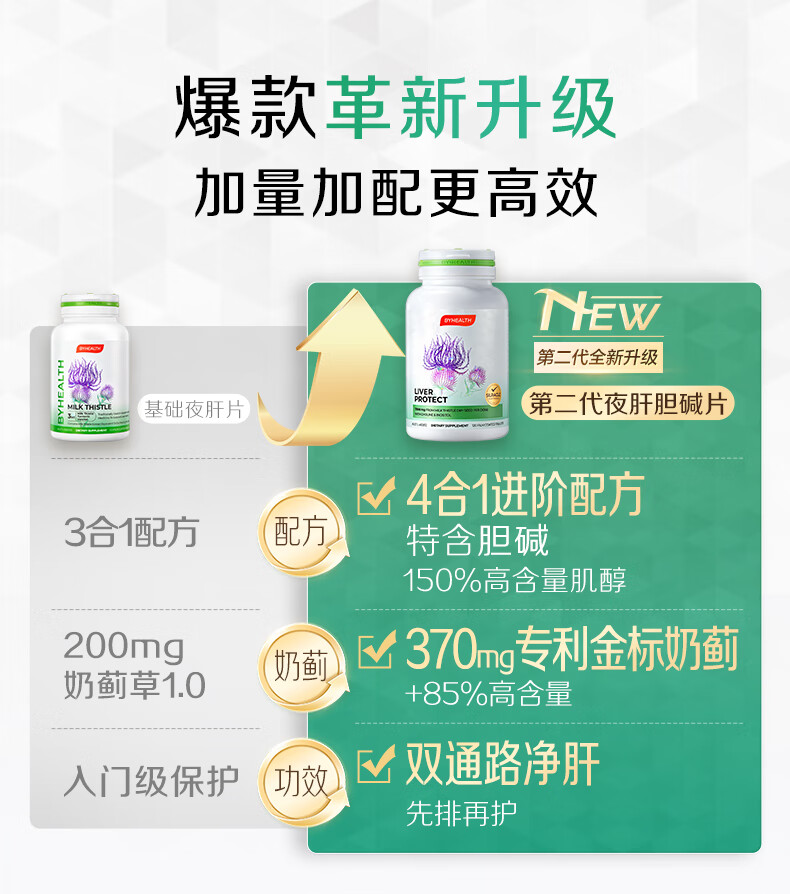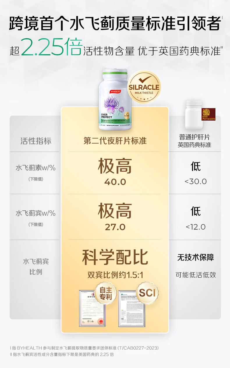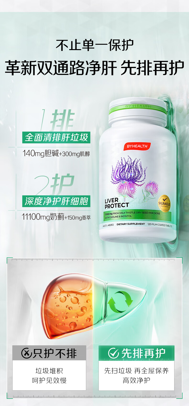 BYHEALTH护肝片第二代升级奶蓟草片熬夜喝酒养肝护肝水飞蓟脂肪肝澳洲进口 第二代升级版*3瓶【巩固装 激活肝活力】