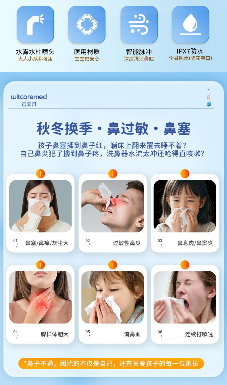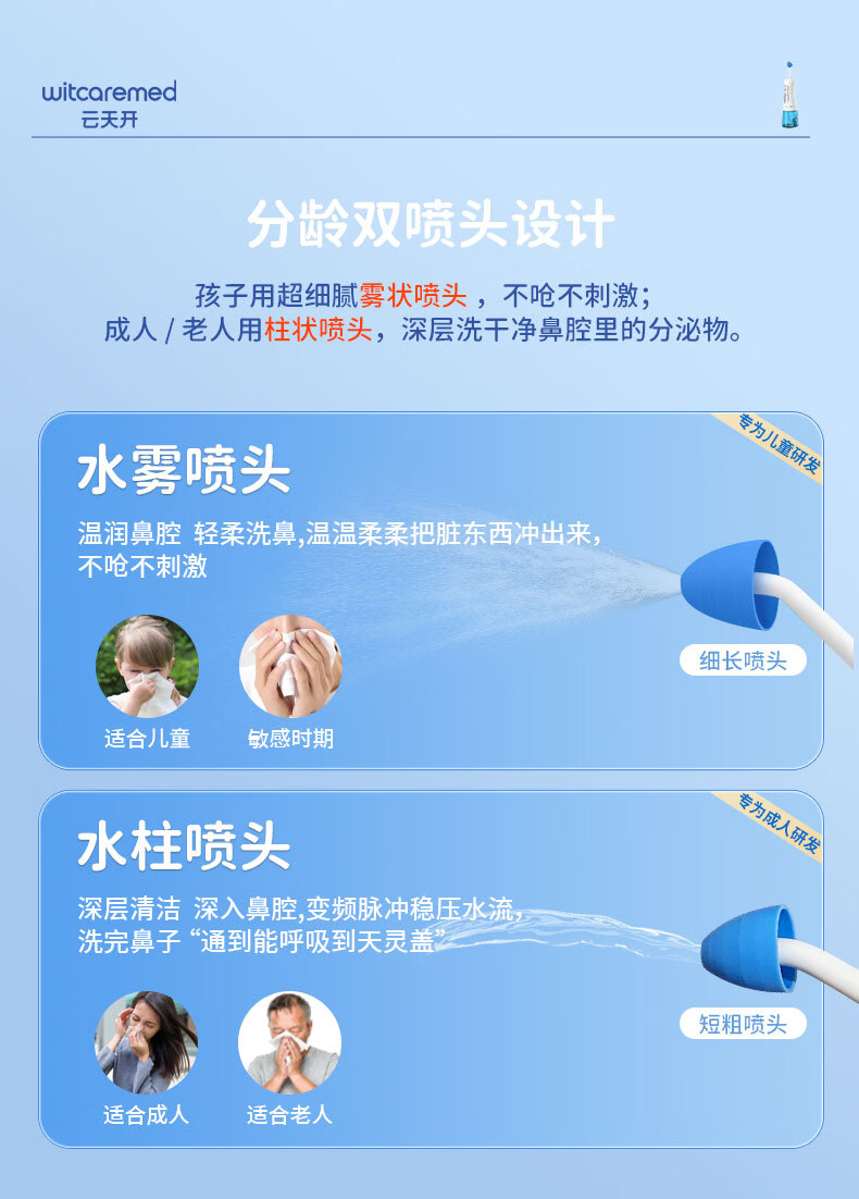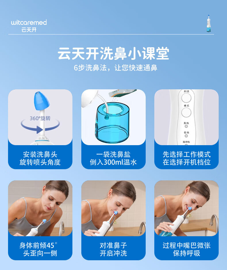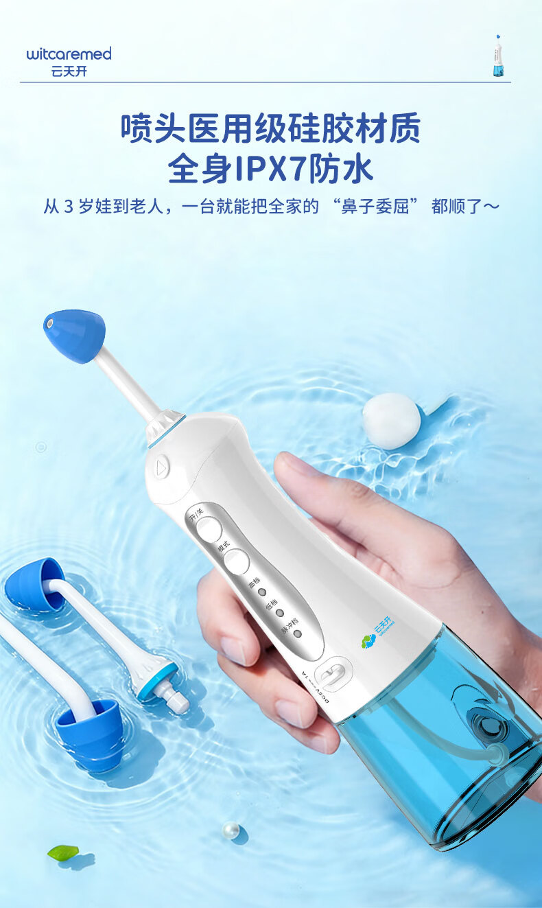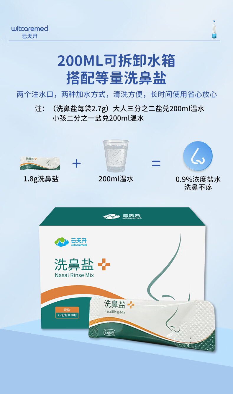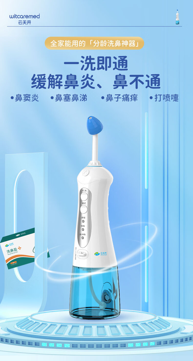 云天开电动喷雾洗鼻器便携式儿童医用鼻炎鼻腔冲洗器成人洗鼻盐生理盐水 旗舰款洗鼻器1台+90包专业洗鼻盐