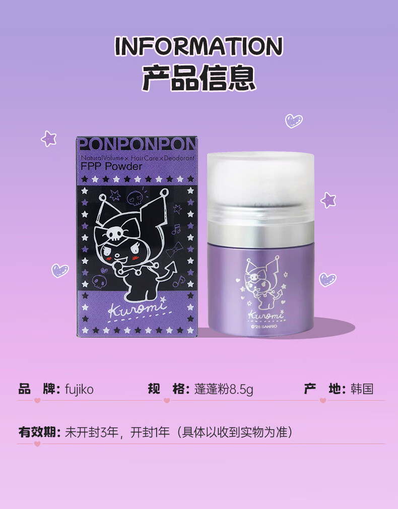 富志可fujiko酷库洛米头发蓬蓬粉ponpon蓬松粉控油干发粉去油免洗头8.5g 1瓶