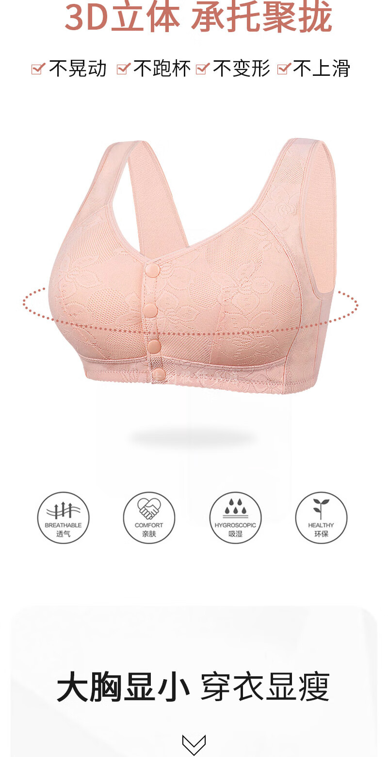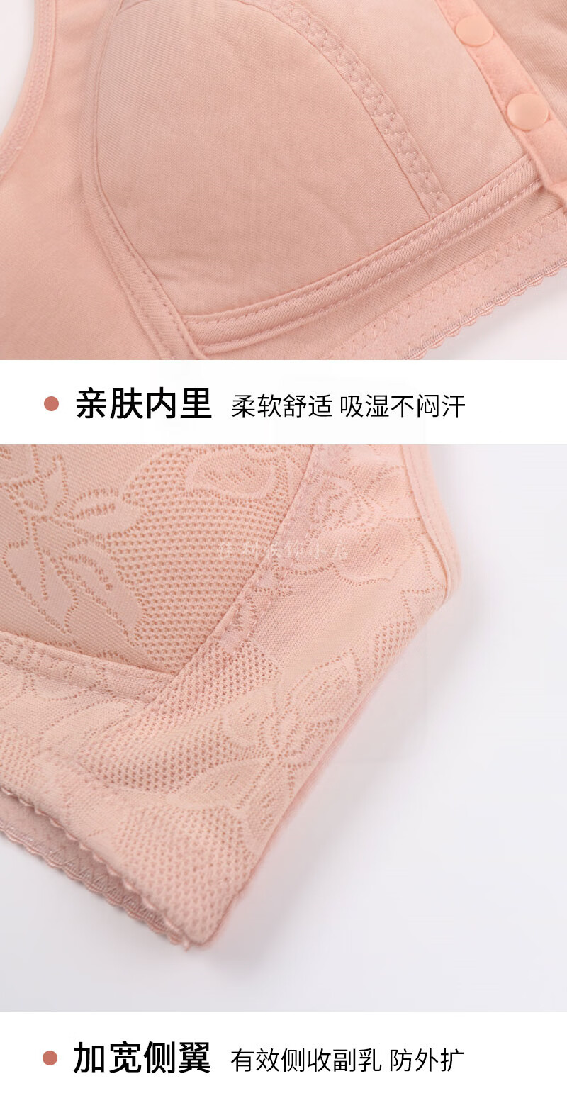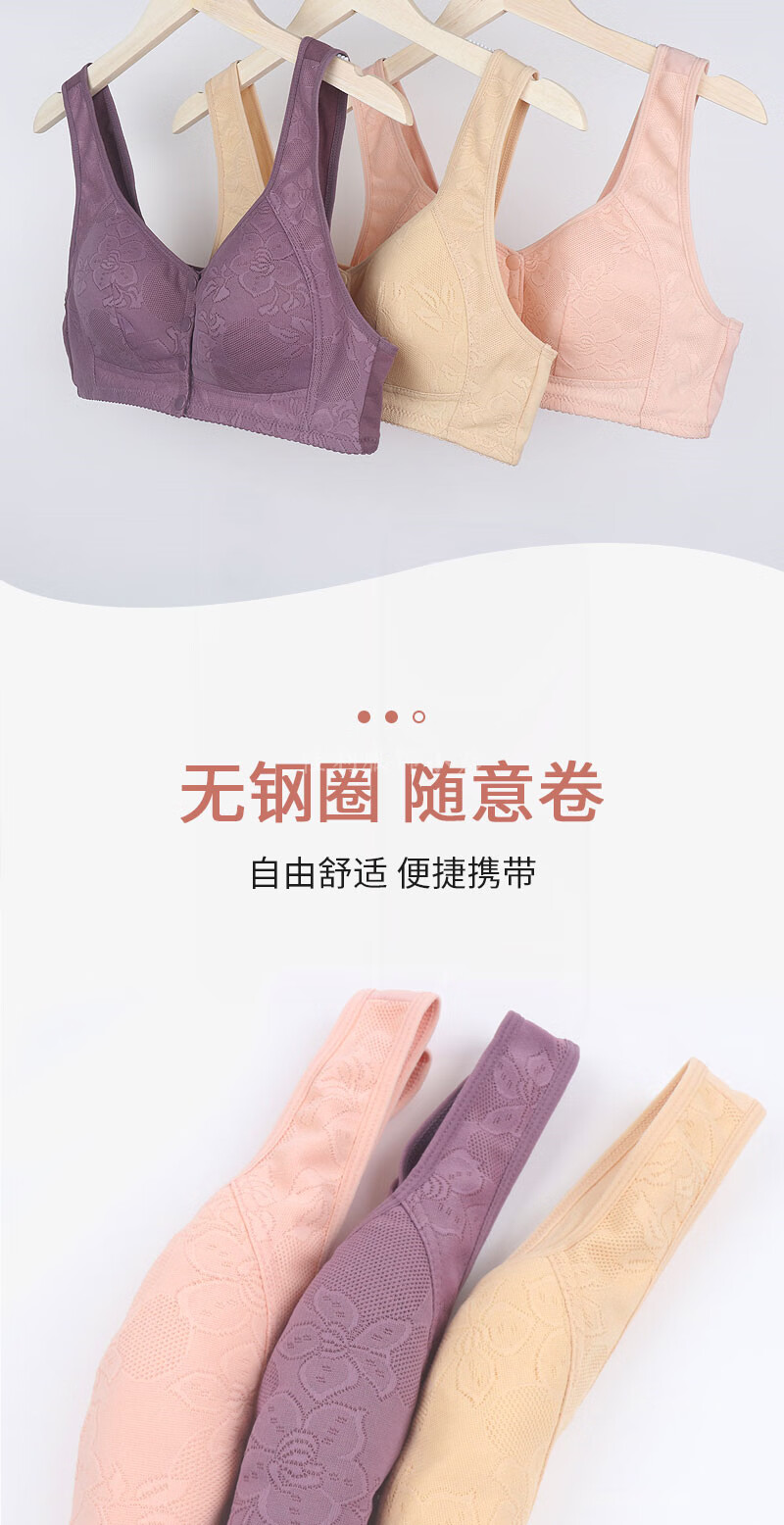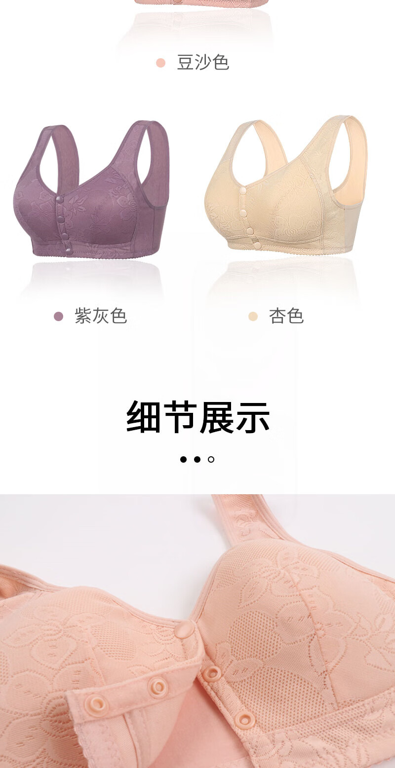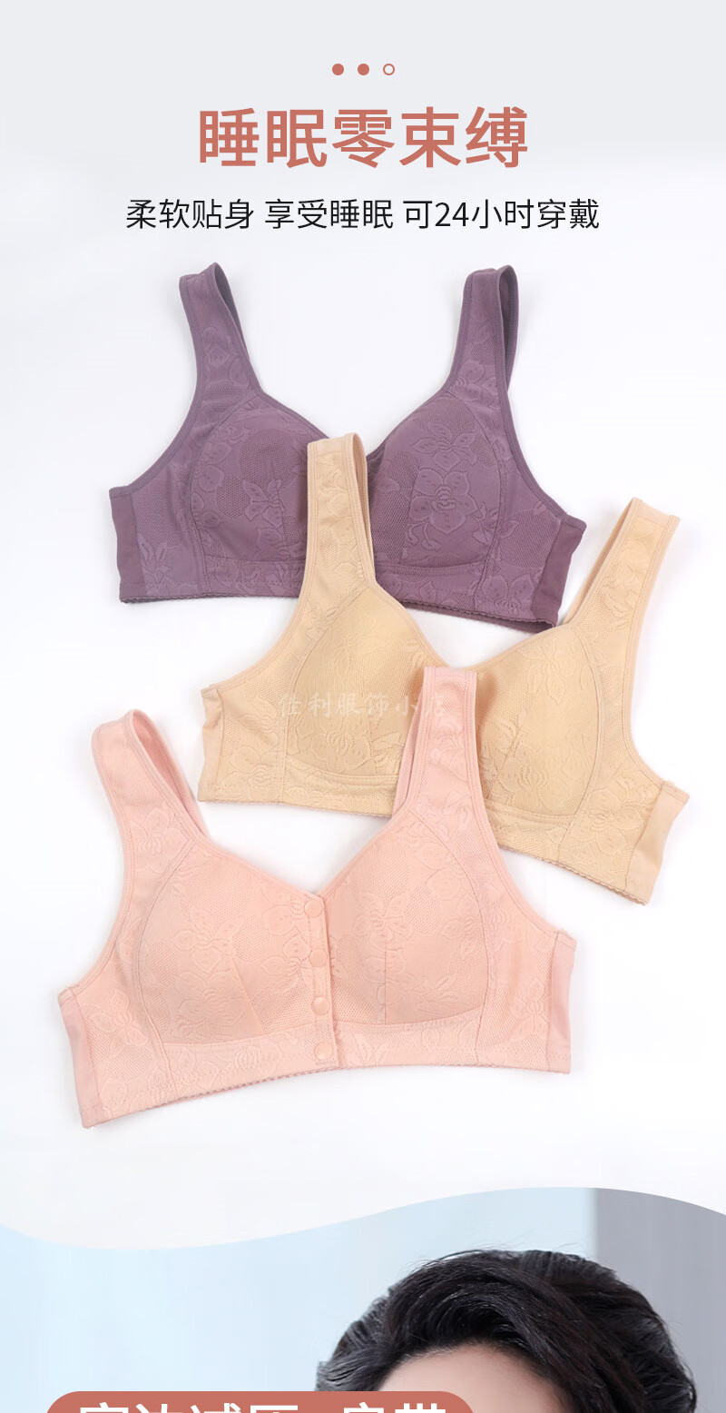 薄款前扣文胸中老年妈妈内衣女无钢圈聚拢防下垂大码蕾丝背心胸罩 【紫灰】1件装 85B 【38码】建议95-111斤