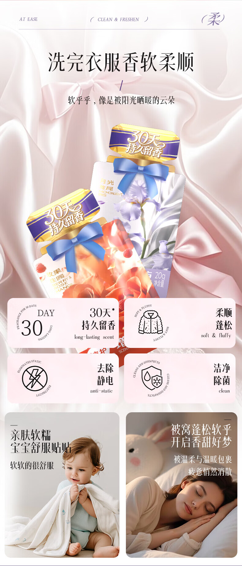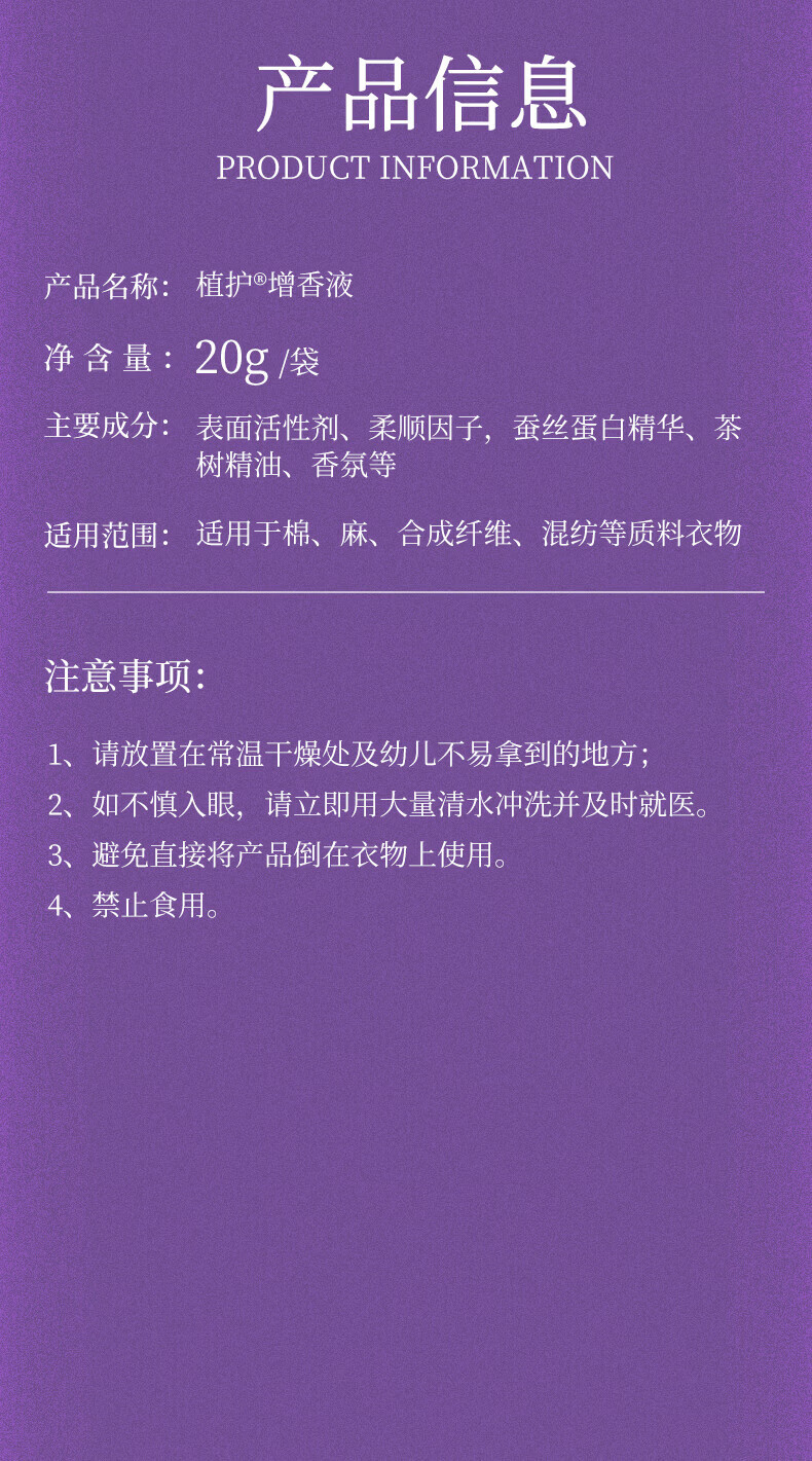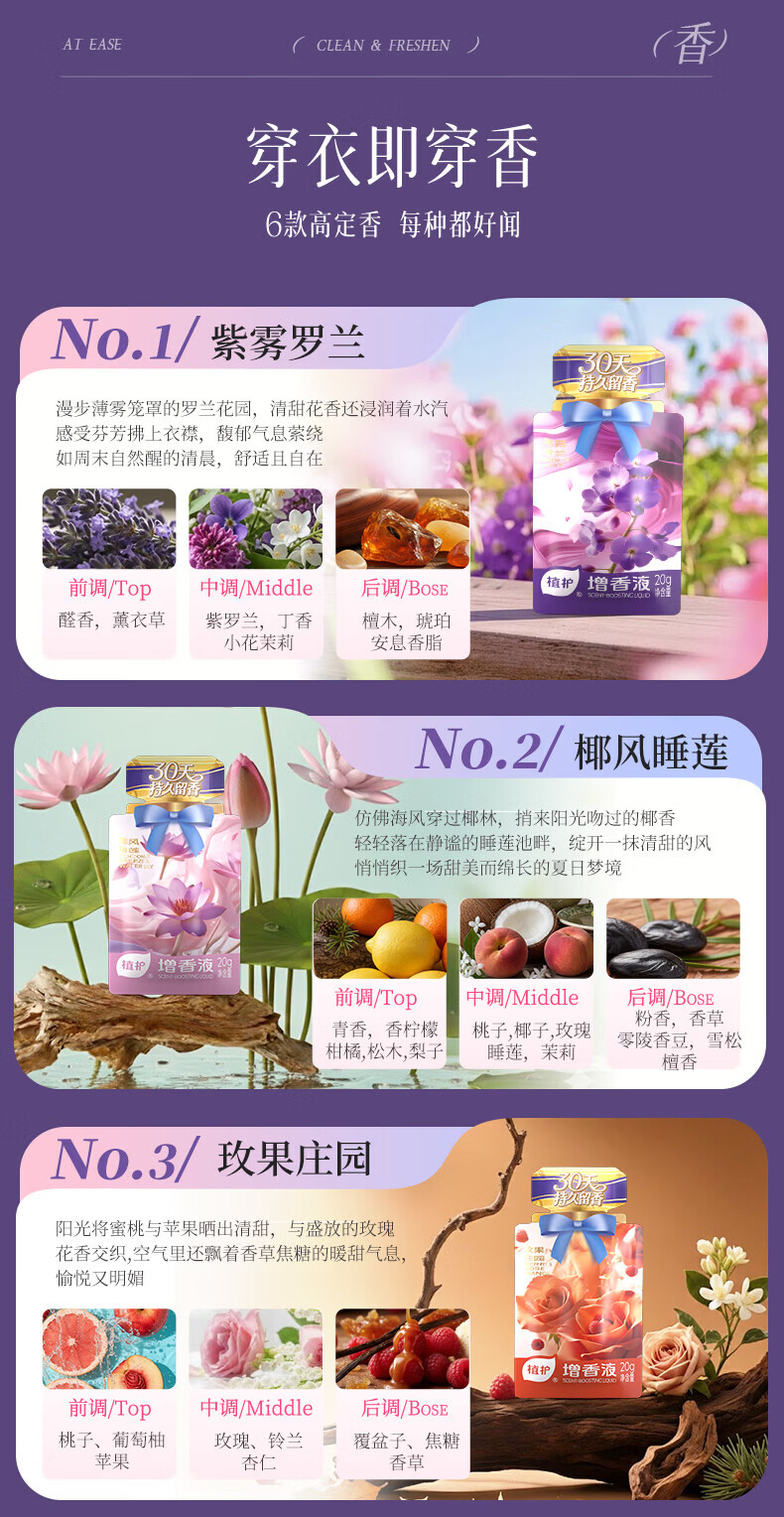 植护衣物增香液柔顺剂持久留香去异味浓缩香氛护衣去静电 【6种香型】混合装20g*12袋