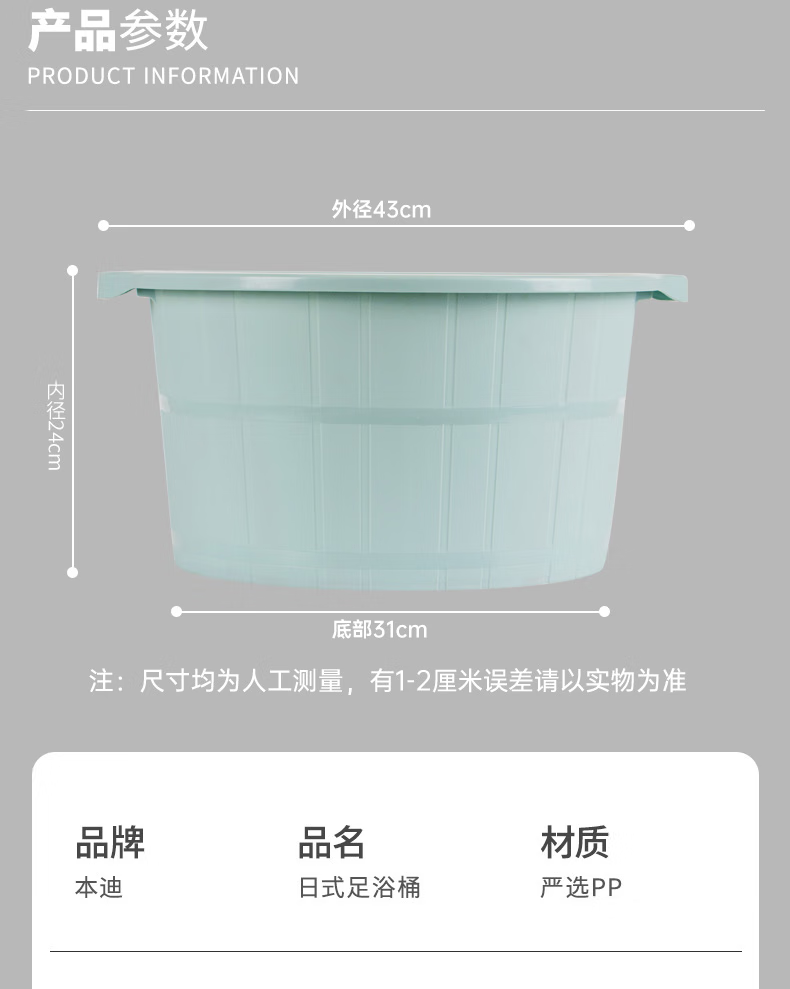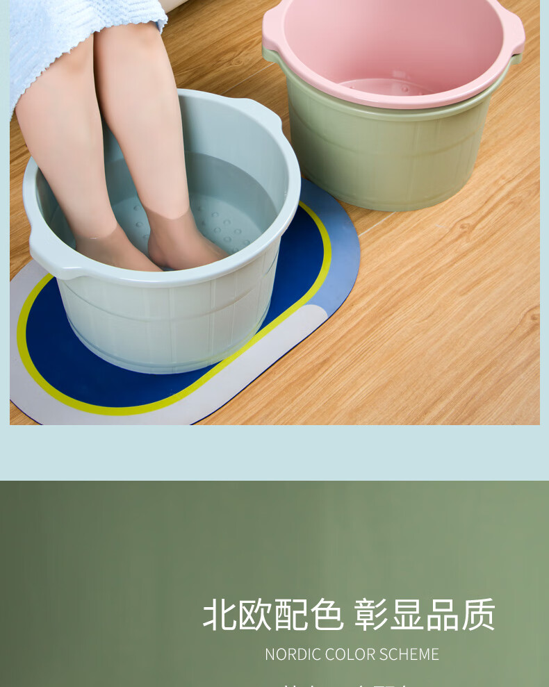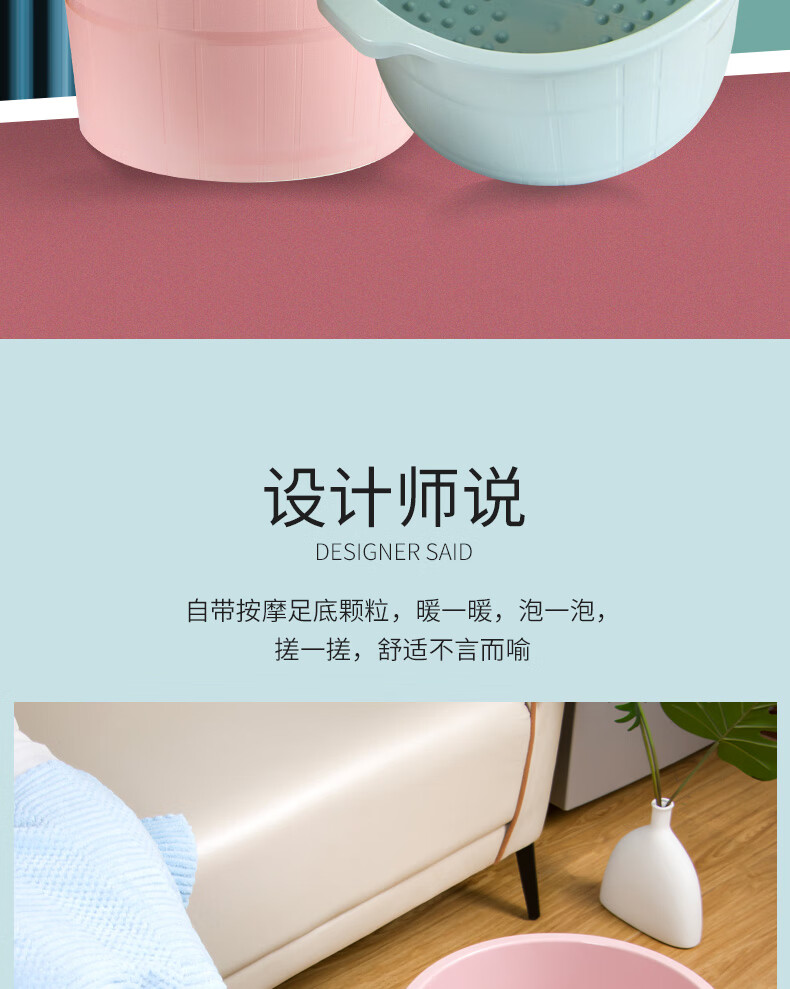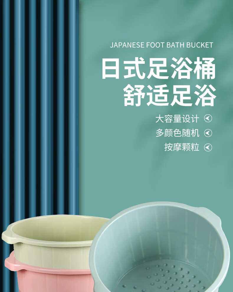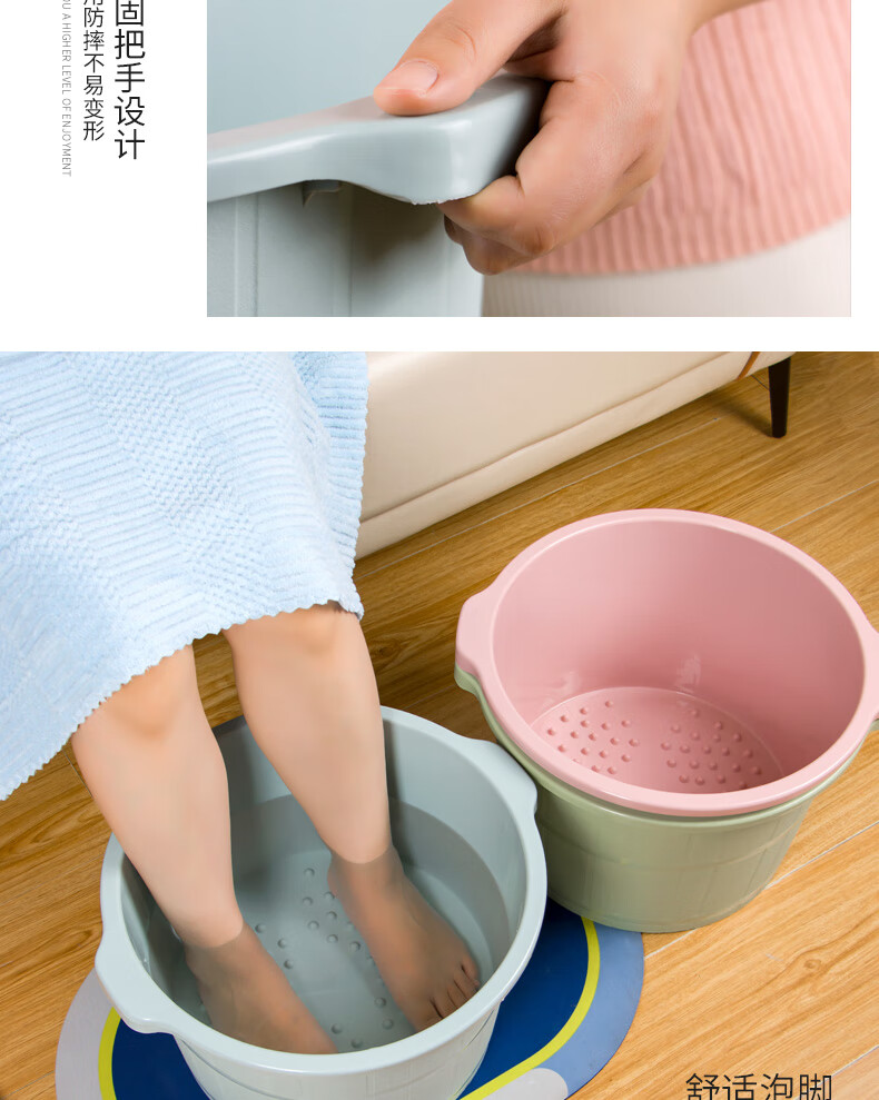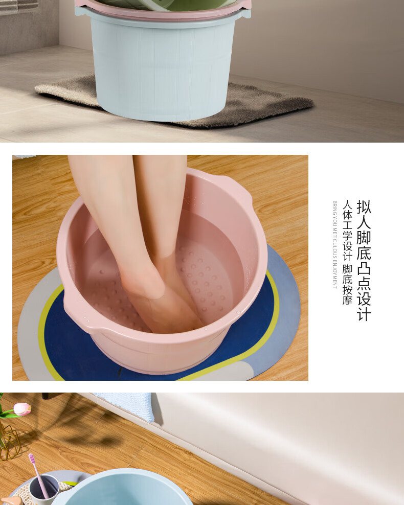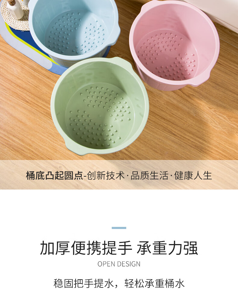 本迪加深泡脚桶24cm家用洗脚足浴盆塑料水桶按摩无电洗脚水桶单个粉色