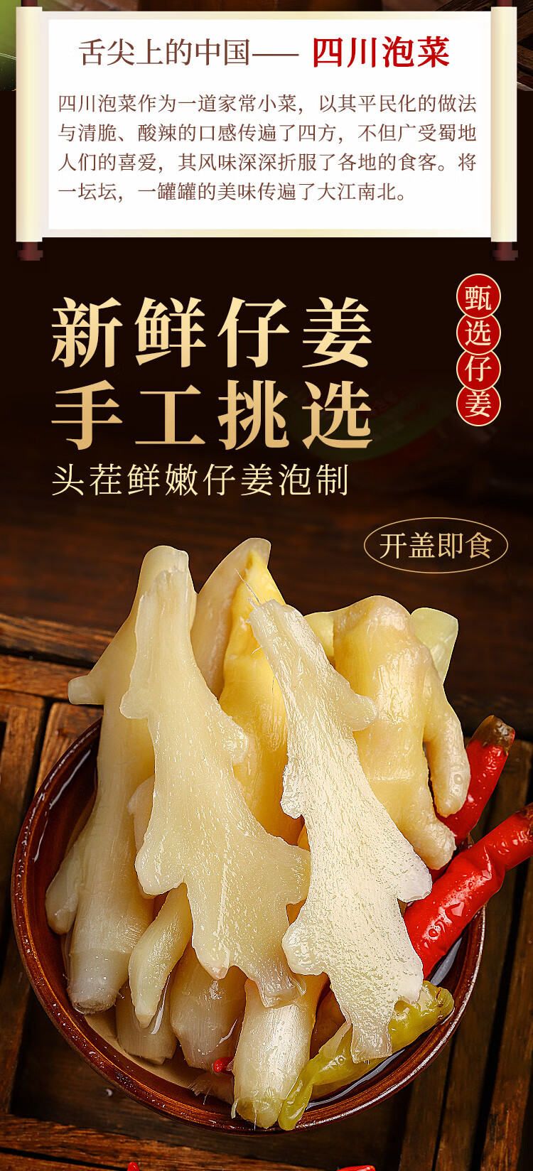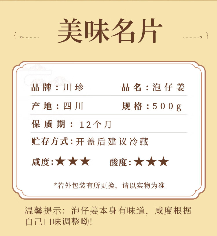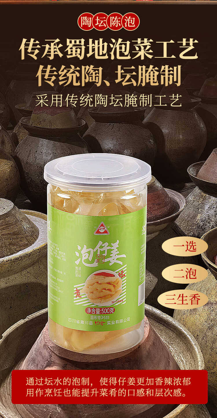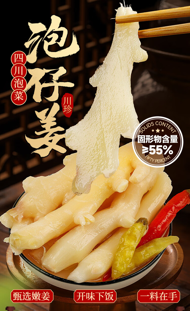 川珍 泡仔姜500g 四川泡菜泡姜芽嫩姜下饭菜咸配粥酱腌菜佐餐做菜