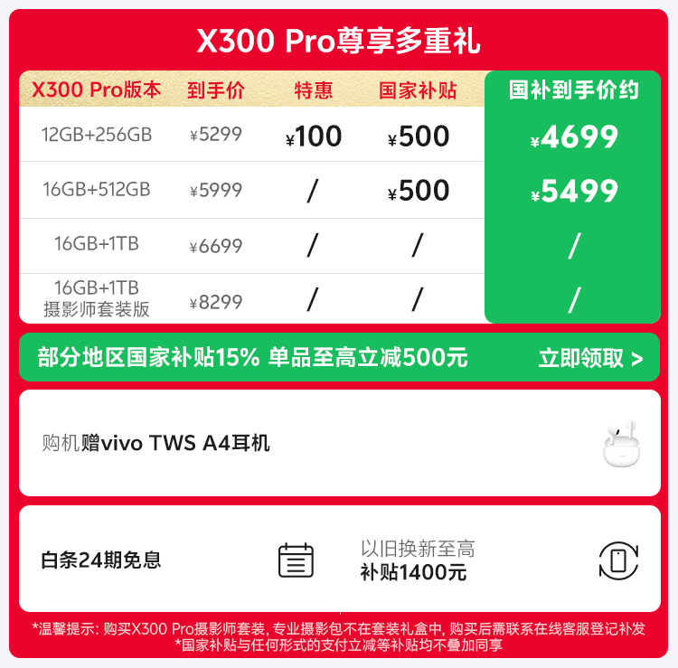 vivo X300 Pro 蔡司2亿APO超级长焦 蓝图自研影像双芯 5年持久流畅OriginOS 6 直屏拍照手机 新品 国补 简单白 16GB+512GB 官方标配