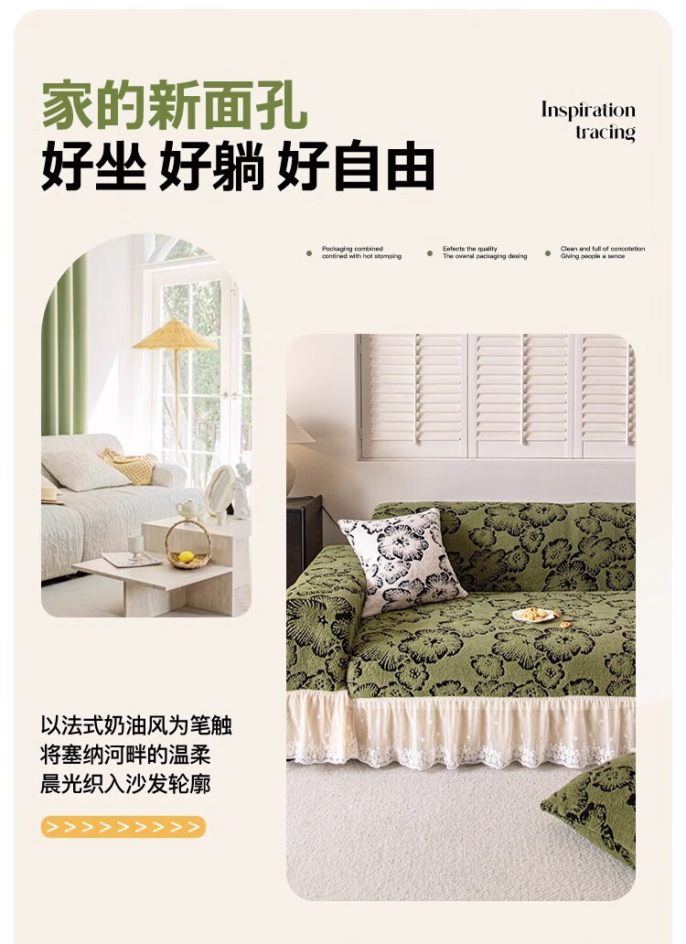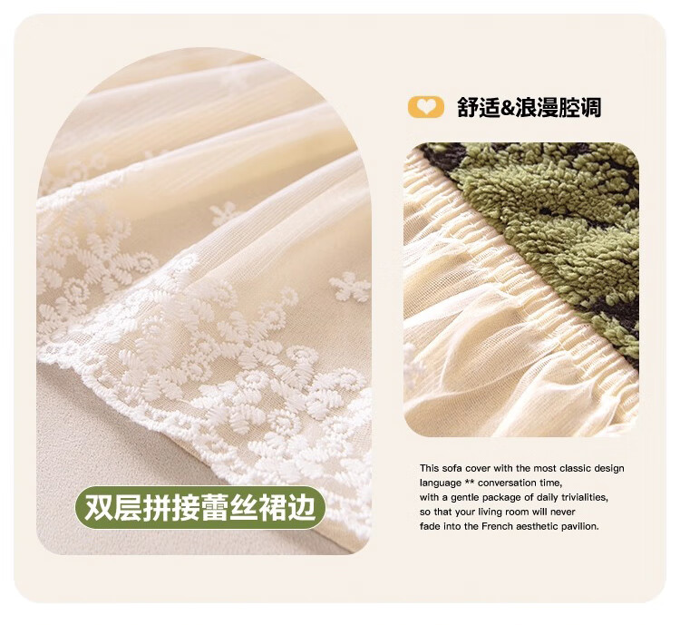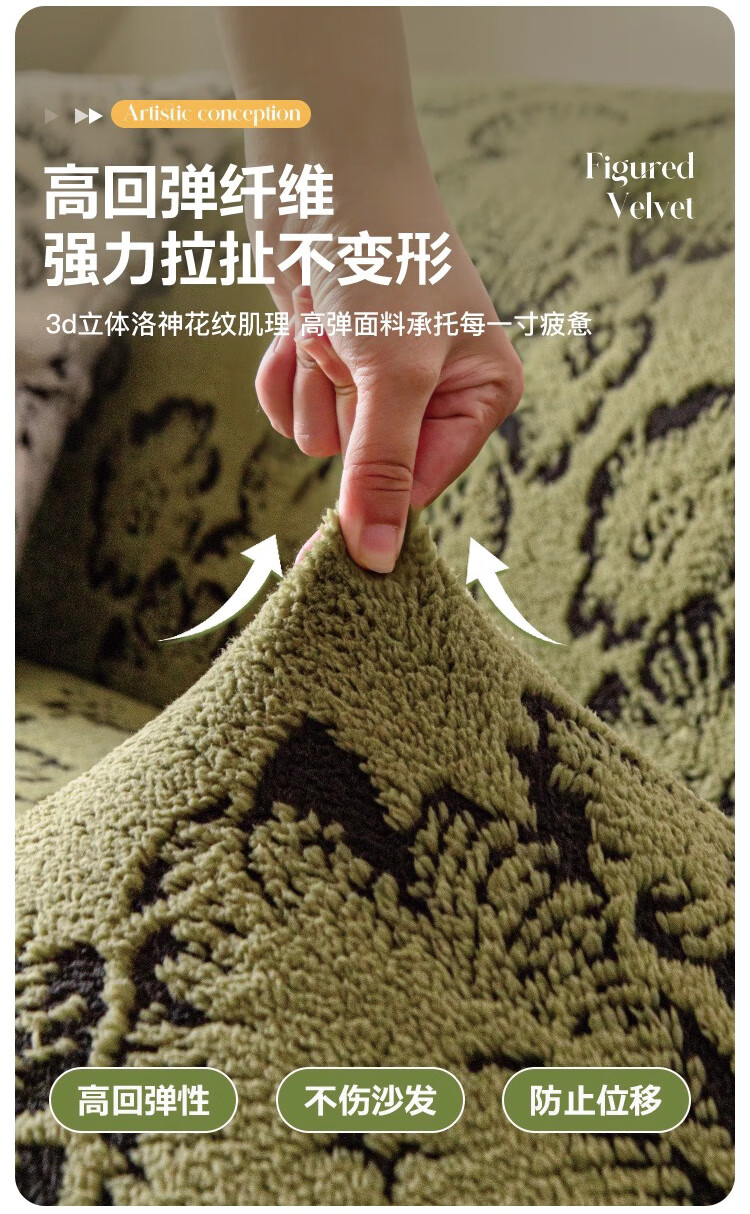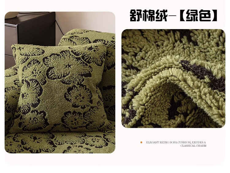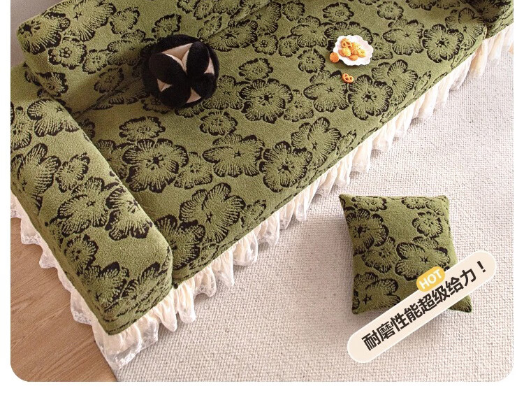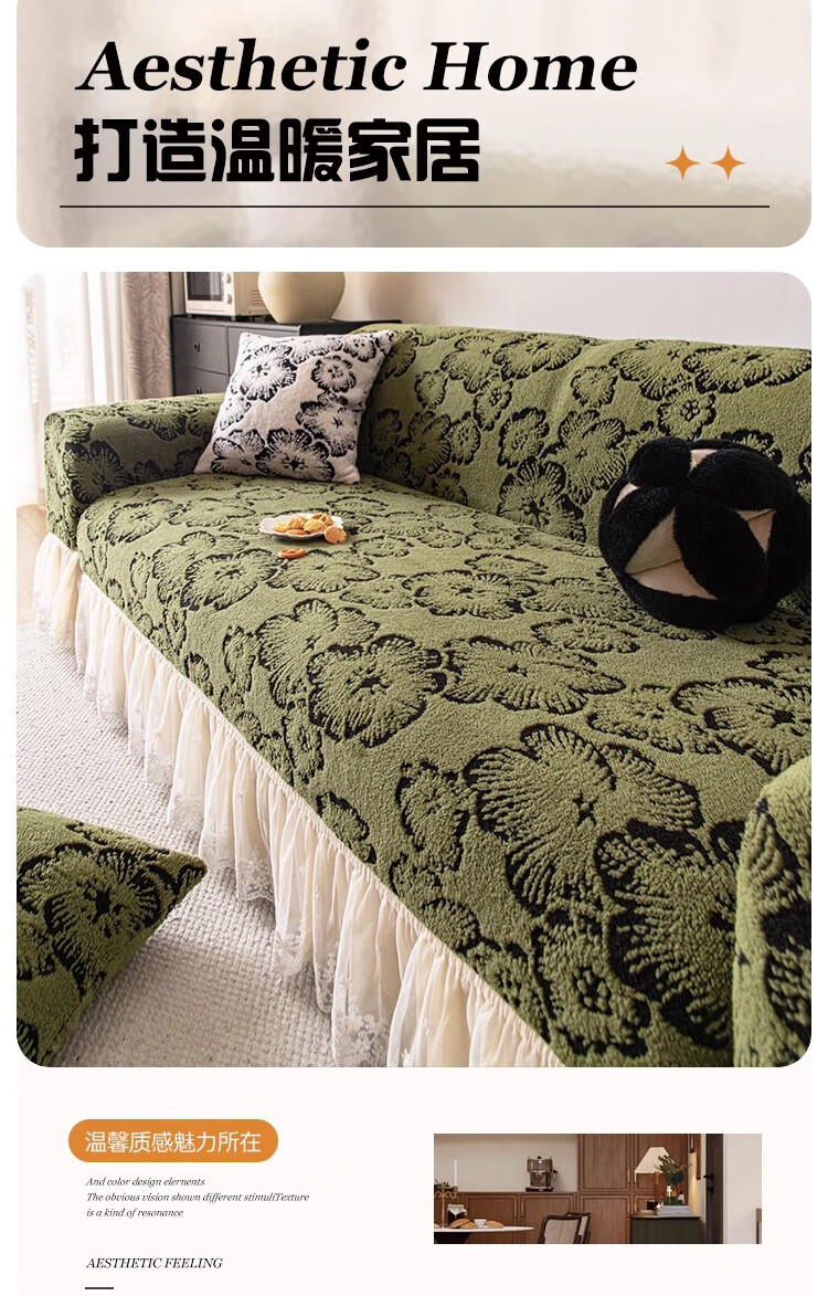 金拾美月复古轻奢沙发全包套秋冬季防猫抓2026新款加厚毛绒沙发坐垫盖布 墨织裙边-绿色 全包单人/适用90-140cm建议拍大一码