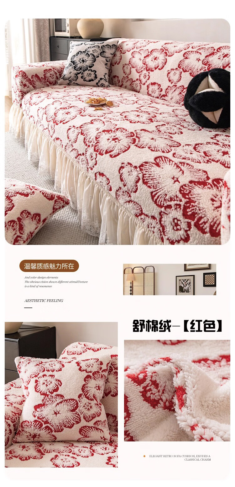 金拾美月四季通用雪尼尔喜庆沙发盖布巾结婚用红色全盖沙发套罩毯2026新款 拾光-红色 180cm*130cm (适用于单人位/脚踏)