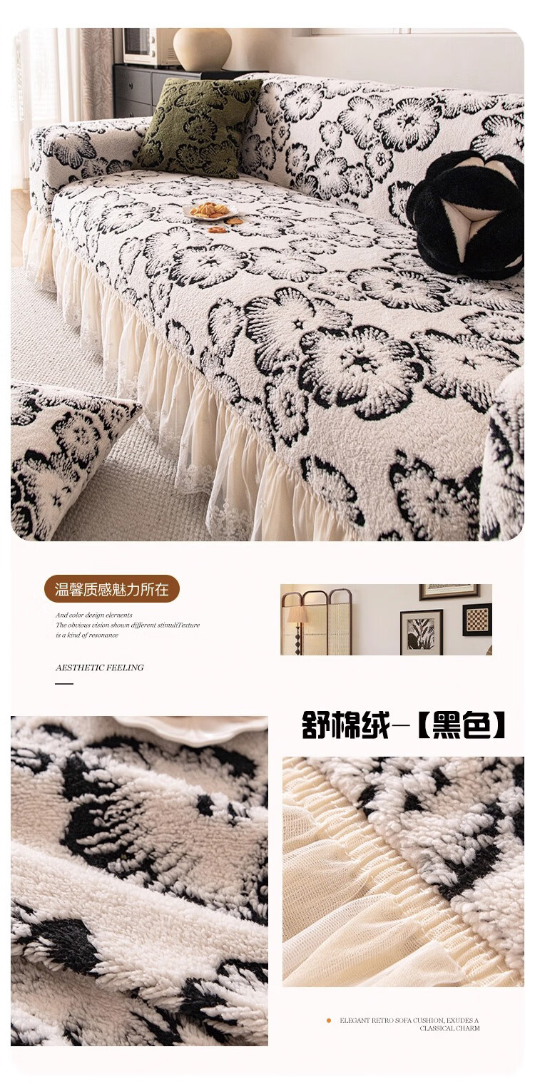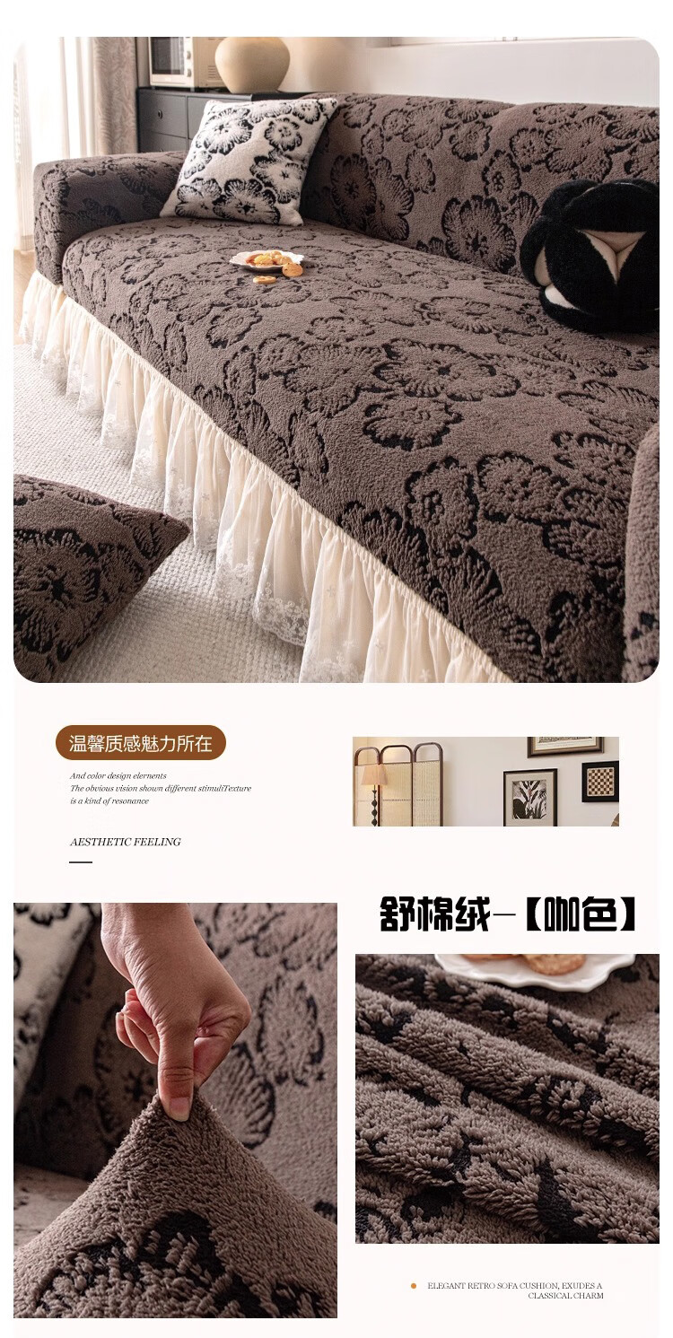 金拾美月半边绒沙发盖布巾冬2026新款沙发垫轻奢高级感简约现代防滑套罩 心愿沙发巾-黑棕 180cm*130cm (适用于单人位/脚踏)