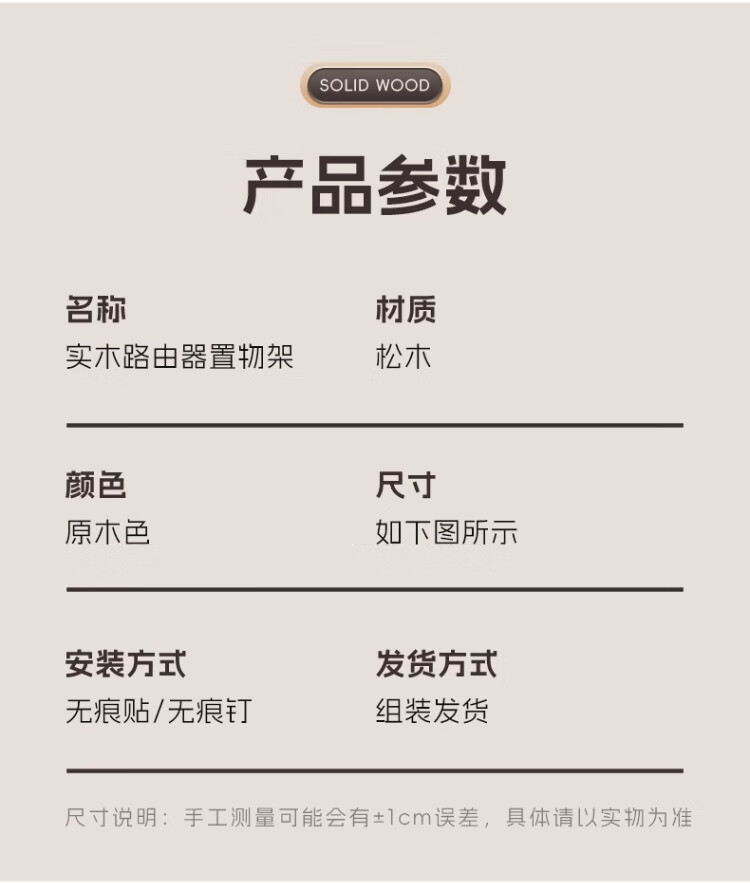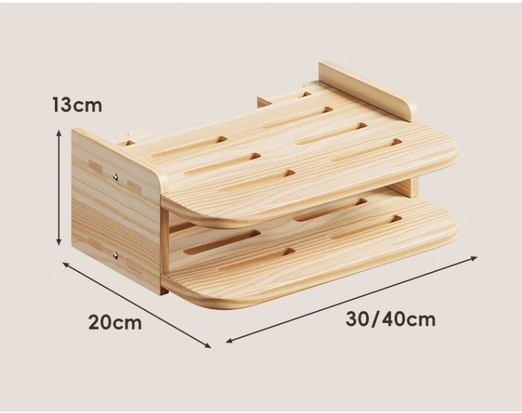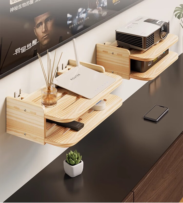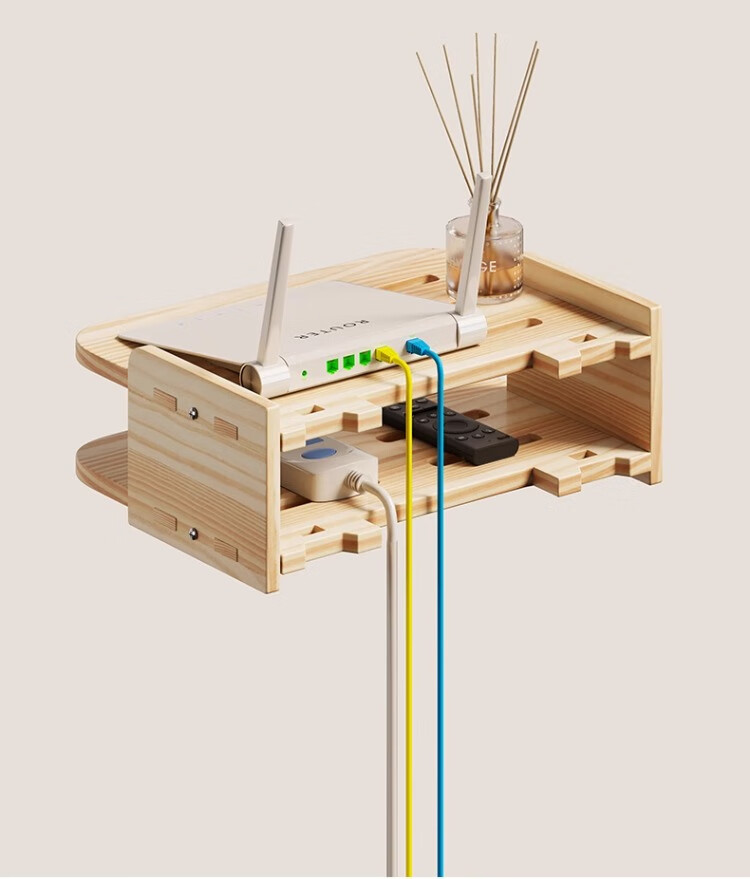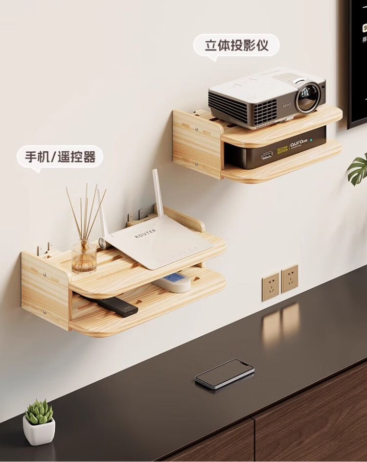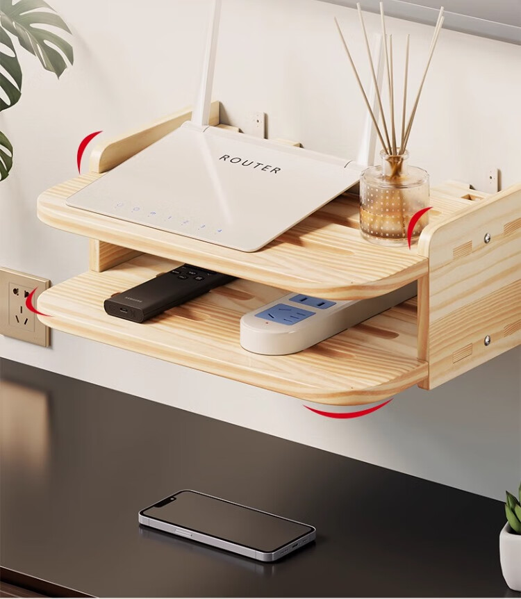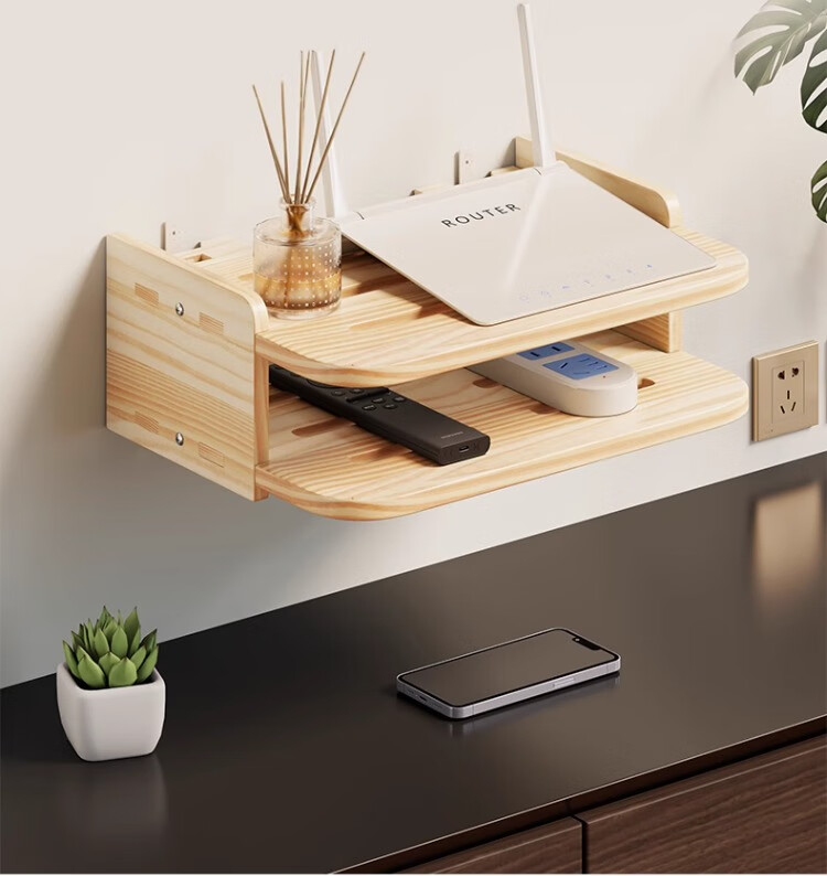 尔思家路由器放置架免打孔实木机顶盒置物架客厅墙面家用挂墙储物架子 原木色双层-中号【进口实木】