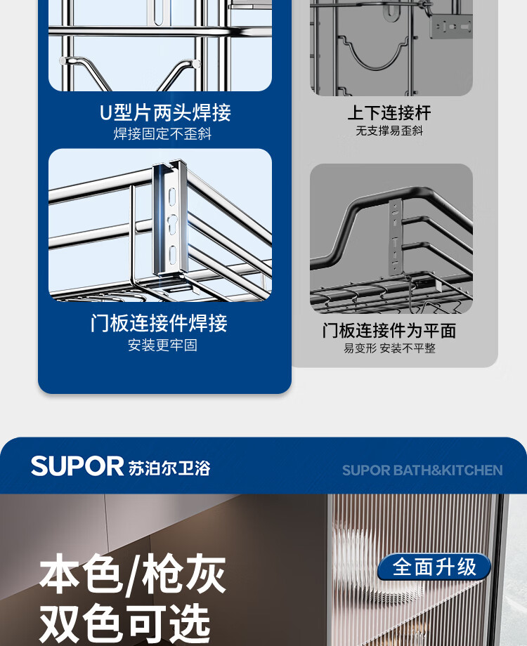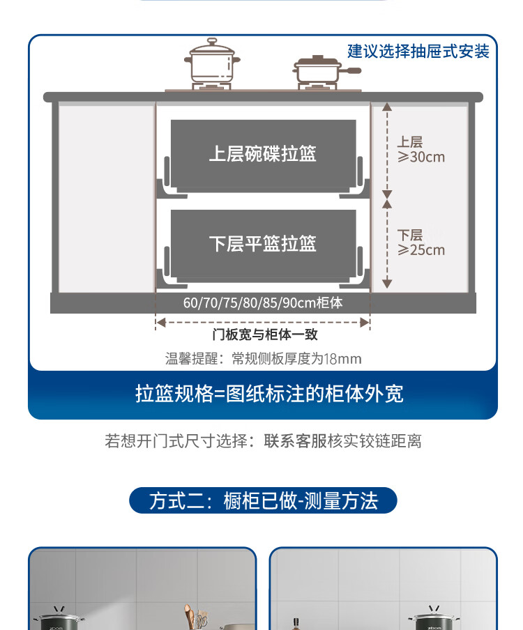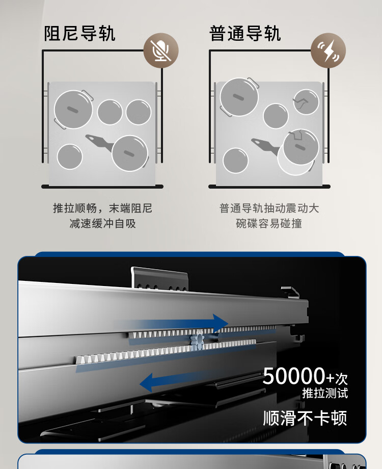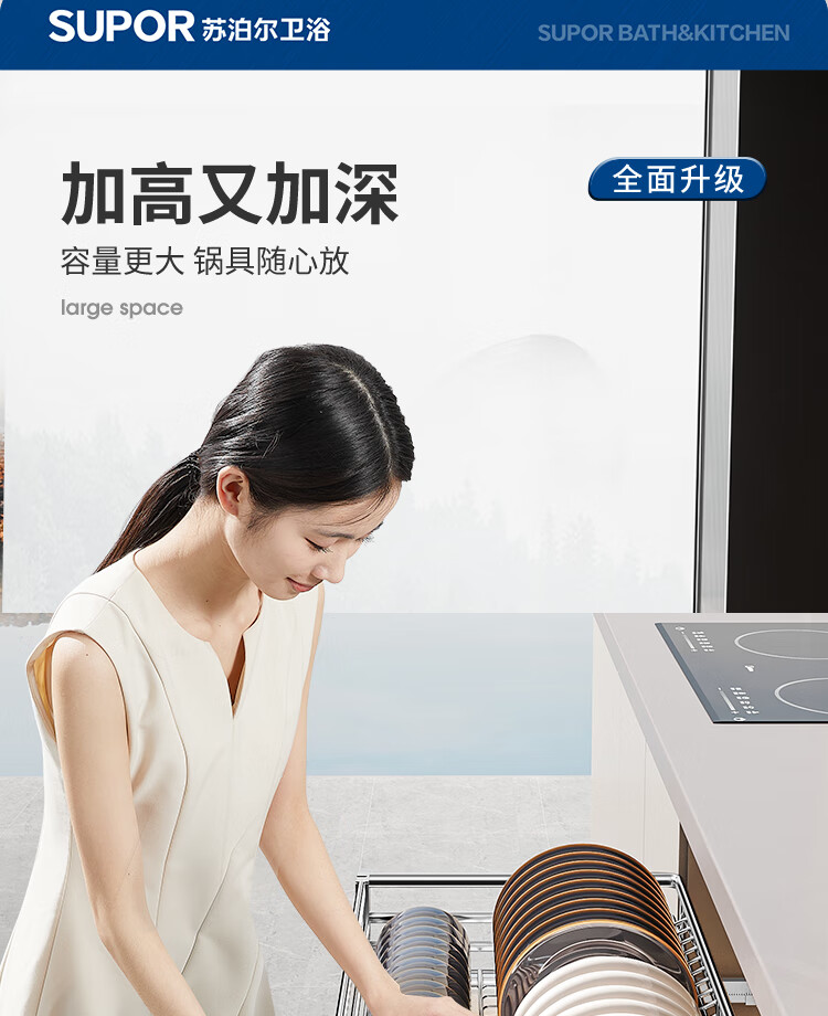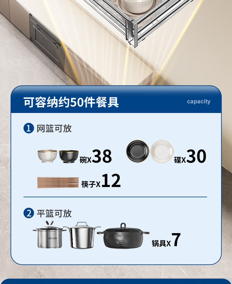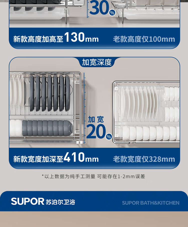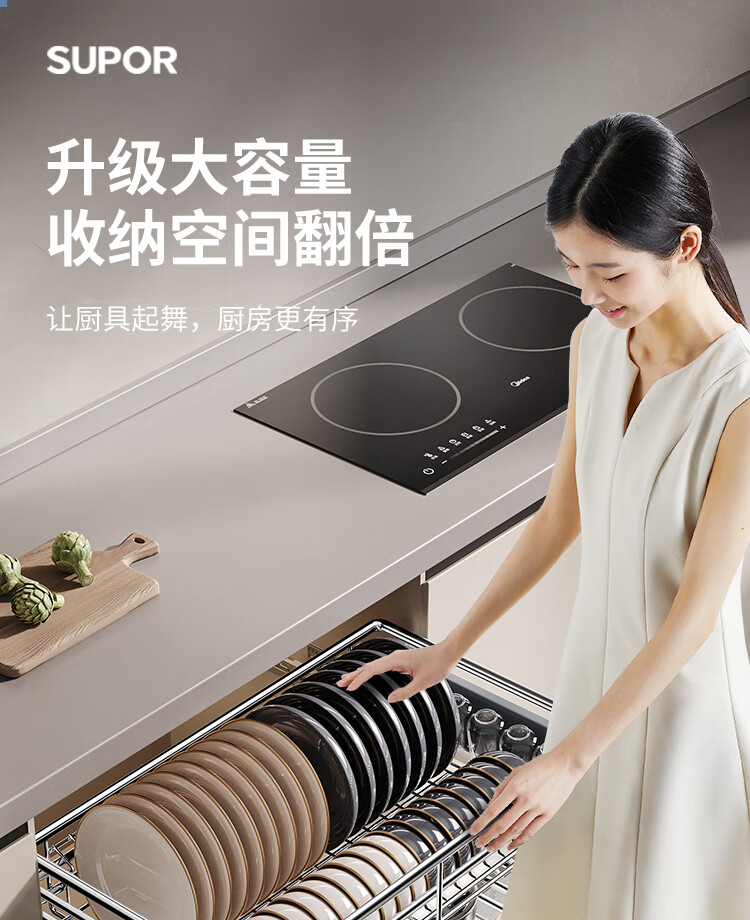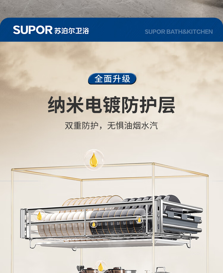 苏泊尔拉篮抽屉式厨房橱柜不锈钢碗碟置物架碗筷盘子收纳架碗篮收纳柜 【本色双层600柜】适用550-590mm