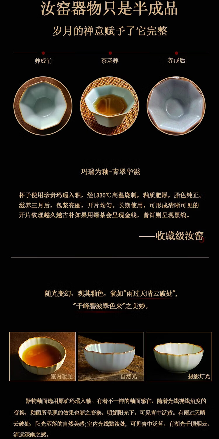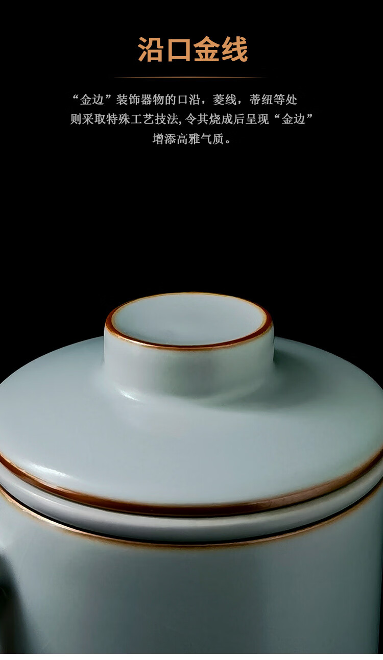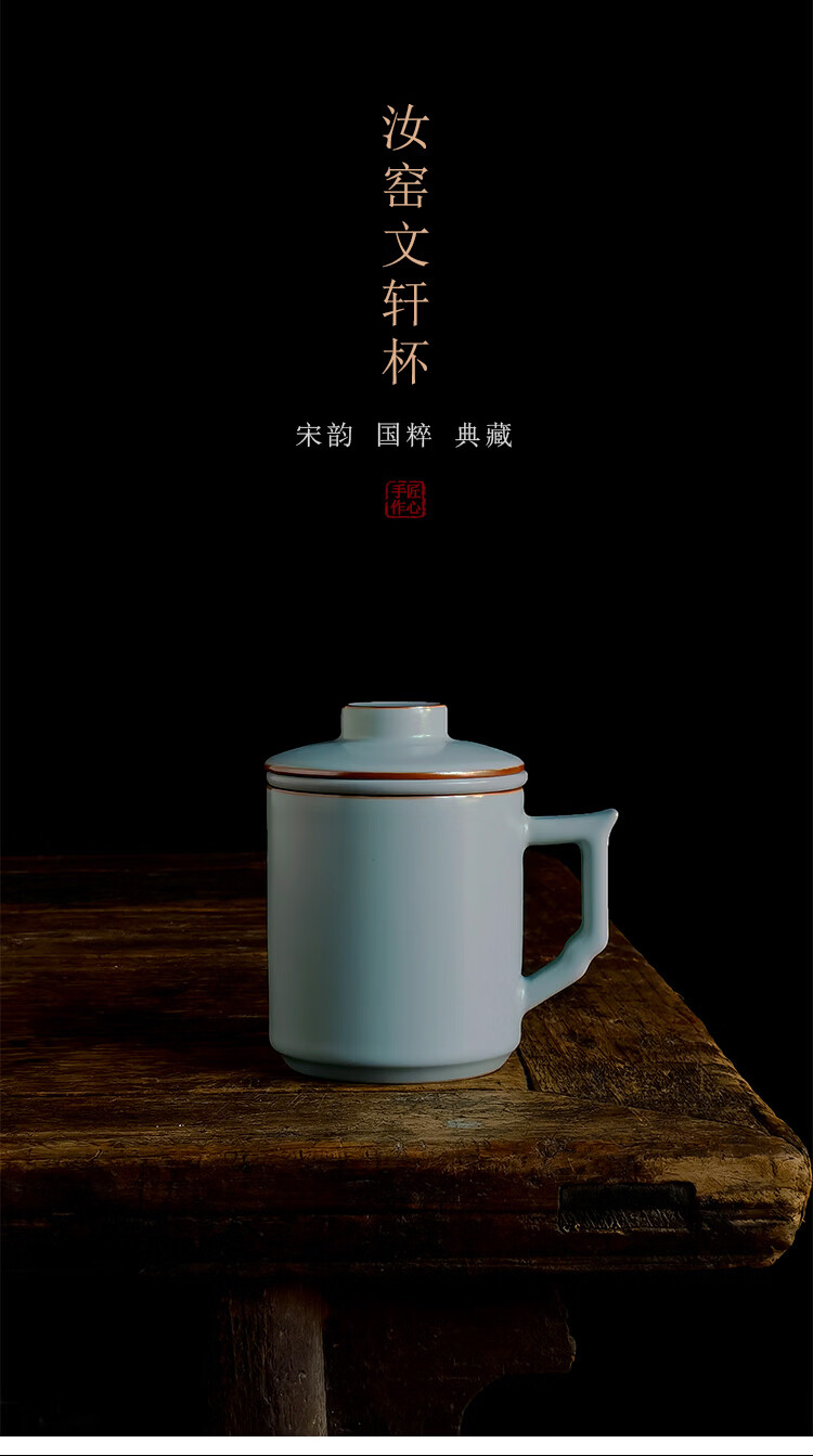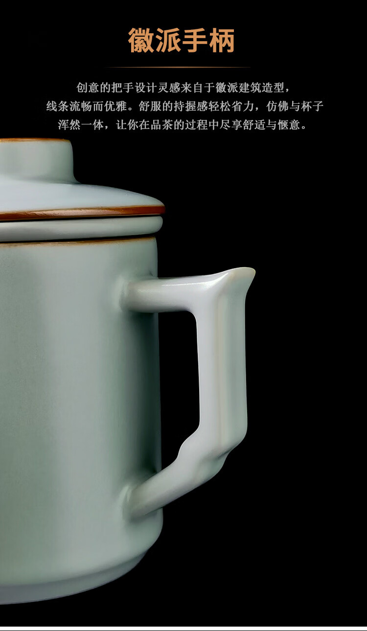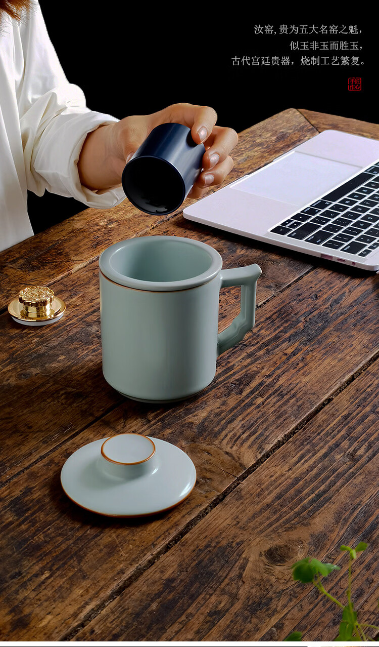 青禾窑汝窑马克杯开片可养陶瓷茶杯大容量带盖过滤茶水分离杯家用办公杯 天青汝窑文轩杯(395ml 安全包装)