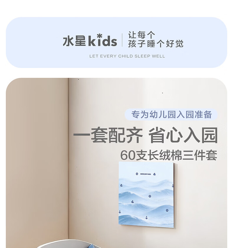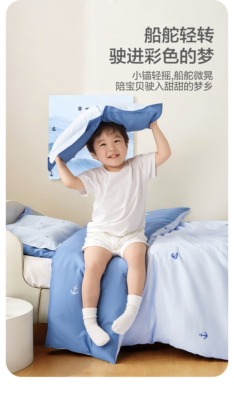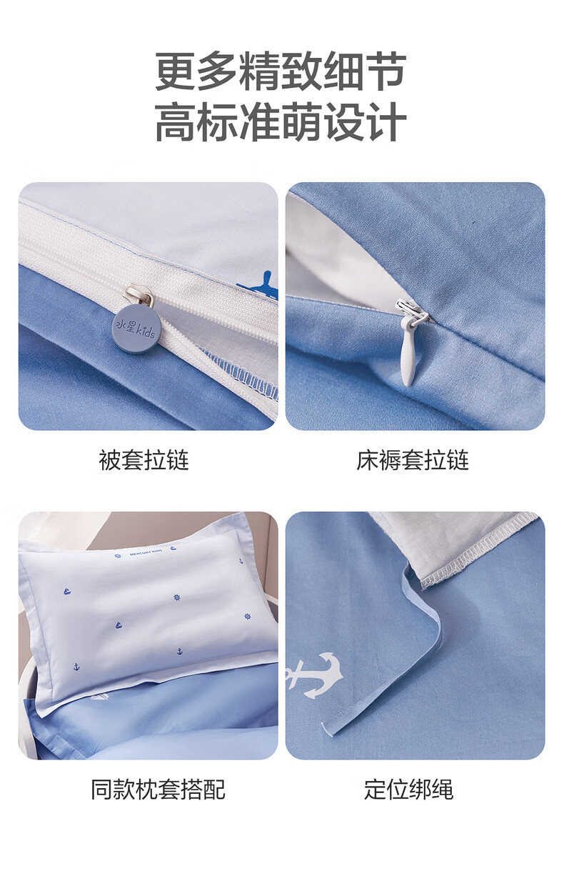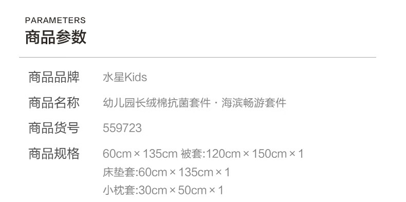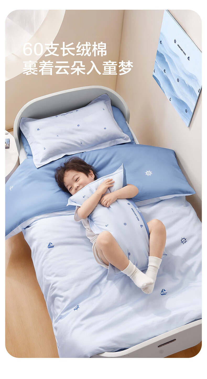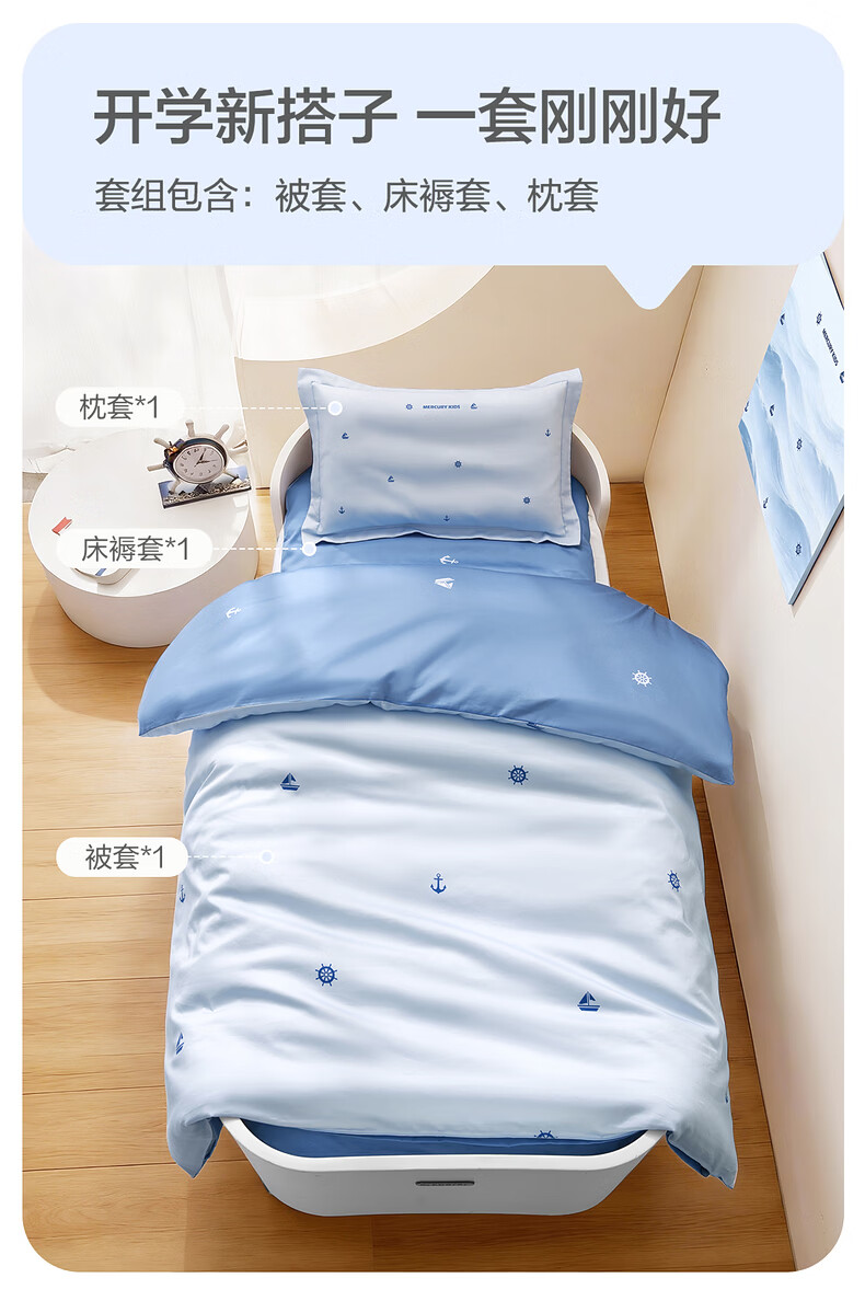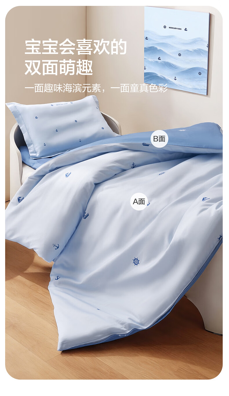 水星家纺幼儿园长绒棉抗菌套件·海滨畅游套件 幼儿园长绒棉抗菌套件·海滨畅游 床笠款 (被套120*150cm)