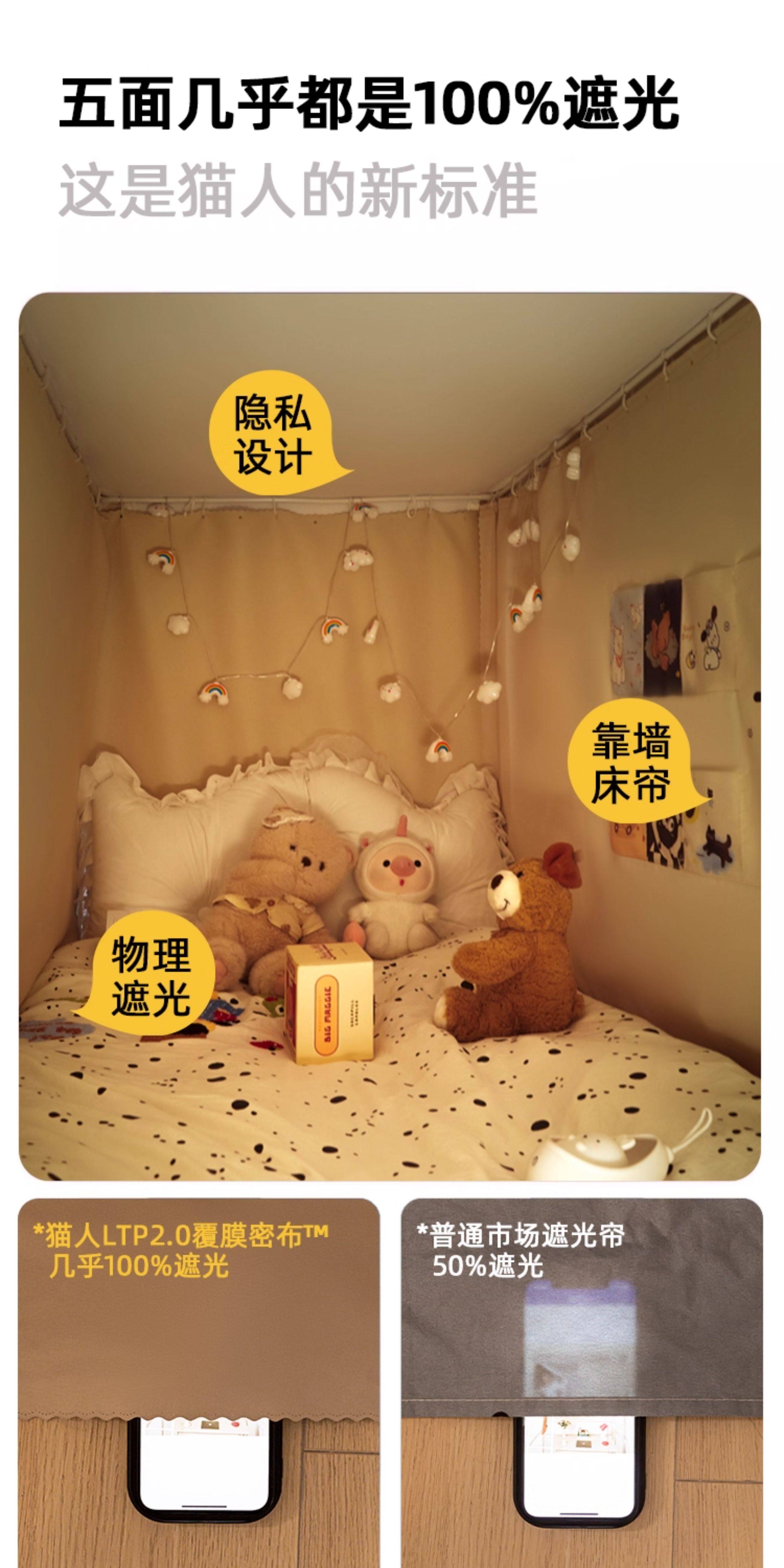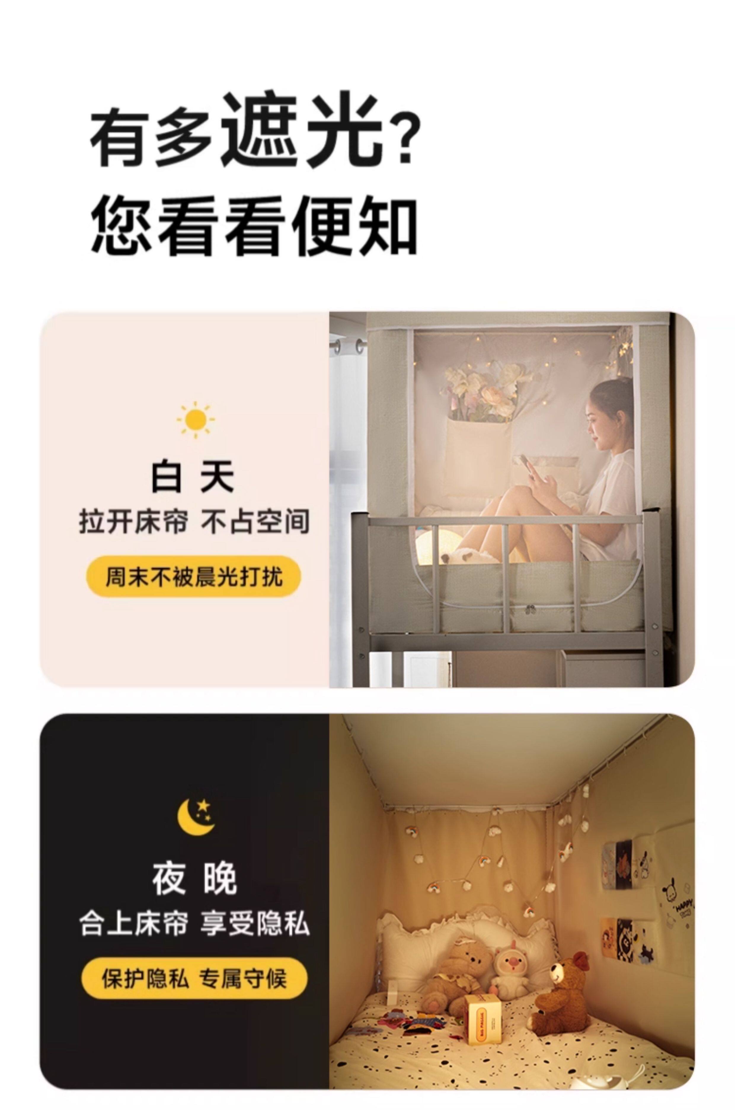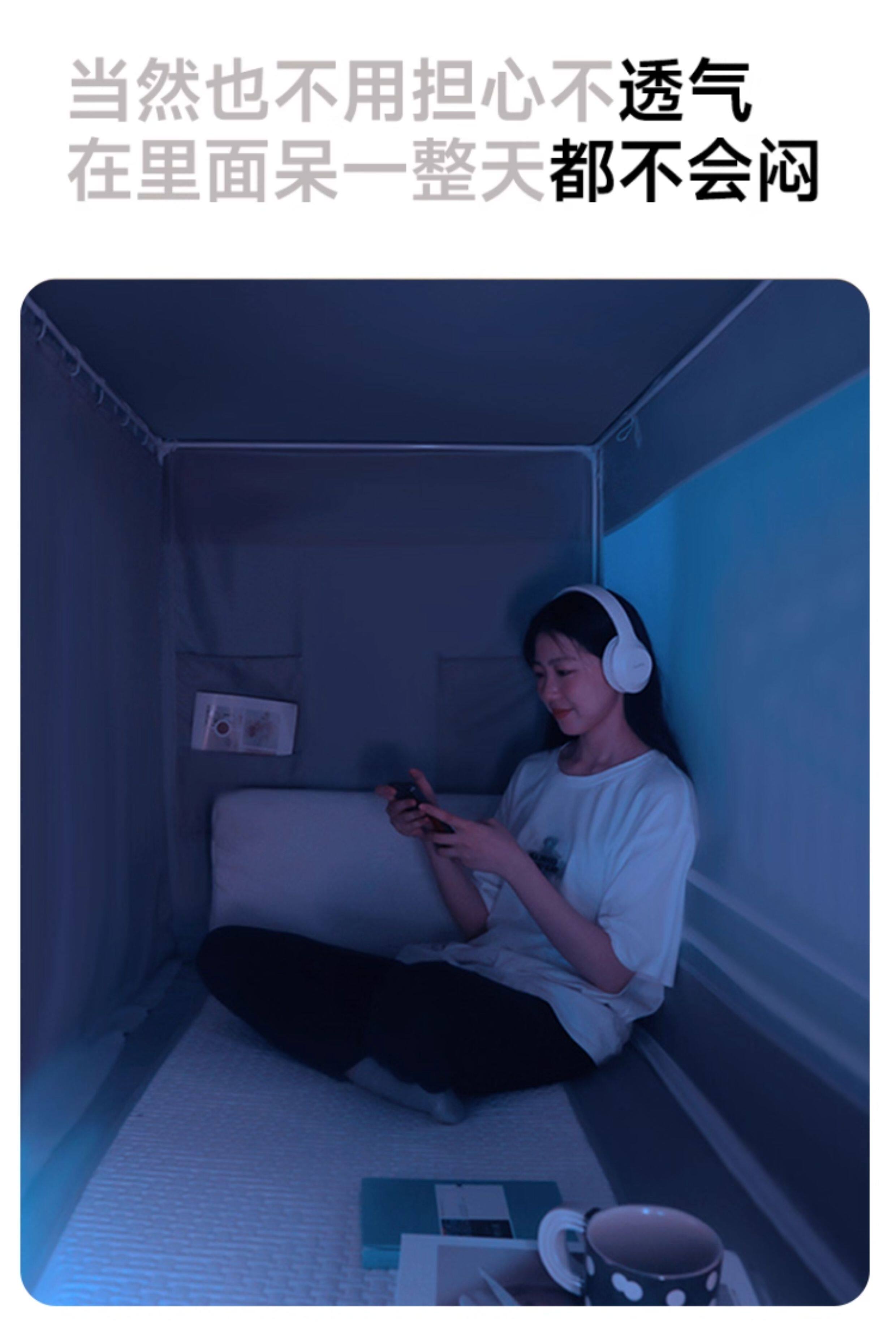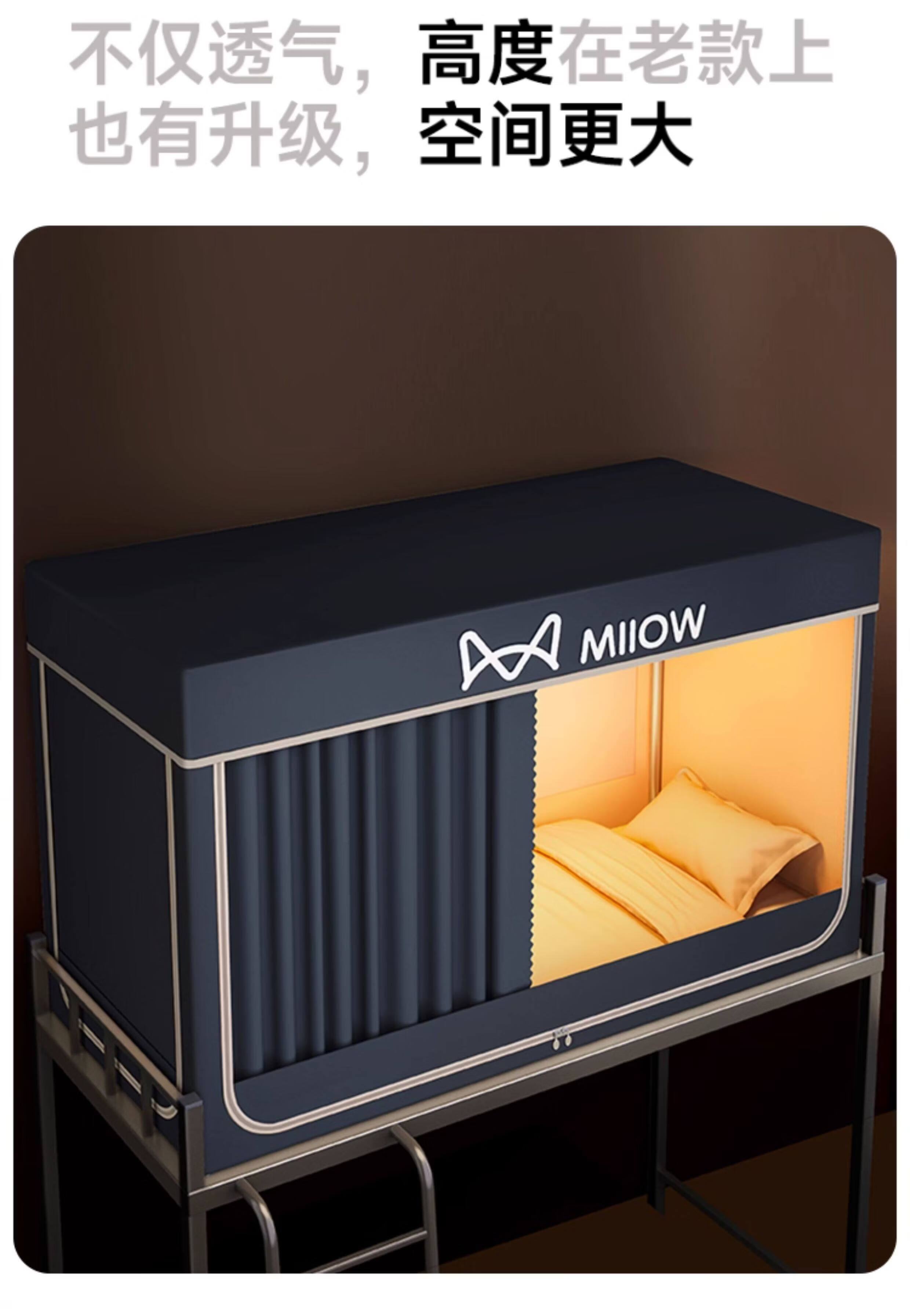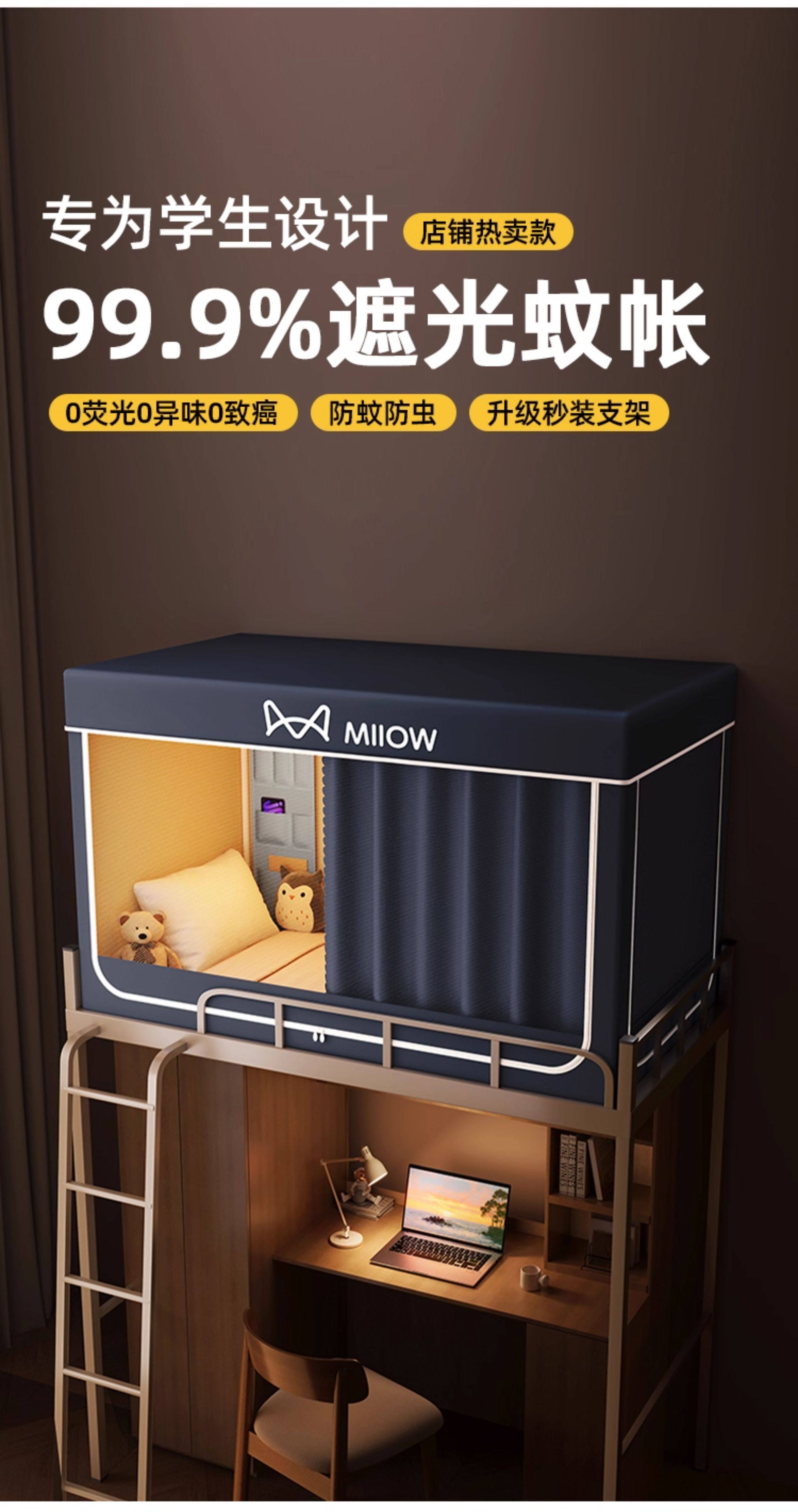 猫人(MiiOW)学生宿舍床帘上铺强遮光帘子蚊帐0.9x1.9米专用全封闭一体免安装 【MIIOW淡雅灰】五面遮光 无涂层 含收纳袋 0.9m床下铺-90x190x90cm【烤漆支架】