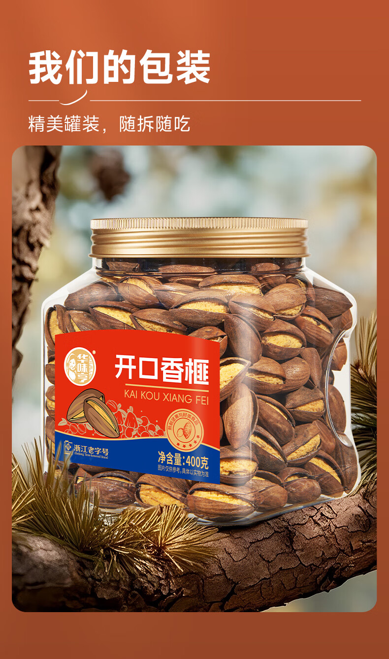 华味亨开口香榧400g/罐嵊州诸暨特产大颗粒易剥坚果炒货零食年货送礼