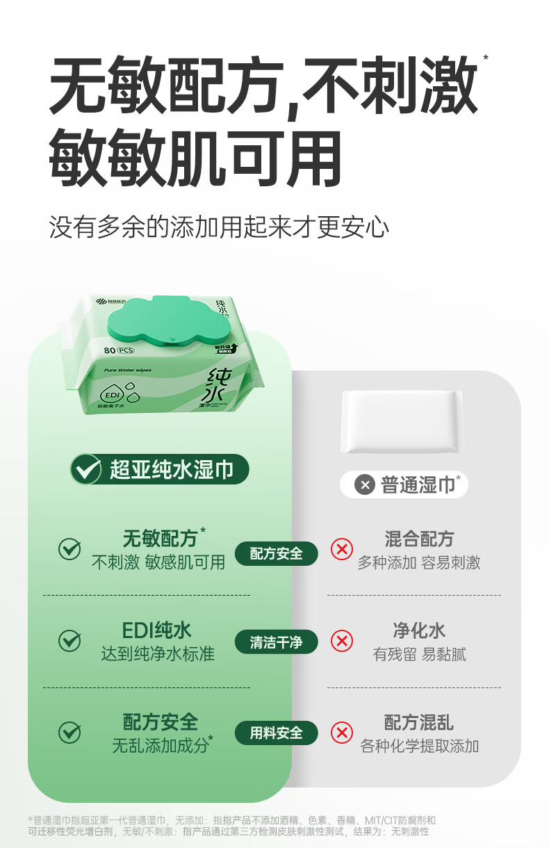 超亚孕产妇EDI纯水护理湿巾纸巾加厚加大擦脸擦手产后护理清洁湿巾 森氧系列 【热卖装】 80抽 3包