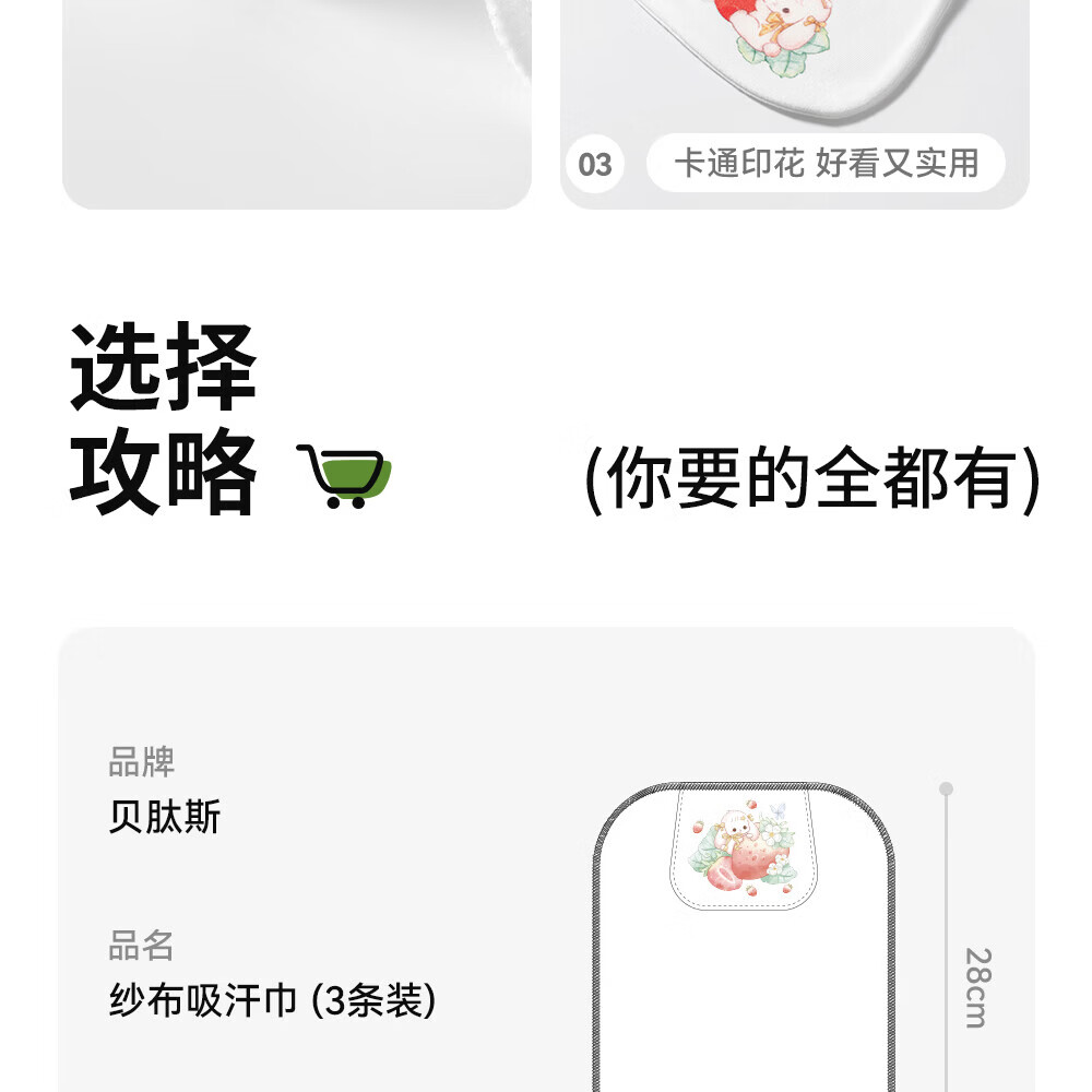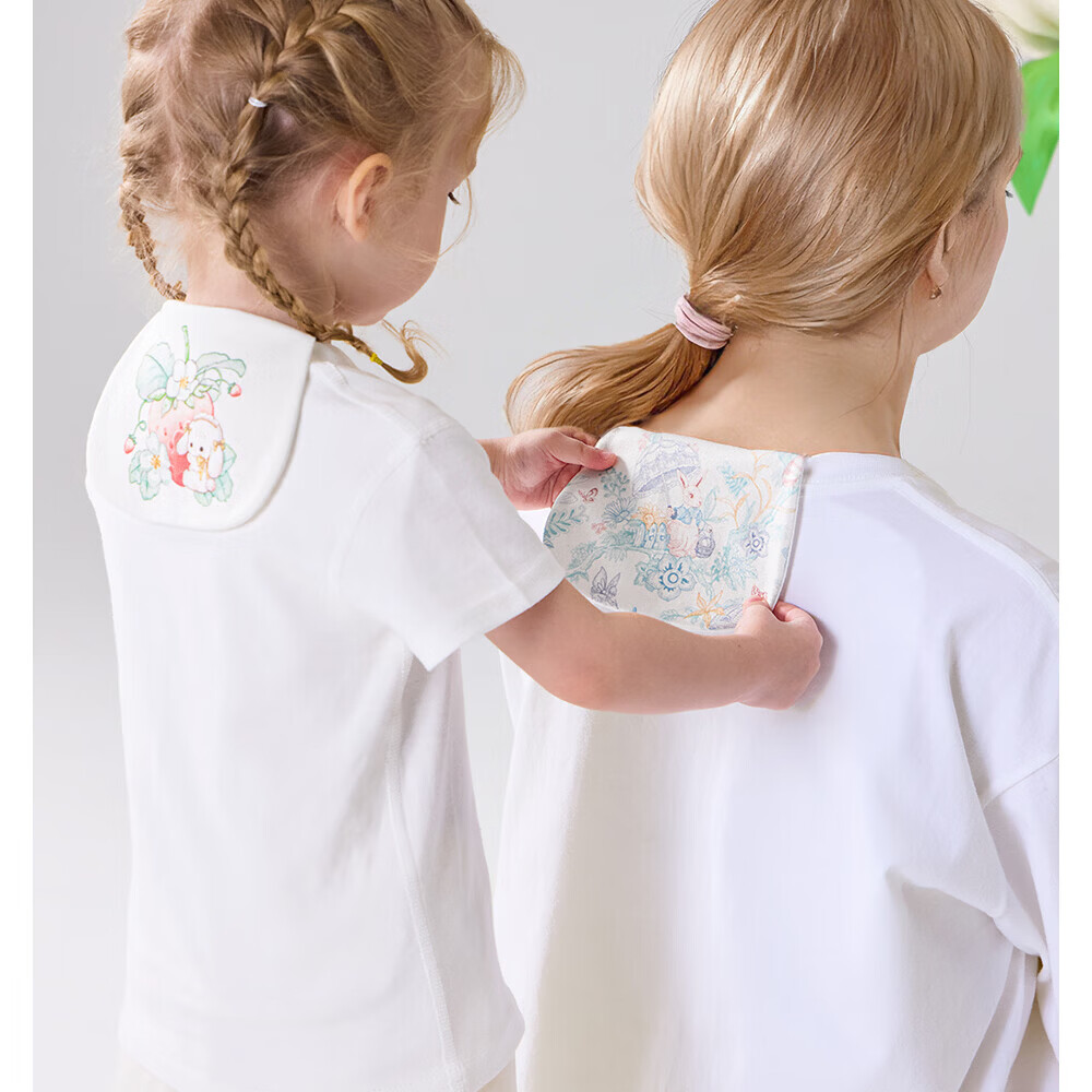 贝肽斯隔汗巾儿童3-6岁纯棉A类大号吸汗巾宝宝幼儿园透气垫背 莓莓小兔 3条装 动物 【轻薄4层 10A抗菌】 M码【34*24cm】建议2-6岁