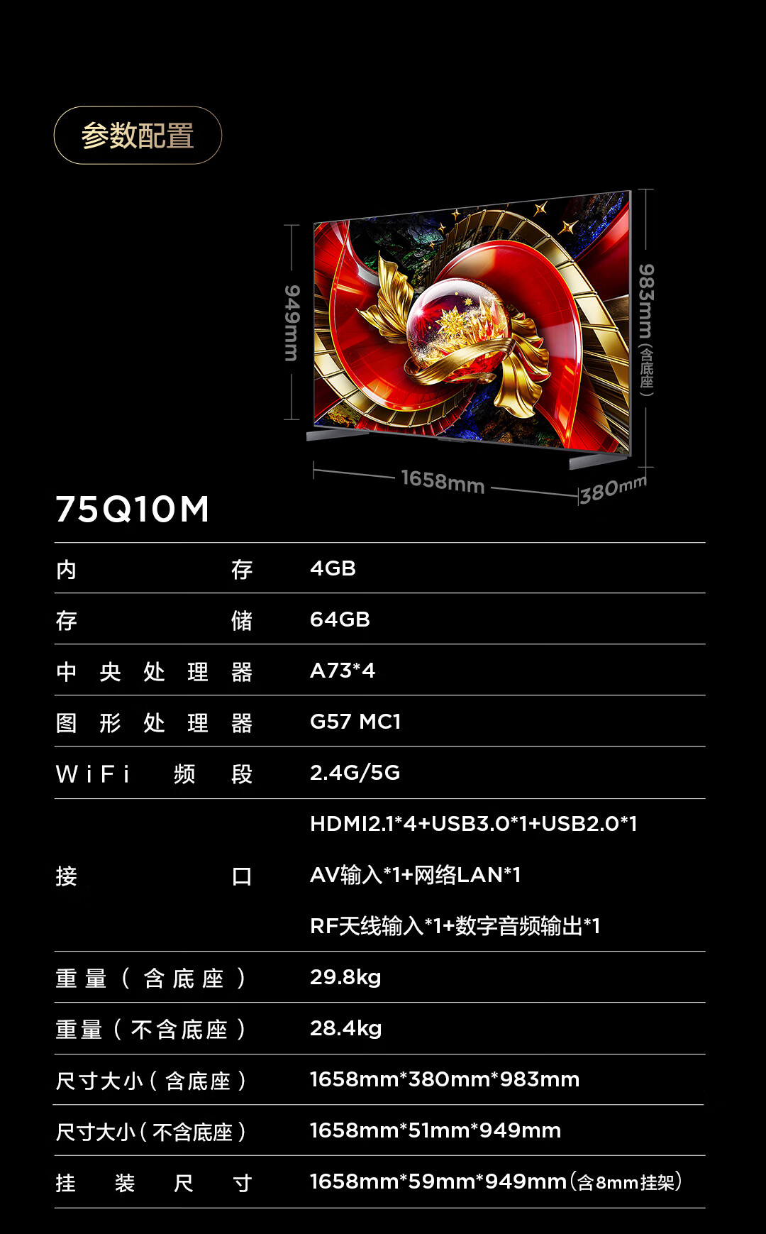TCL电视 75Q10M 75英寸 SQD-Mini LED 100%全局高色域 超级蝶翼华曜屏 万象分区 护眼