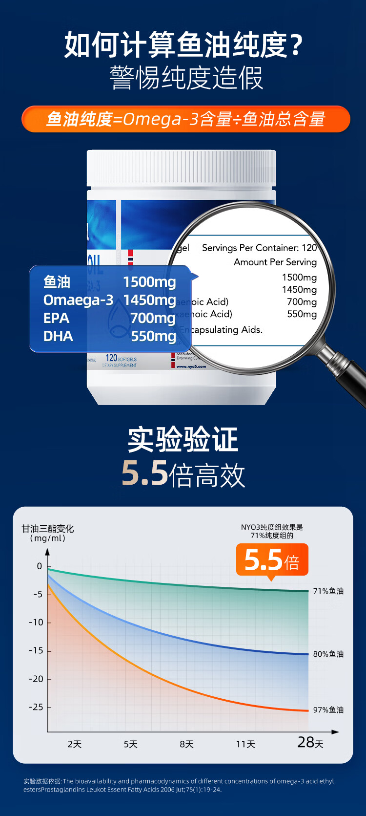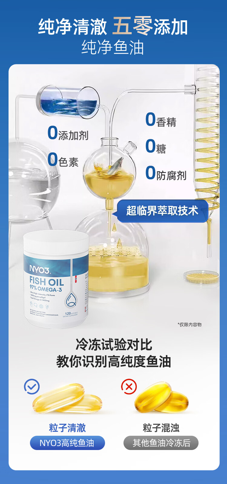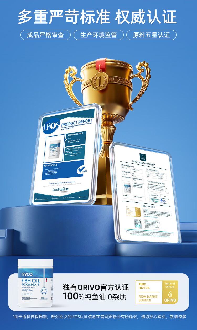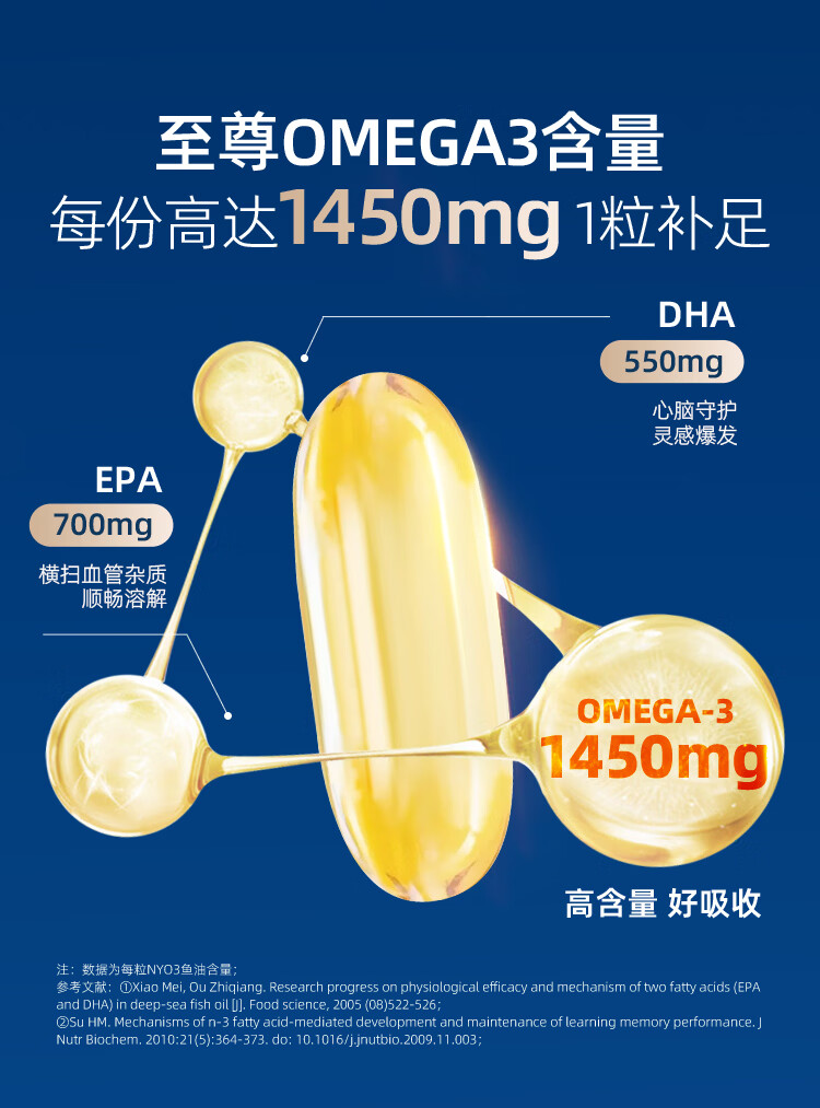 NYO3 97%高纯度rTG结构深海鱼油胶囊 1450mgOmega-3 EPA+DHA 120粒/瓶