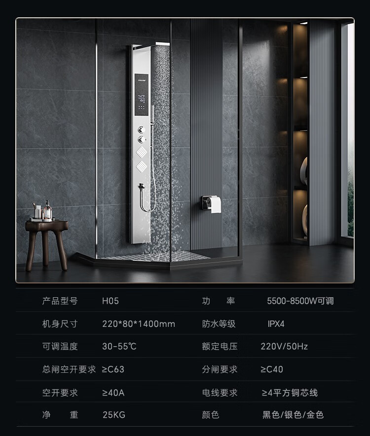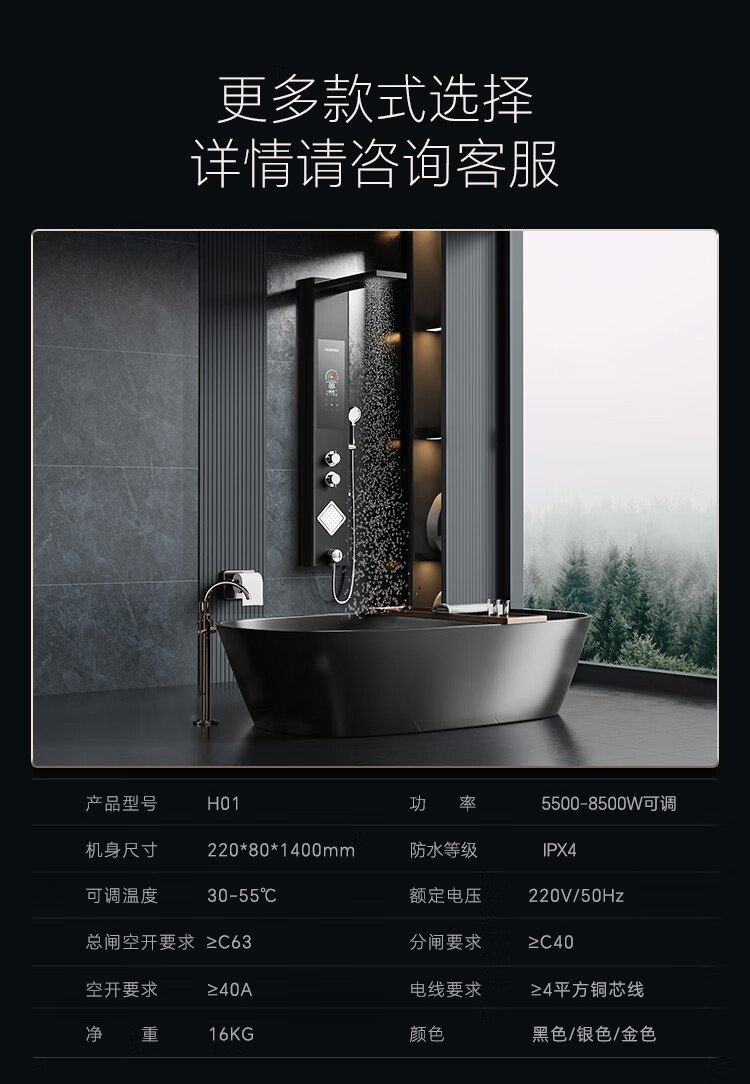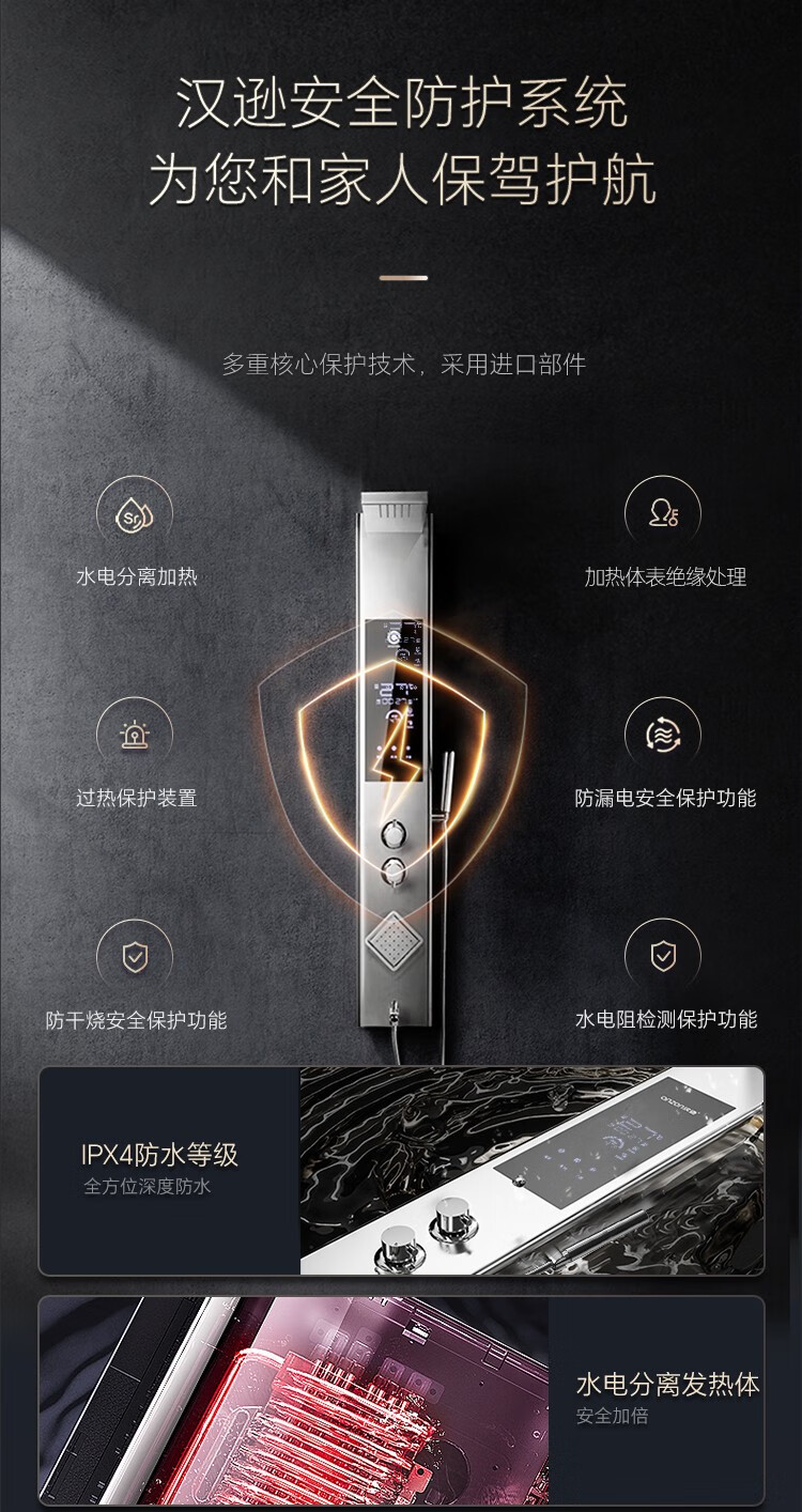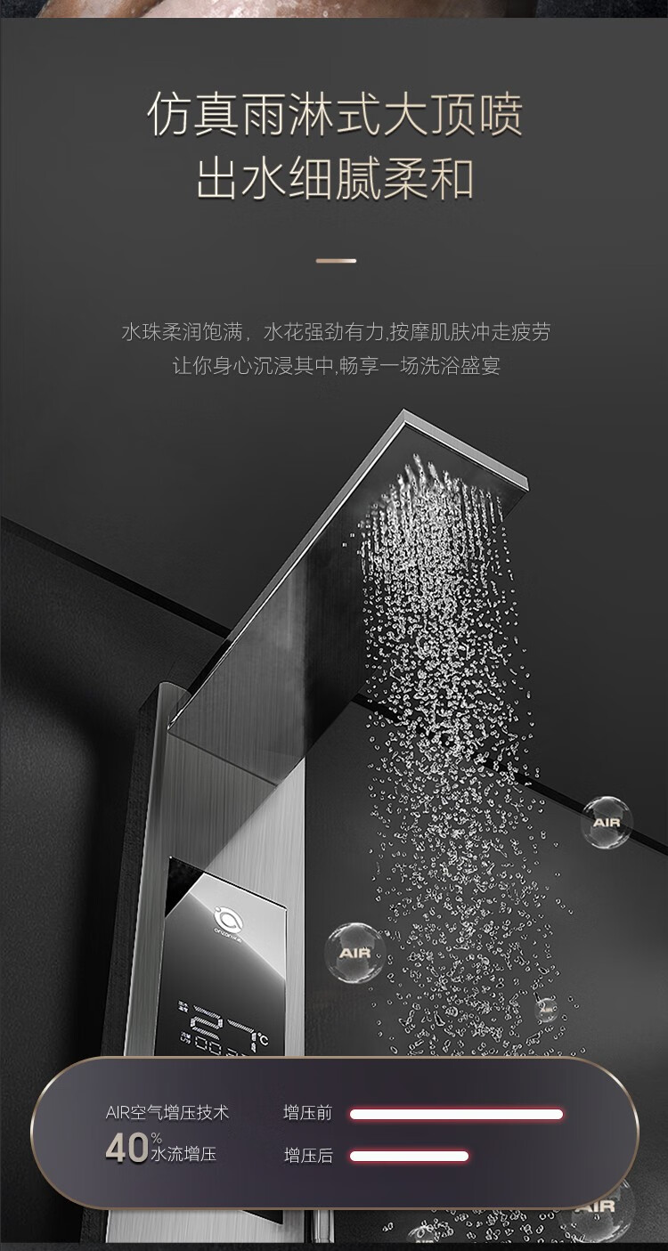 汉逊 集成热水器家用即热式淋浴屏别墅酒店卫生间速热洗澡沐浴机智能恒温省电HX-01 8500W 【黑色2.1米】增压五种出水+四重过滤