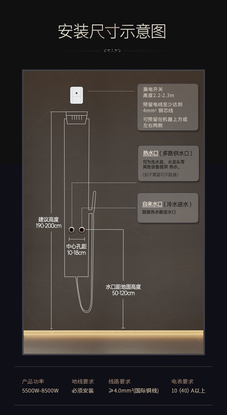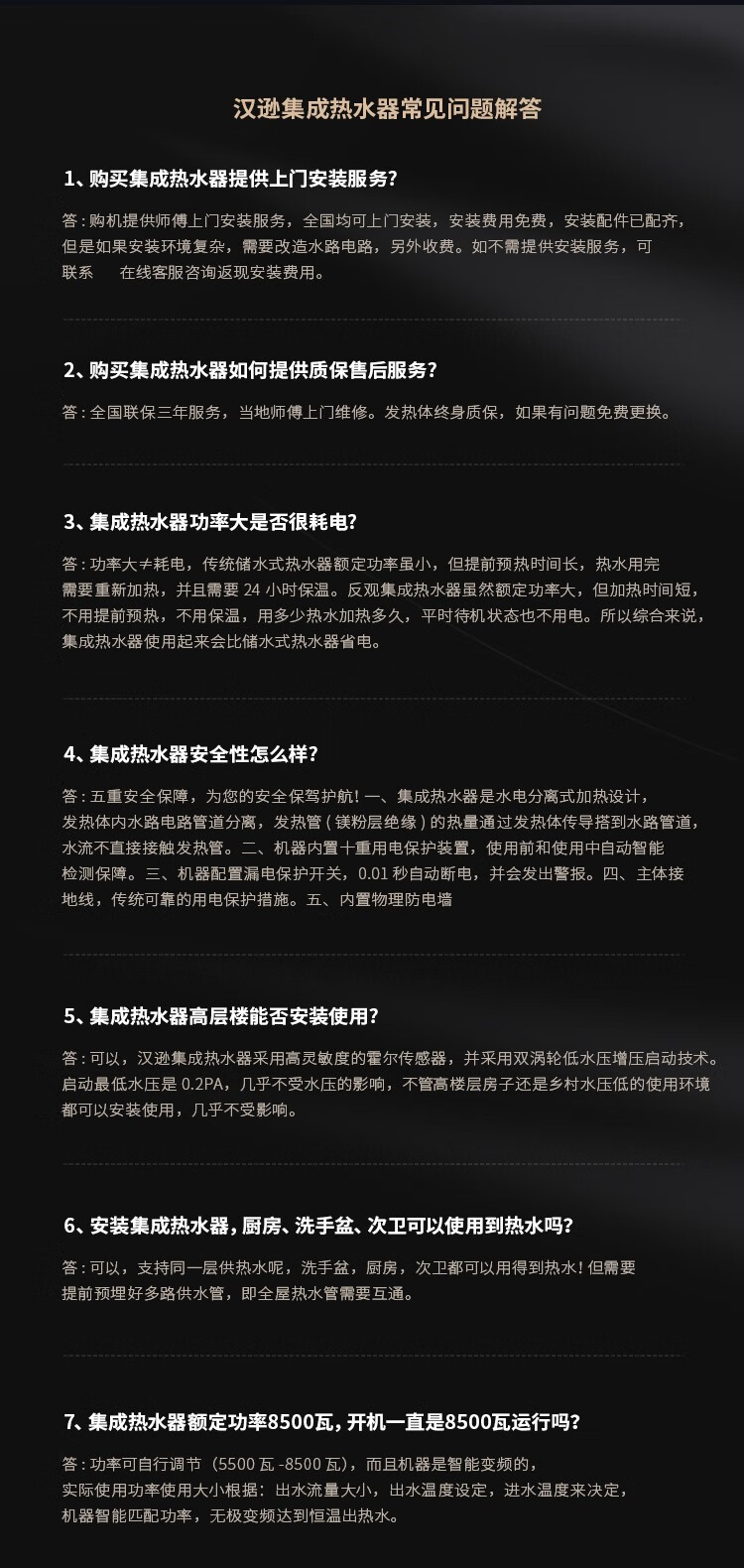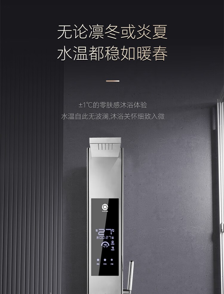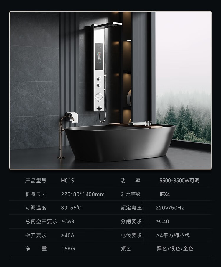 汉逊 集成热水器家用即热式淋浴屏别墅酒店卫生间速热洗澡沐浴机智能恒温省电HX-01 8500W 【黑色2.1米】增压五种出水+四重过滤