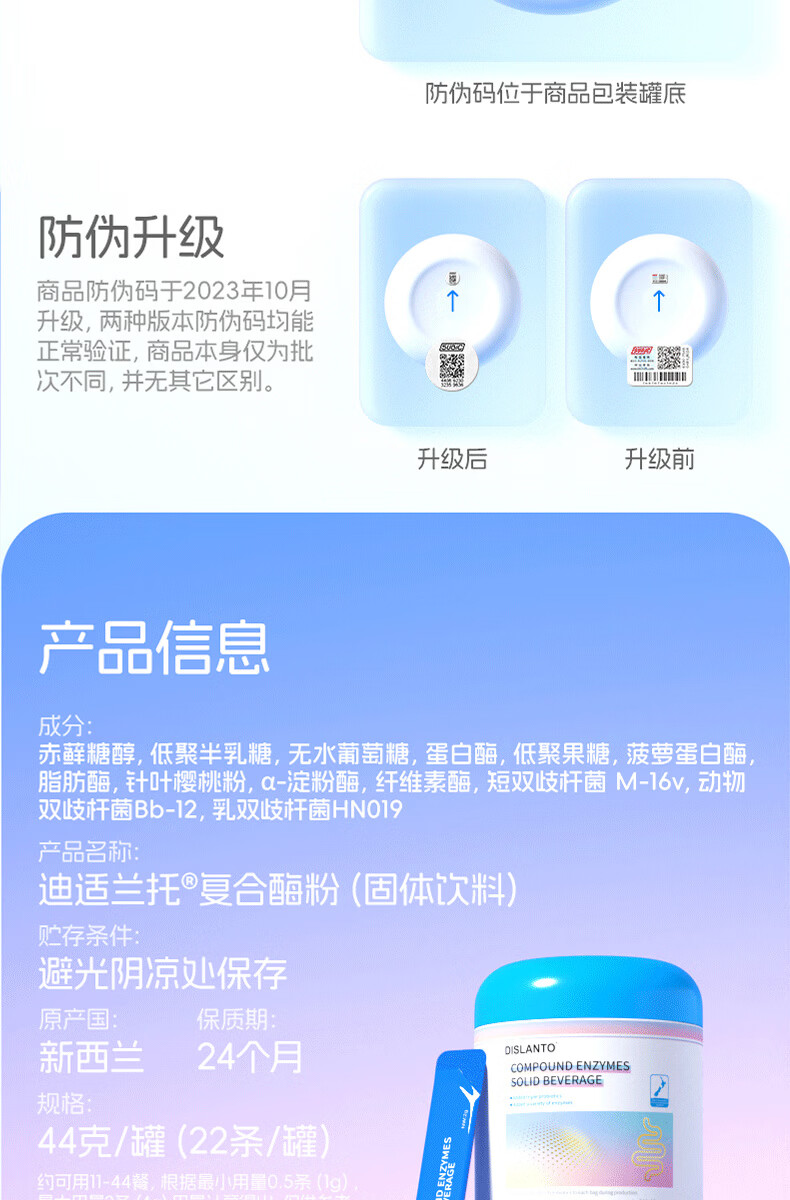 迪适兰托消化酶2g*22条0-3-6-12月宝宝1-3岁儿童bb12益生菌m16v新西兰进口 【新西兰进口】复合消化酶 44g*1罐