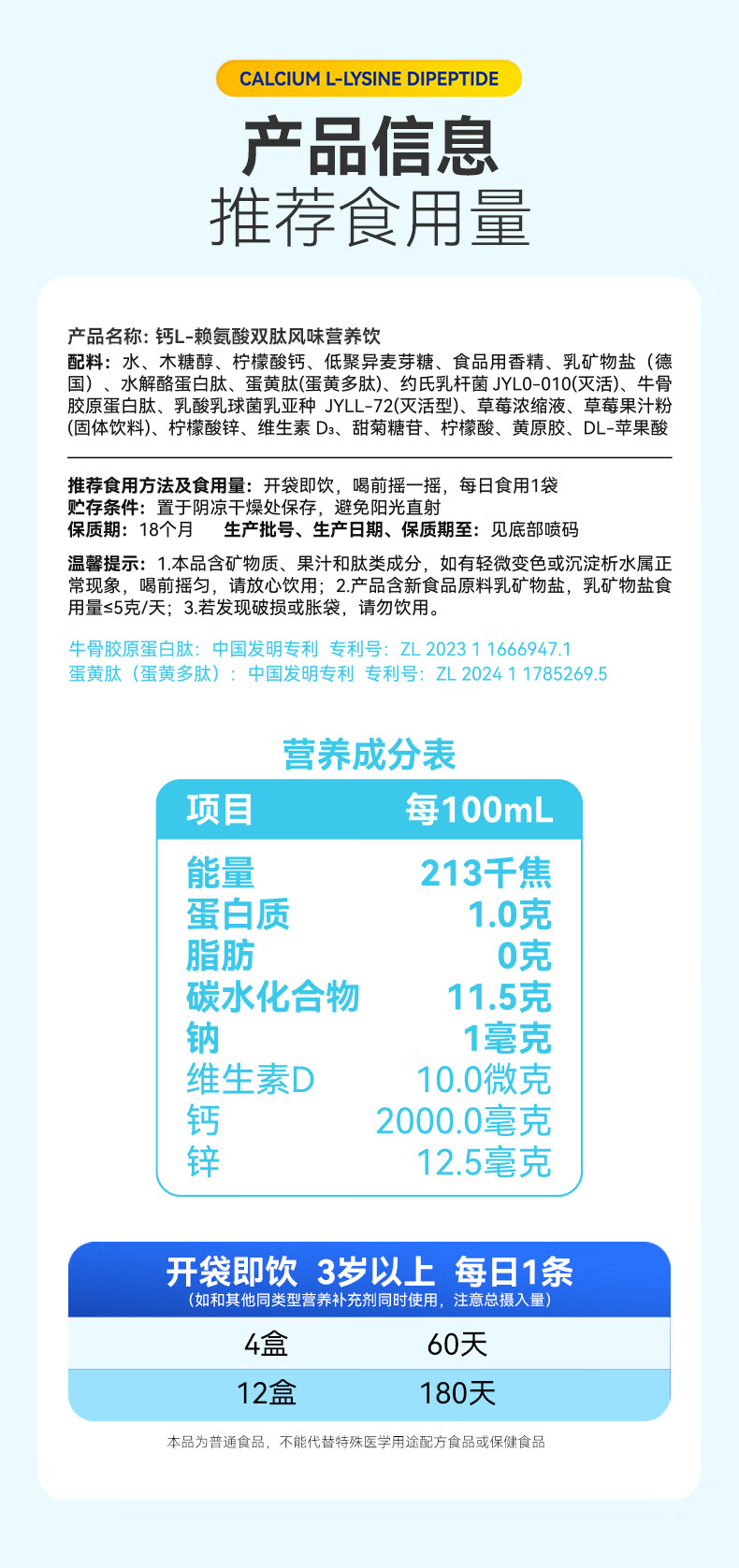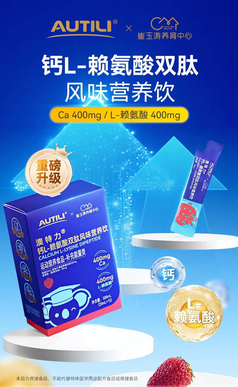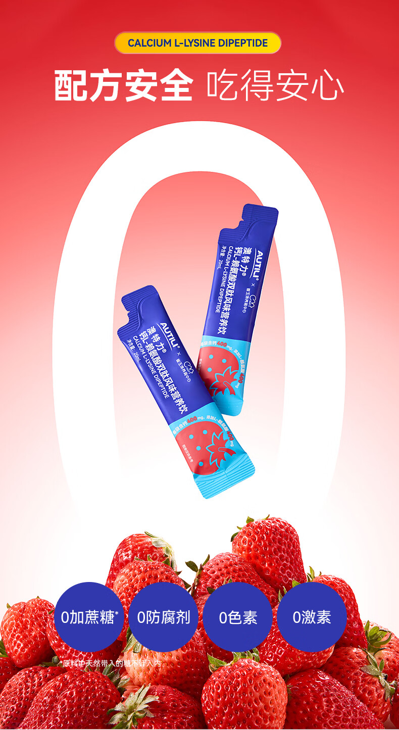 AUTILI澳特力【崔玉涛团队亲研】钙L-赖氨酸营养饮儿童液体钙春季补钙 【持续守护 】赖氨酸钙 15袋*2盒